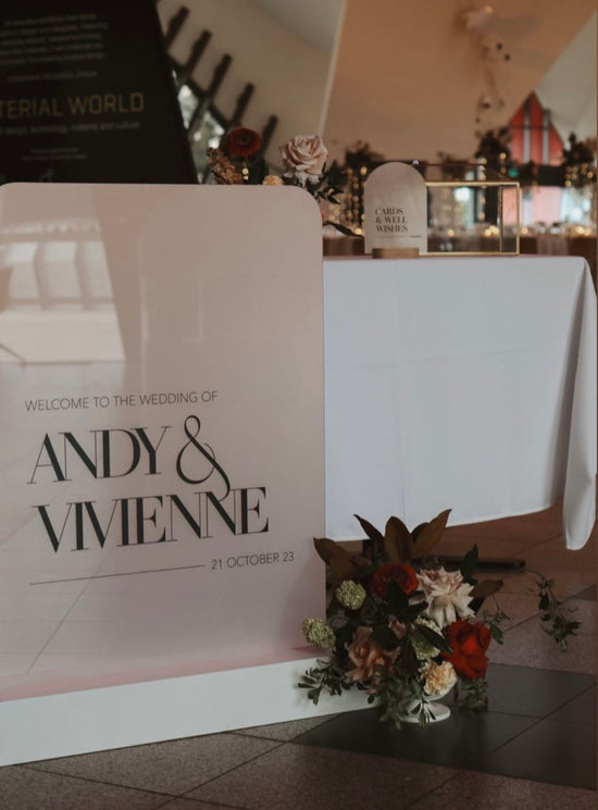 We would like to thank you for being part of our big day and helping to make our wedding day so special. We really appreciate all the hard work you put into designing and making all the signage. It all looked amazing on the day and tied in really well with the rest of our styling. Also your communication and attention to detail made it so smooth and easy for us. Thank you again for all your patience with all the back and forth!