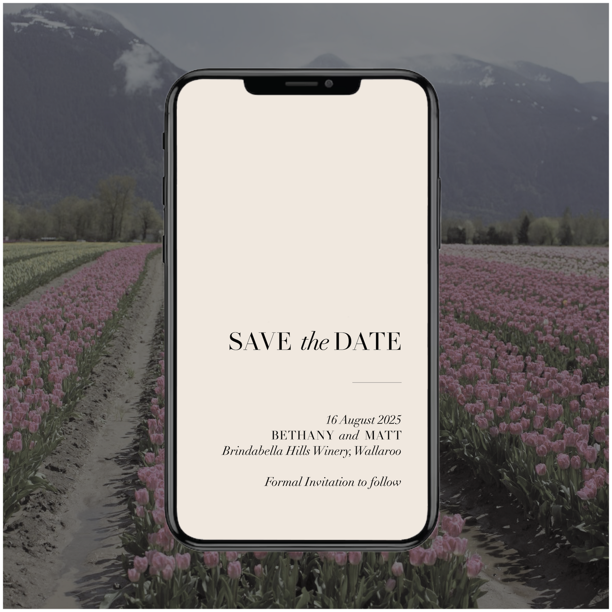 Part of the Canada Collection, this digital save the date wedding invite is modern chic with simple structured text details.
