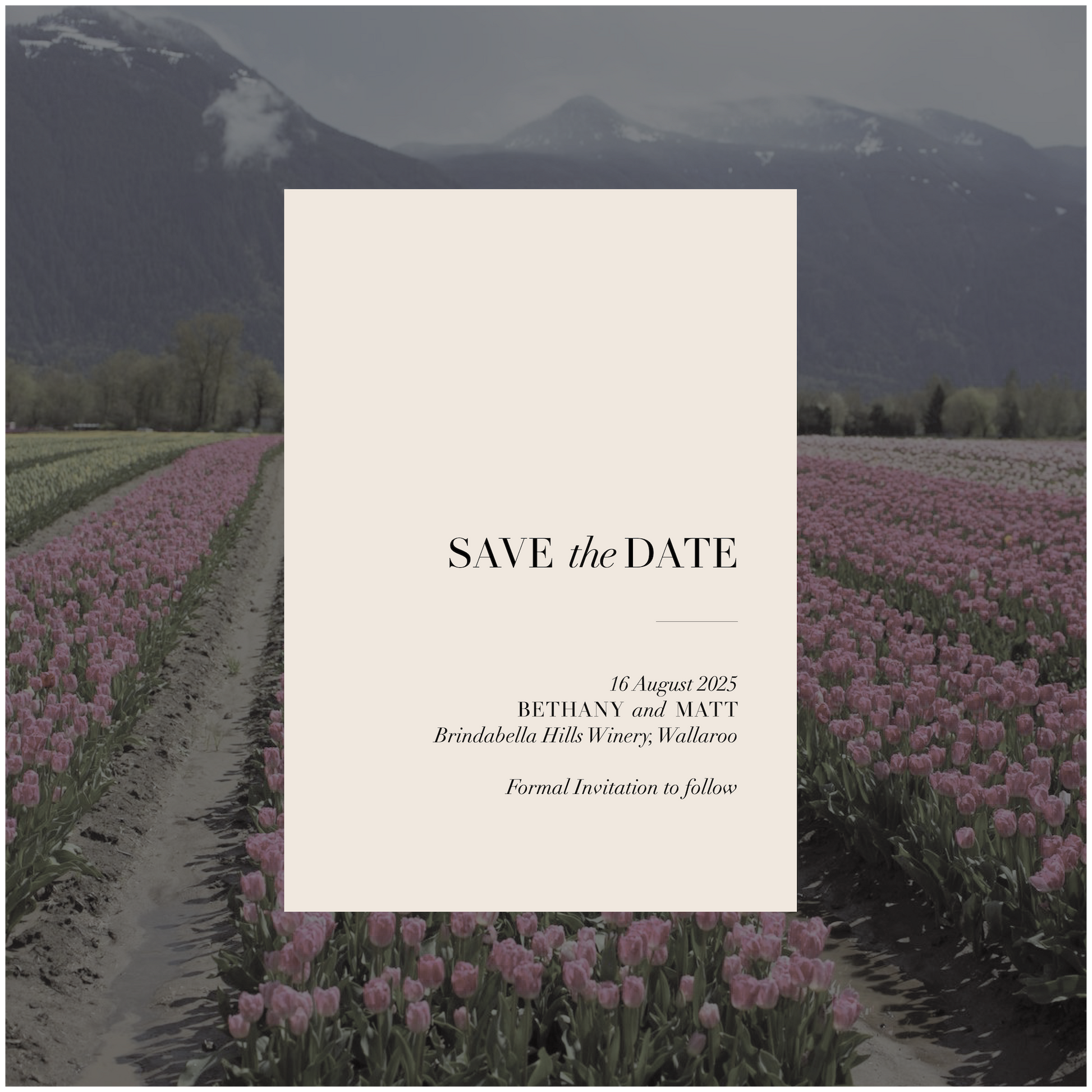 Part of the Canada Collection, this save the date wedding invite is modern chic with simple structured text details.