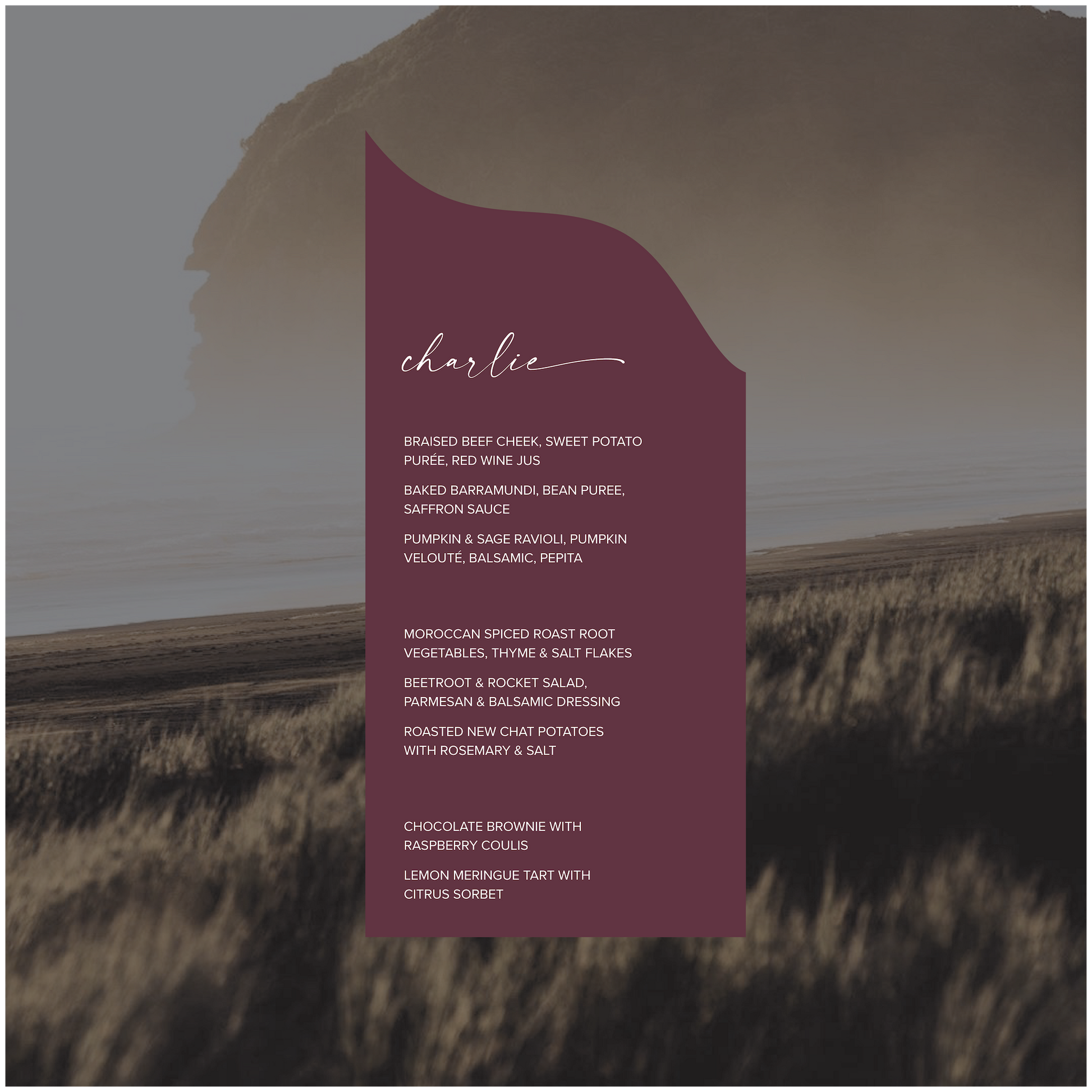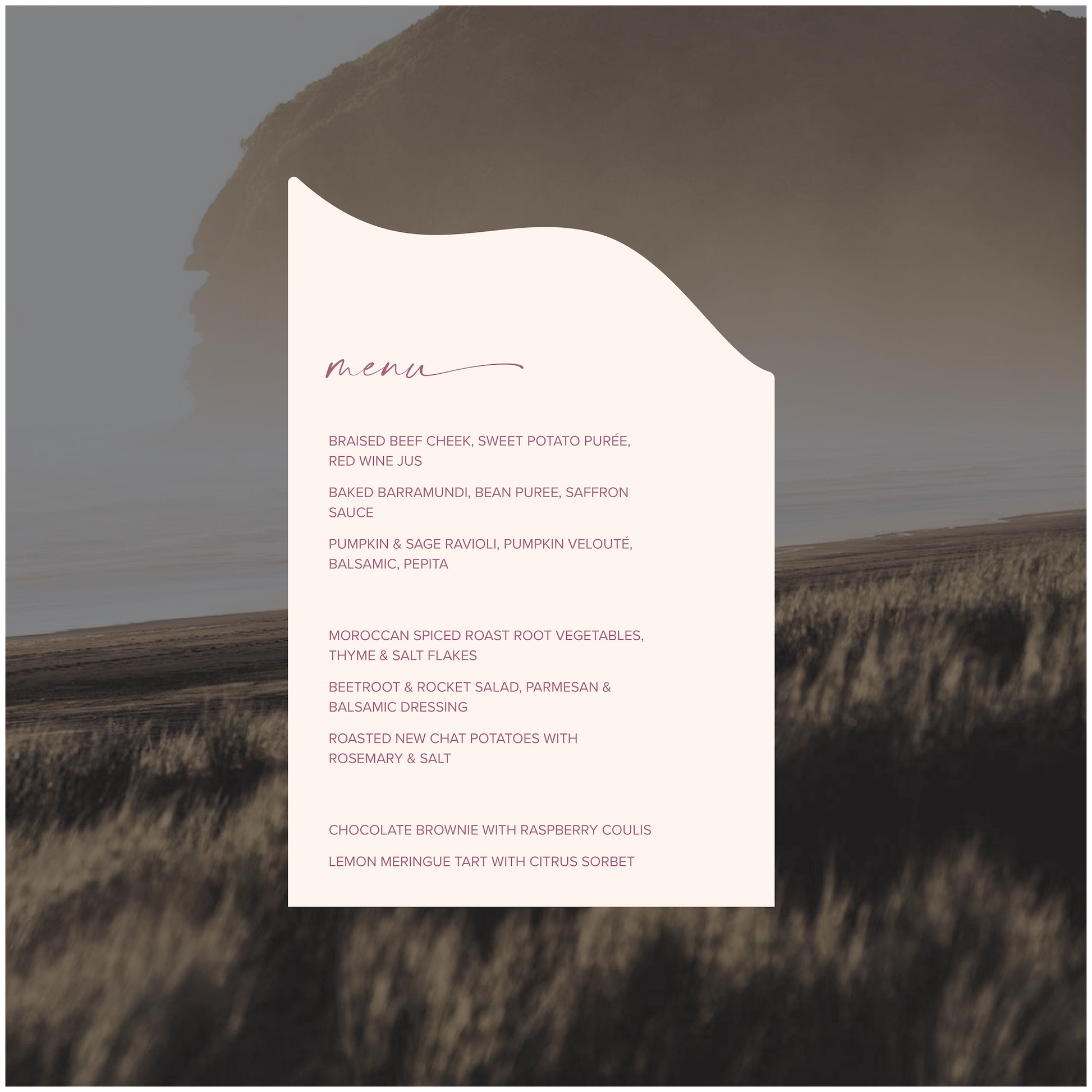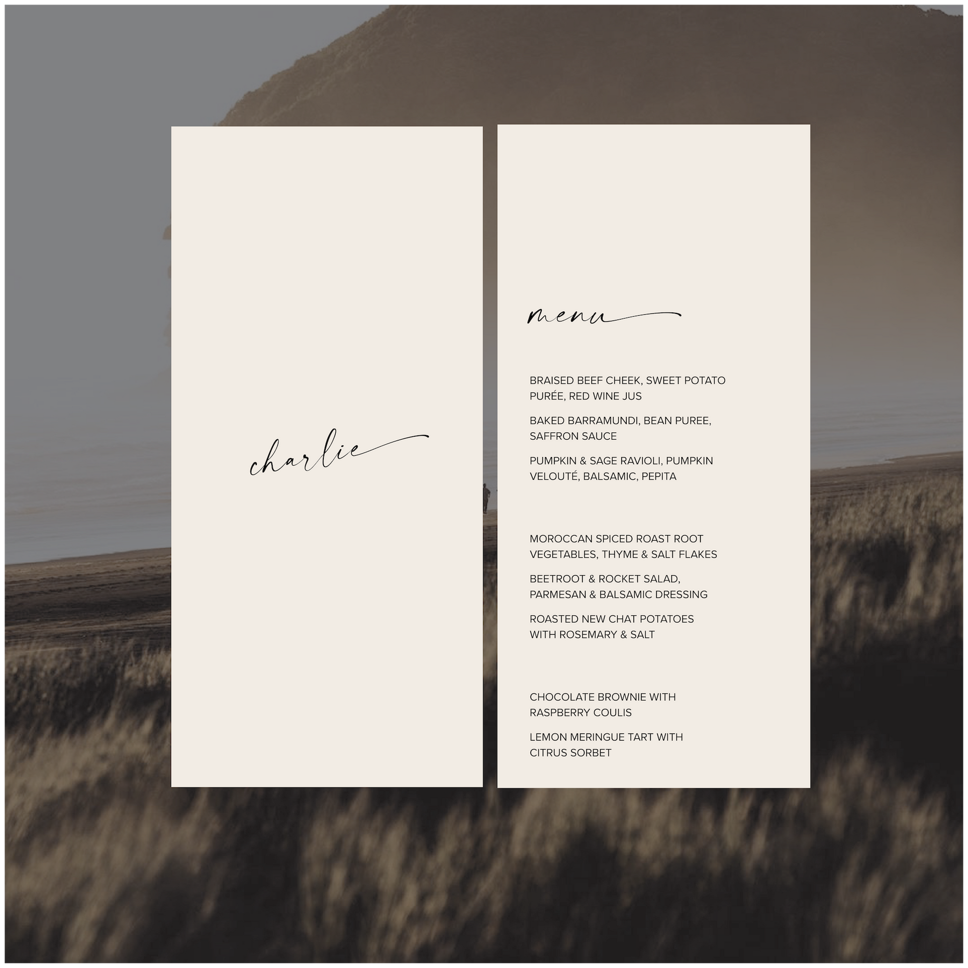 Part of the New Zealand Collection, this menu is perfectly paired back for those modern lovers looking for something simple, classic and romantic.