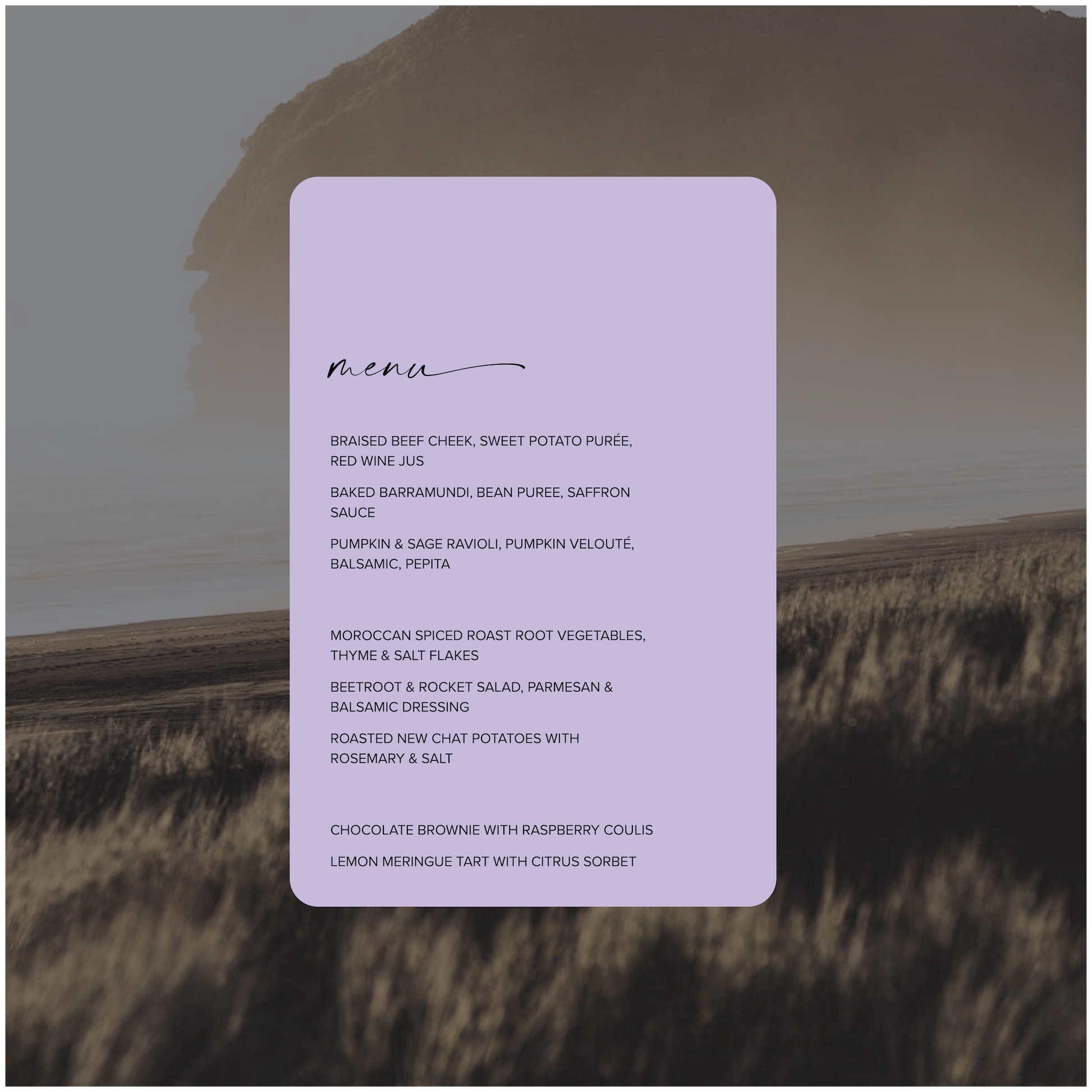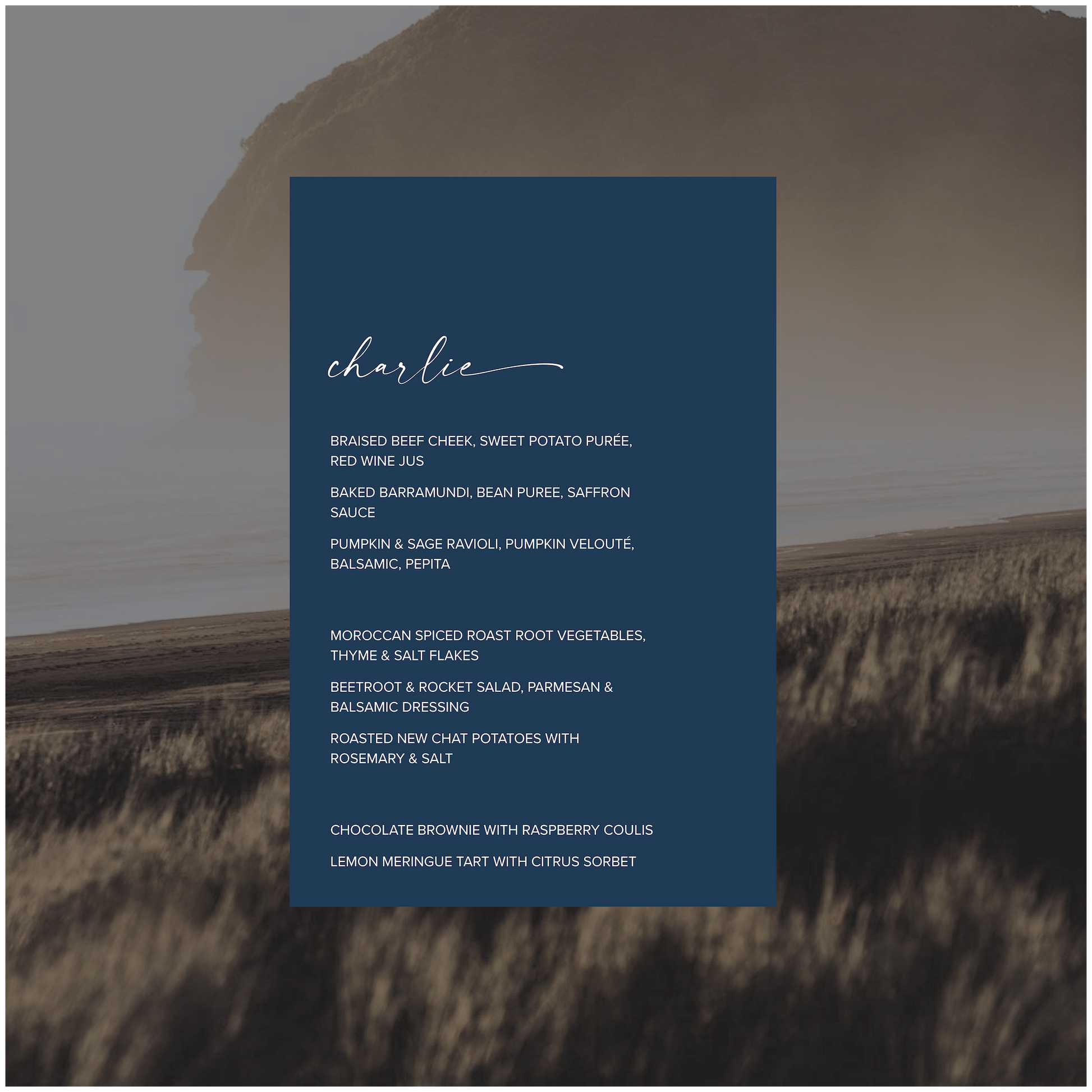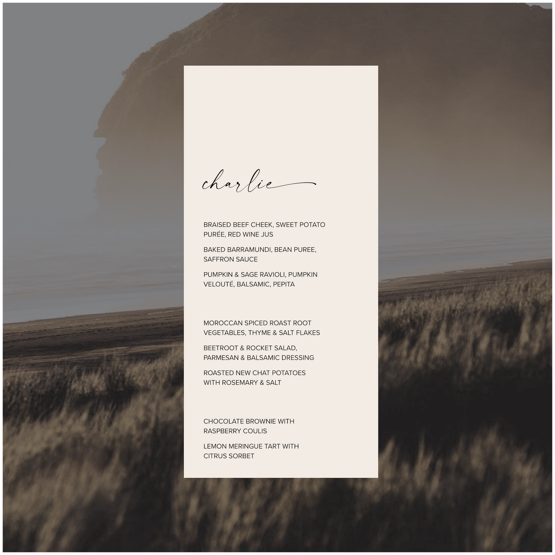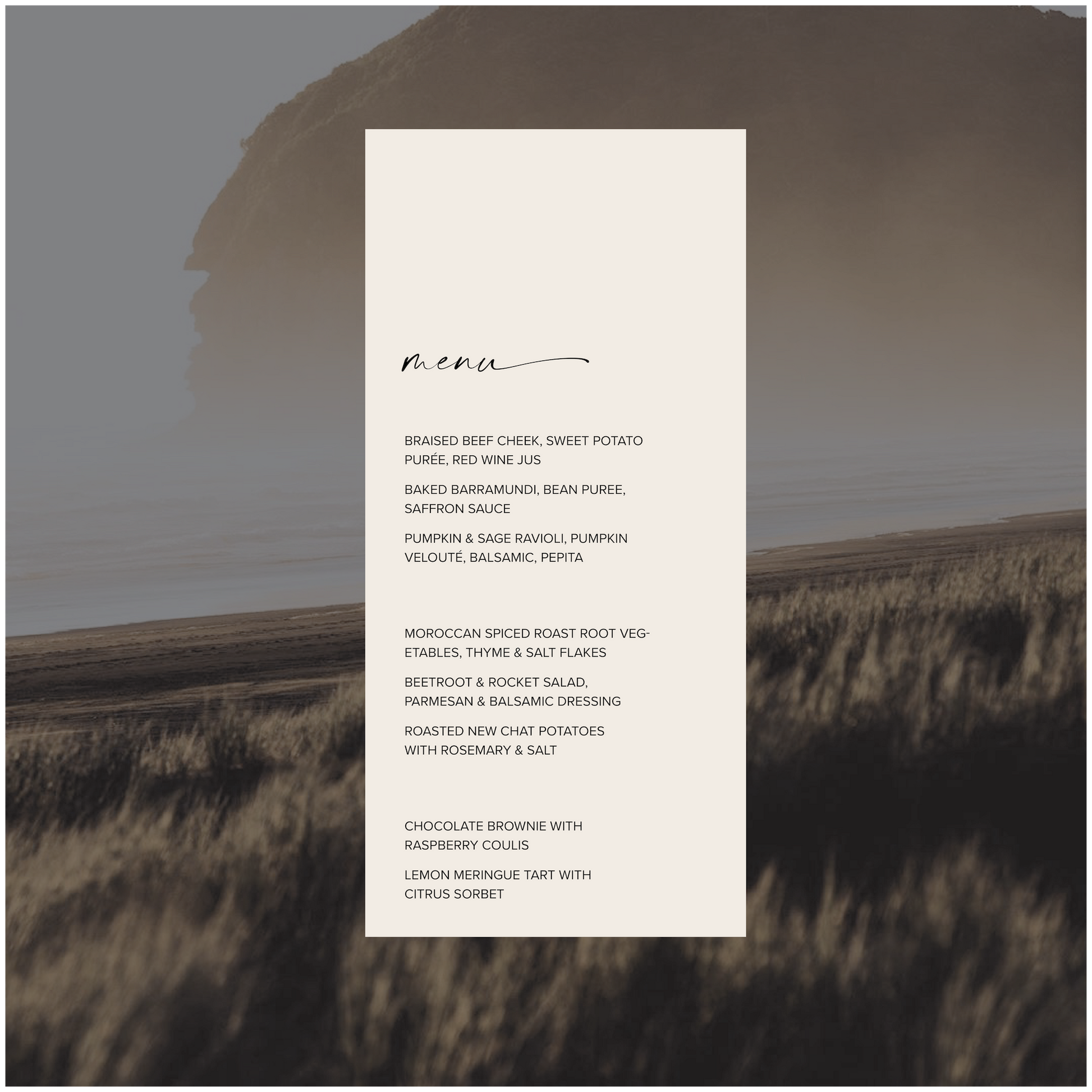 Part of the New Zealand Collection, this menu is perfectly paired back for those modern lovers looking for something simple, classic and romantic.