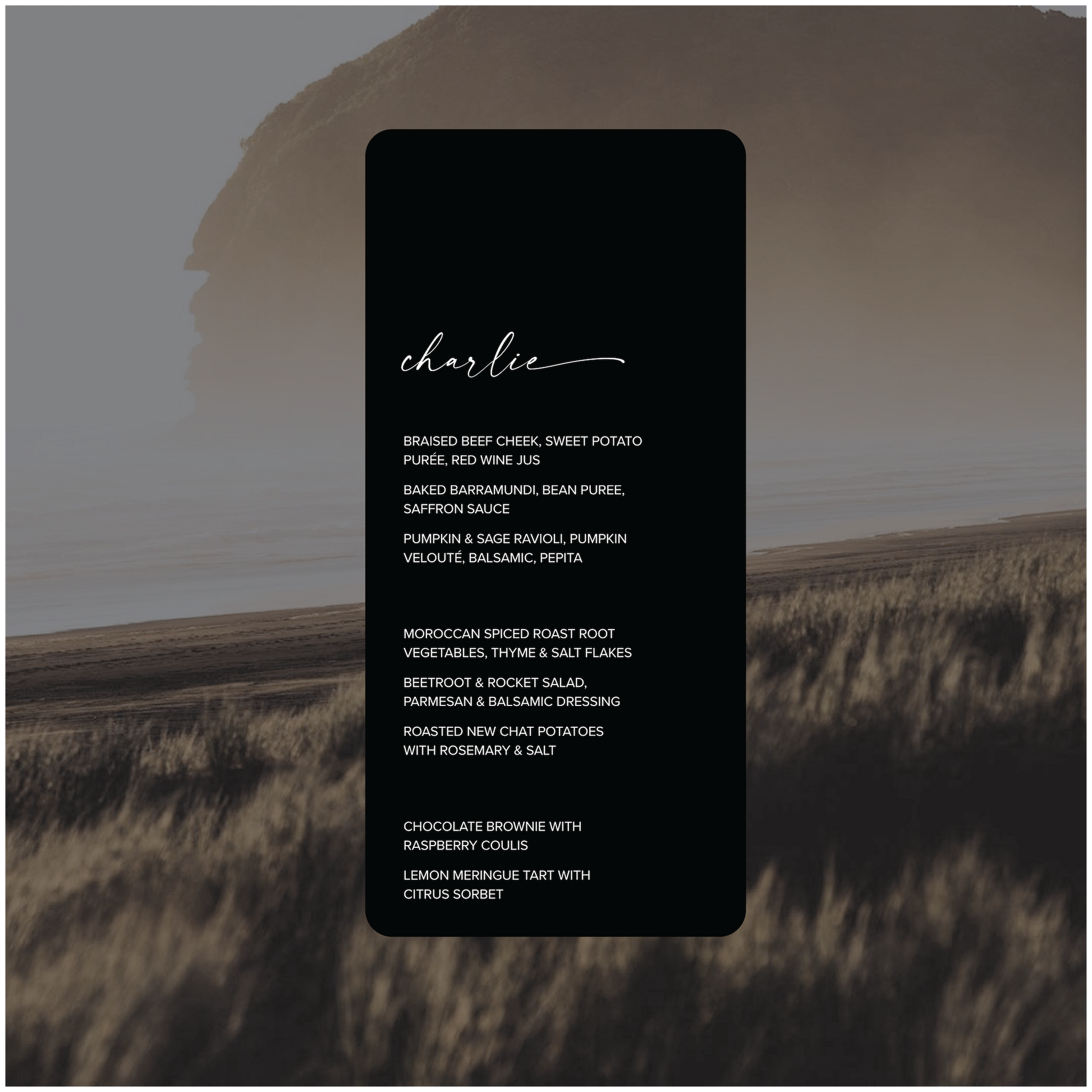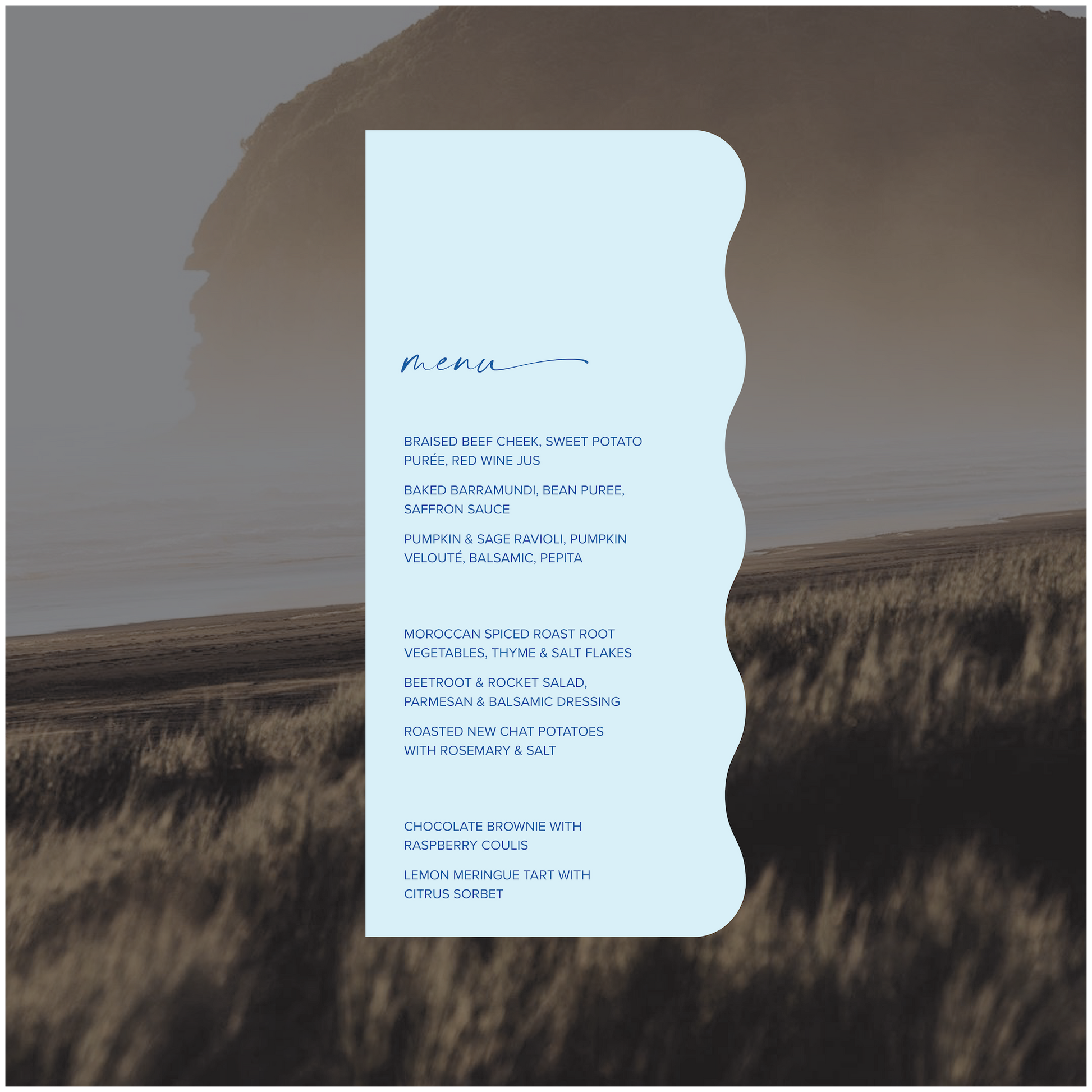 • We always recommend ordering extra menus for those 'maybe' guests, keepsakes and photography details on the day.
