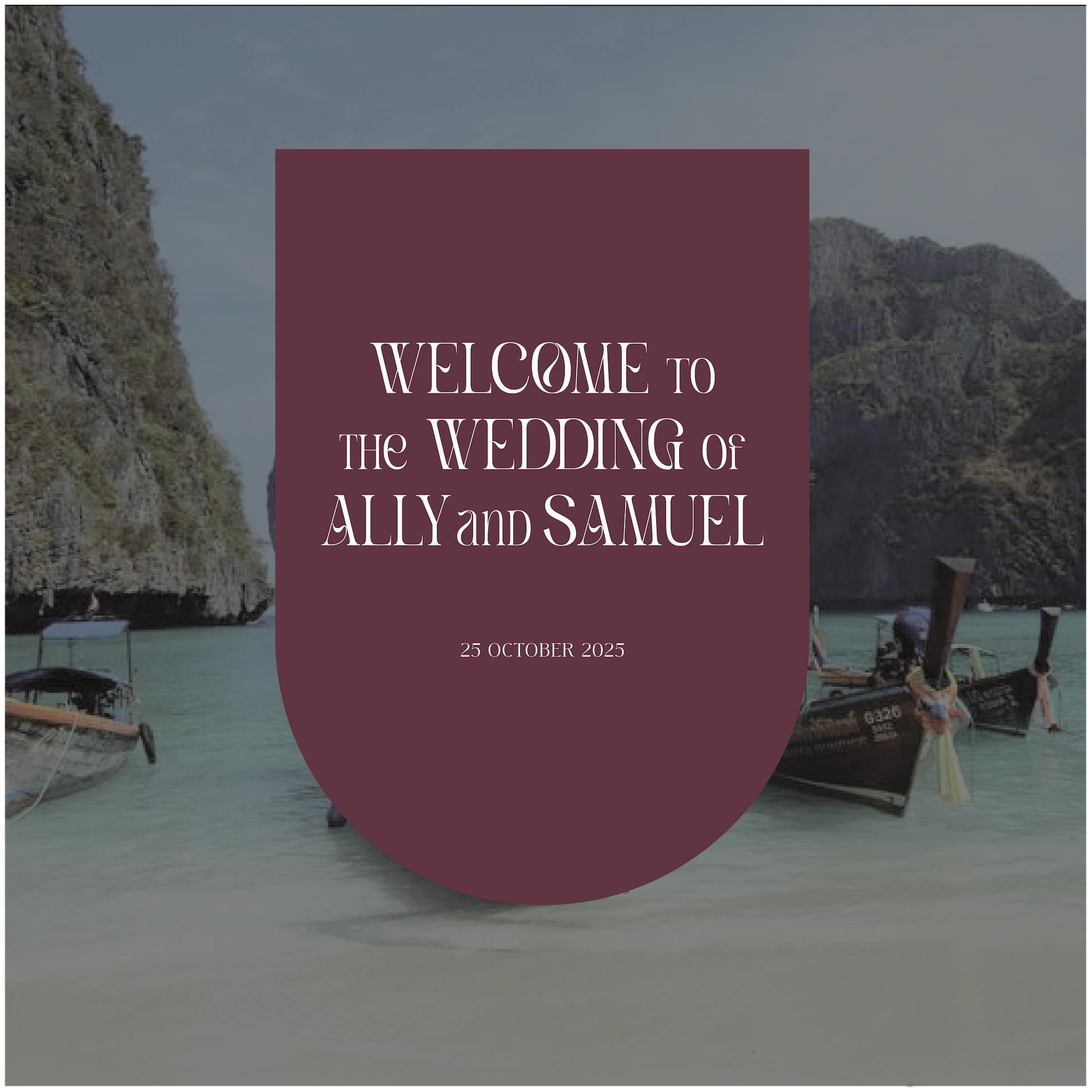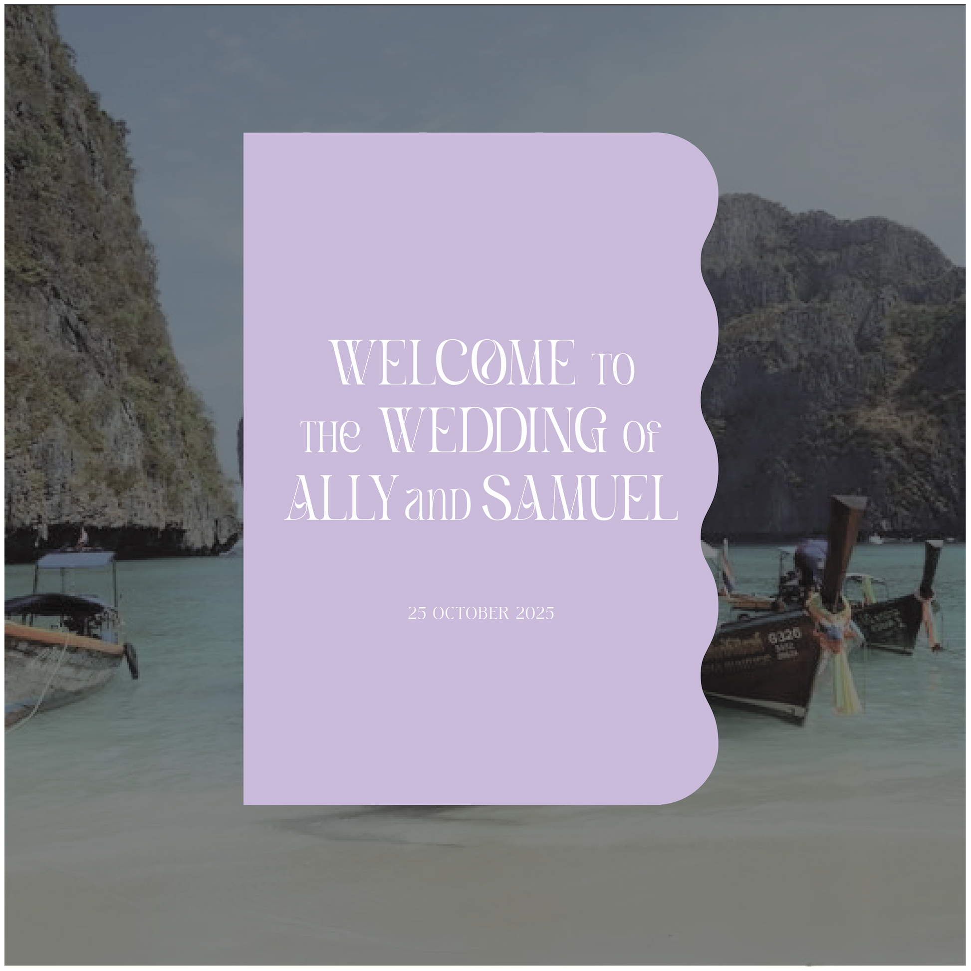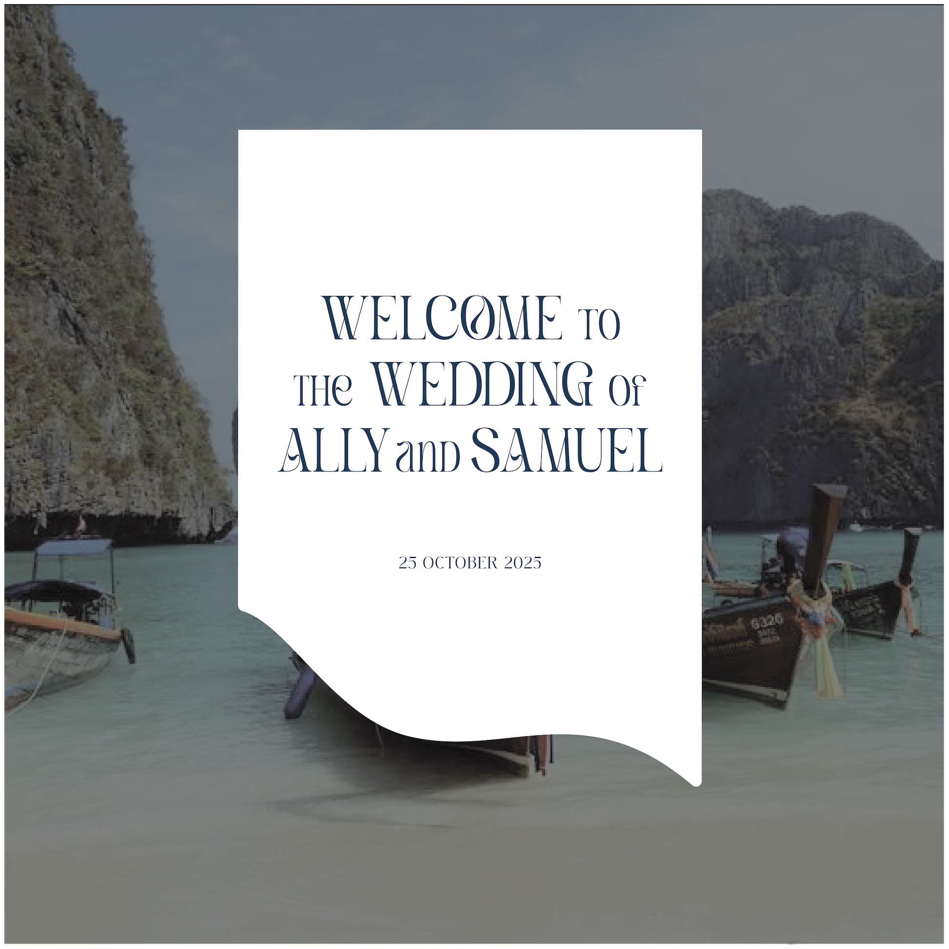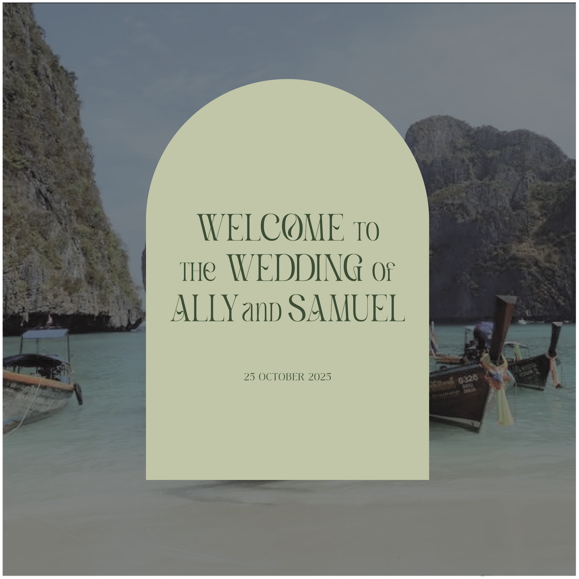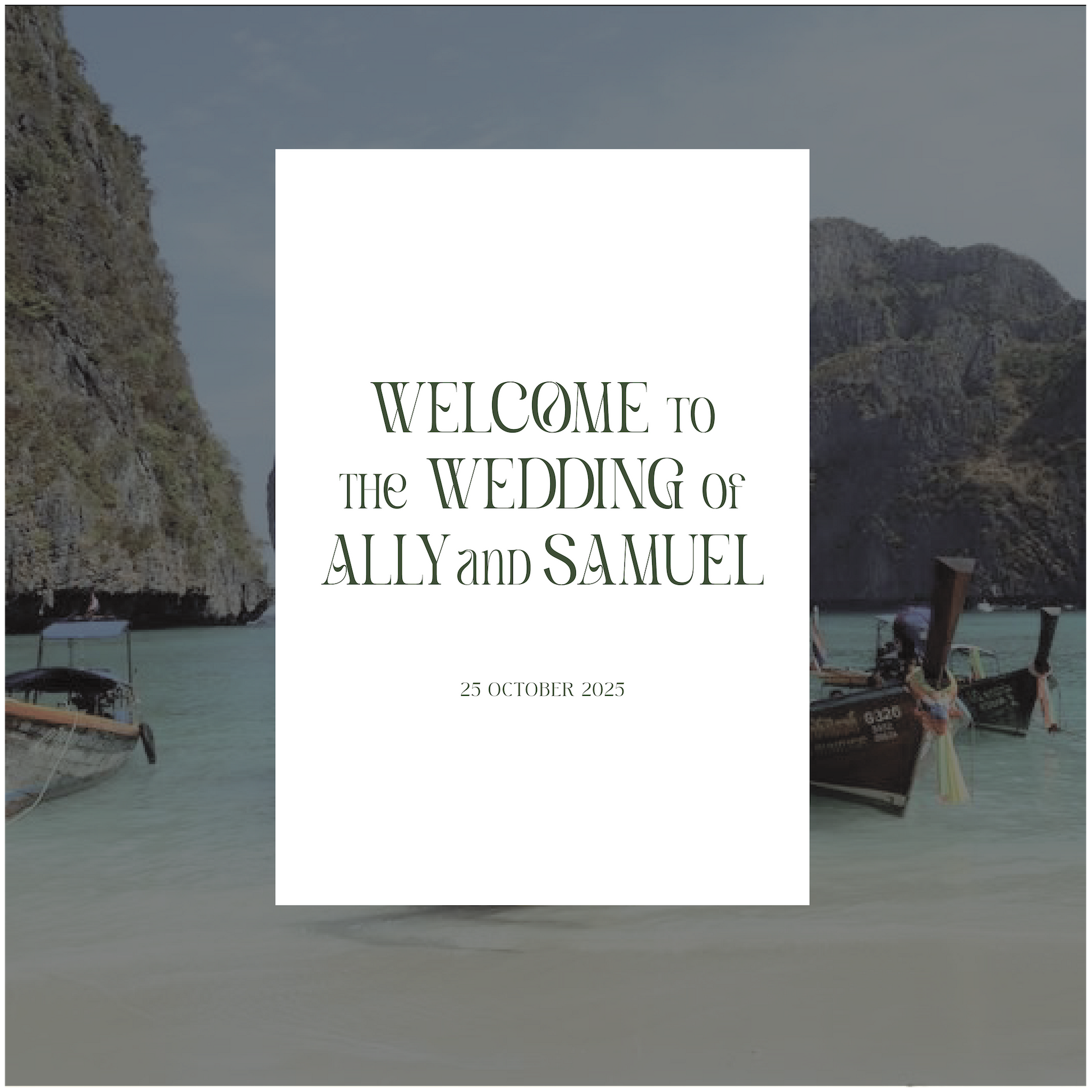 Part of the Thailand Collection, this wedding welcome sign uses strong graphic typography with leaf like details as it's hero element.