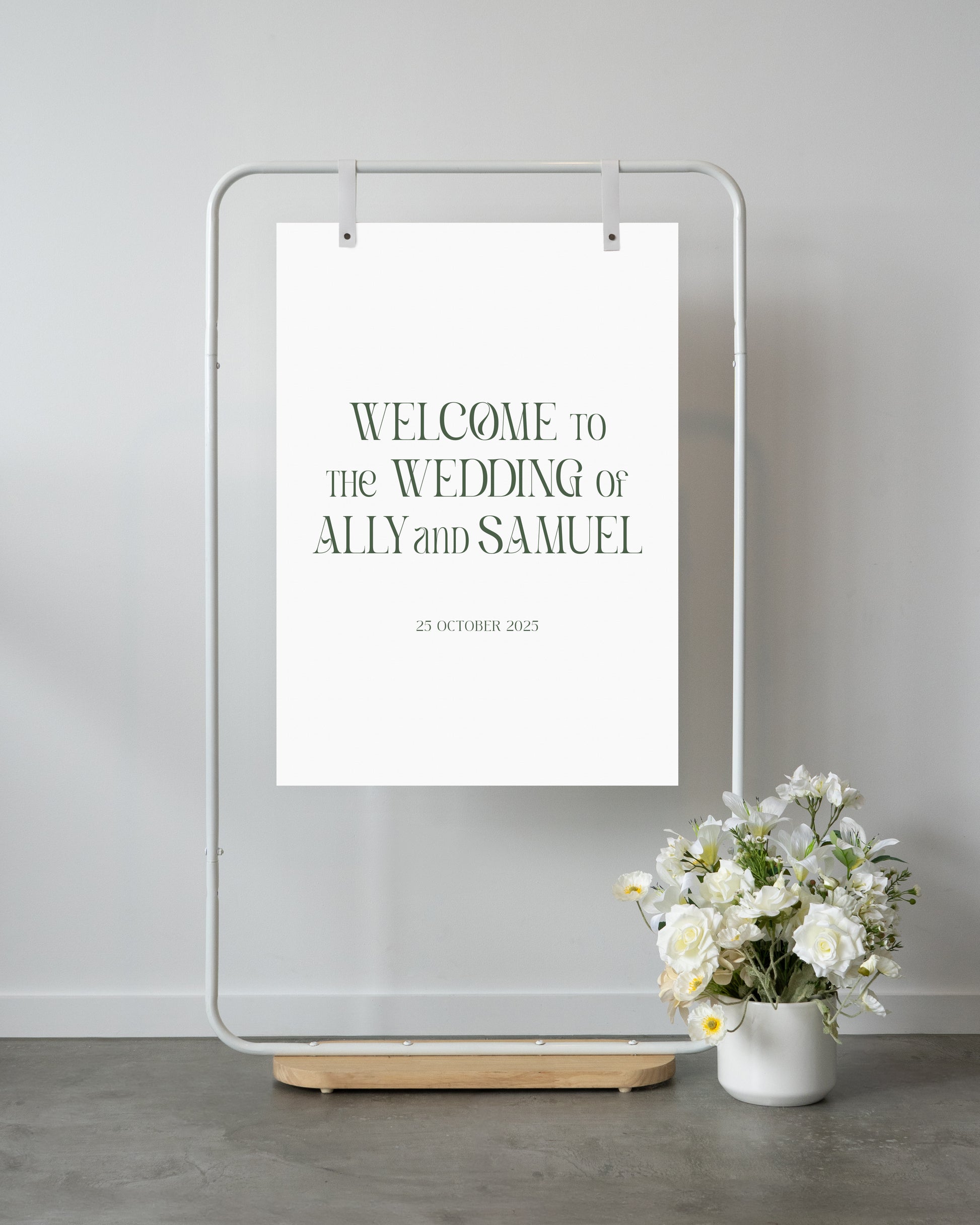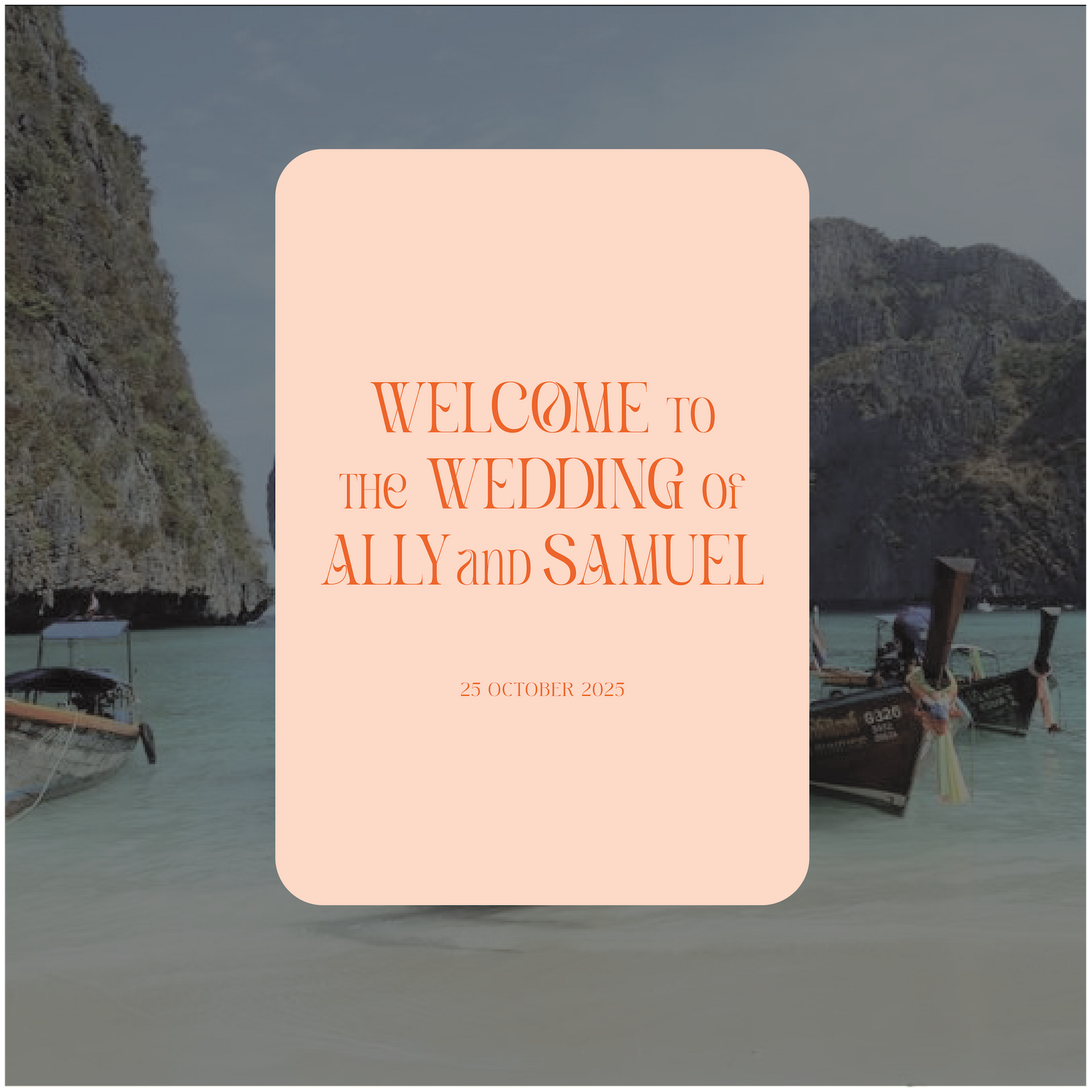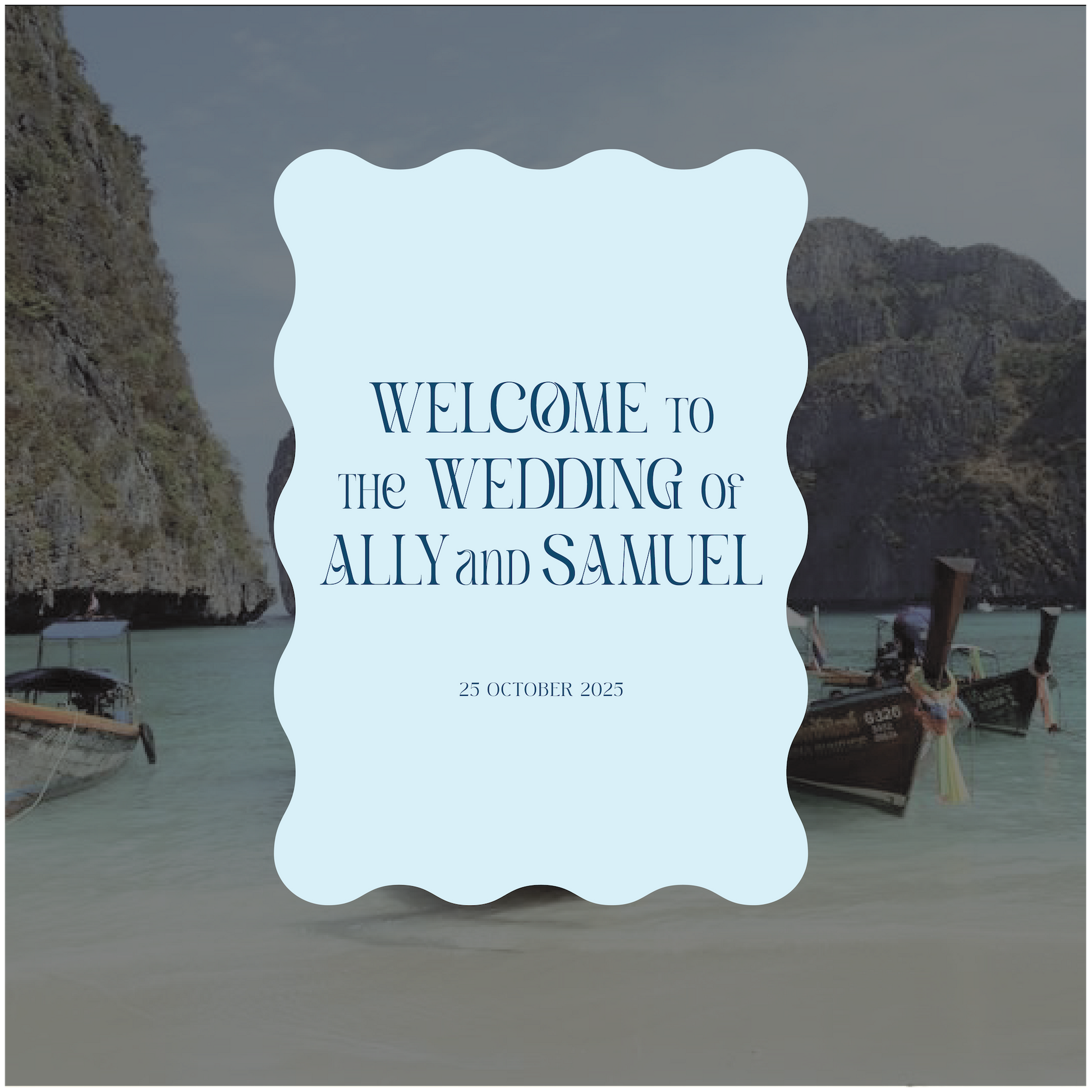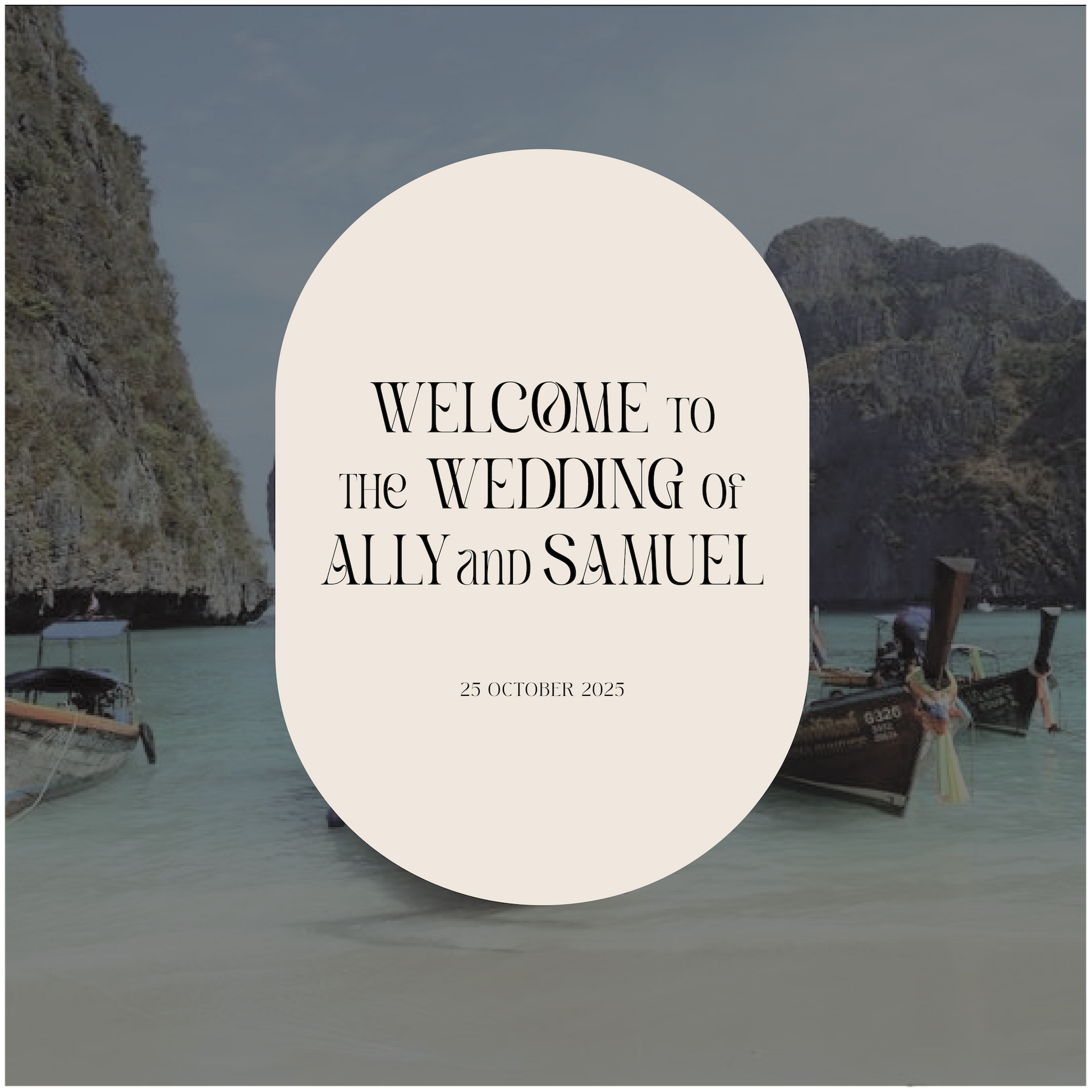 Part of the Thailand Collection, this wedding welcome sign uses strong graphic typography with leaf like details as it's hero element.
