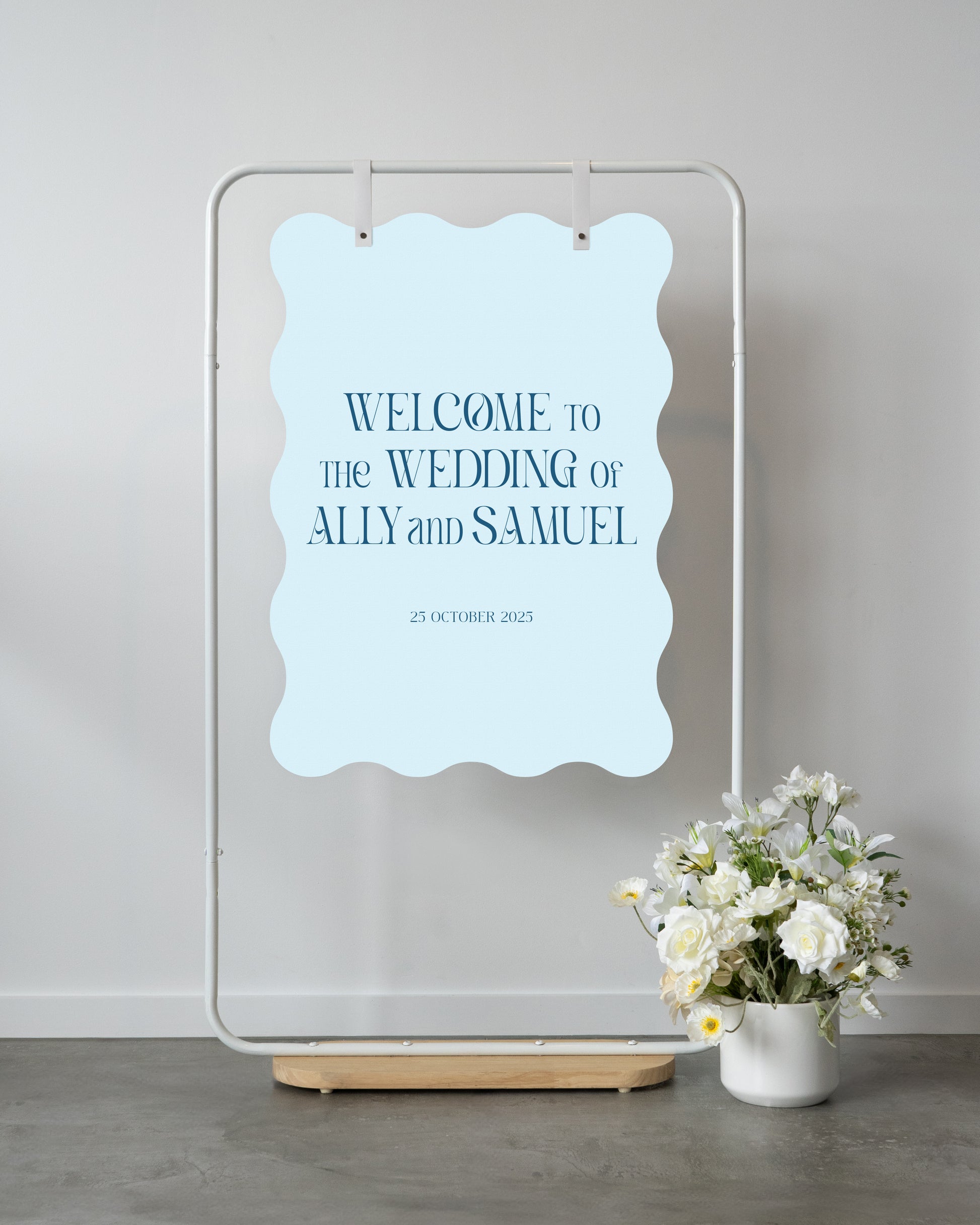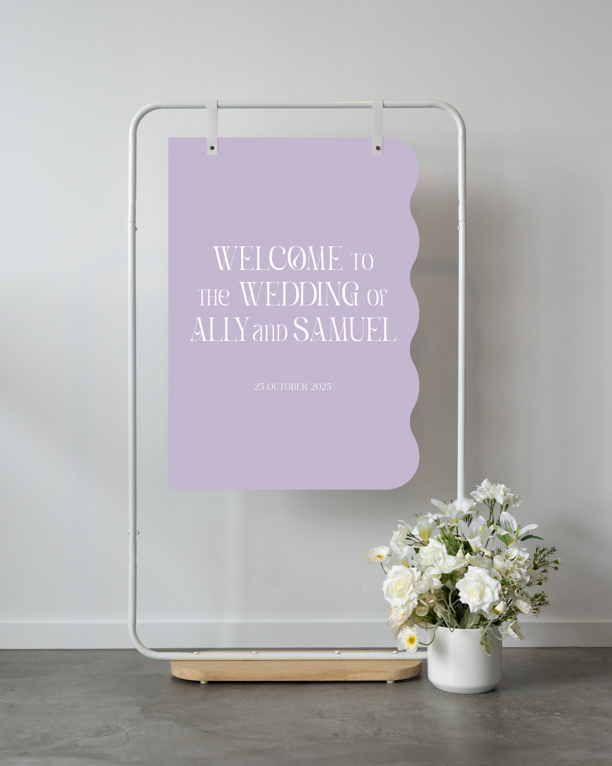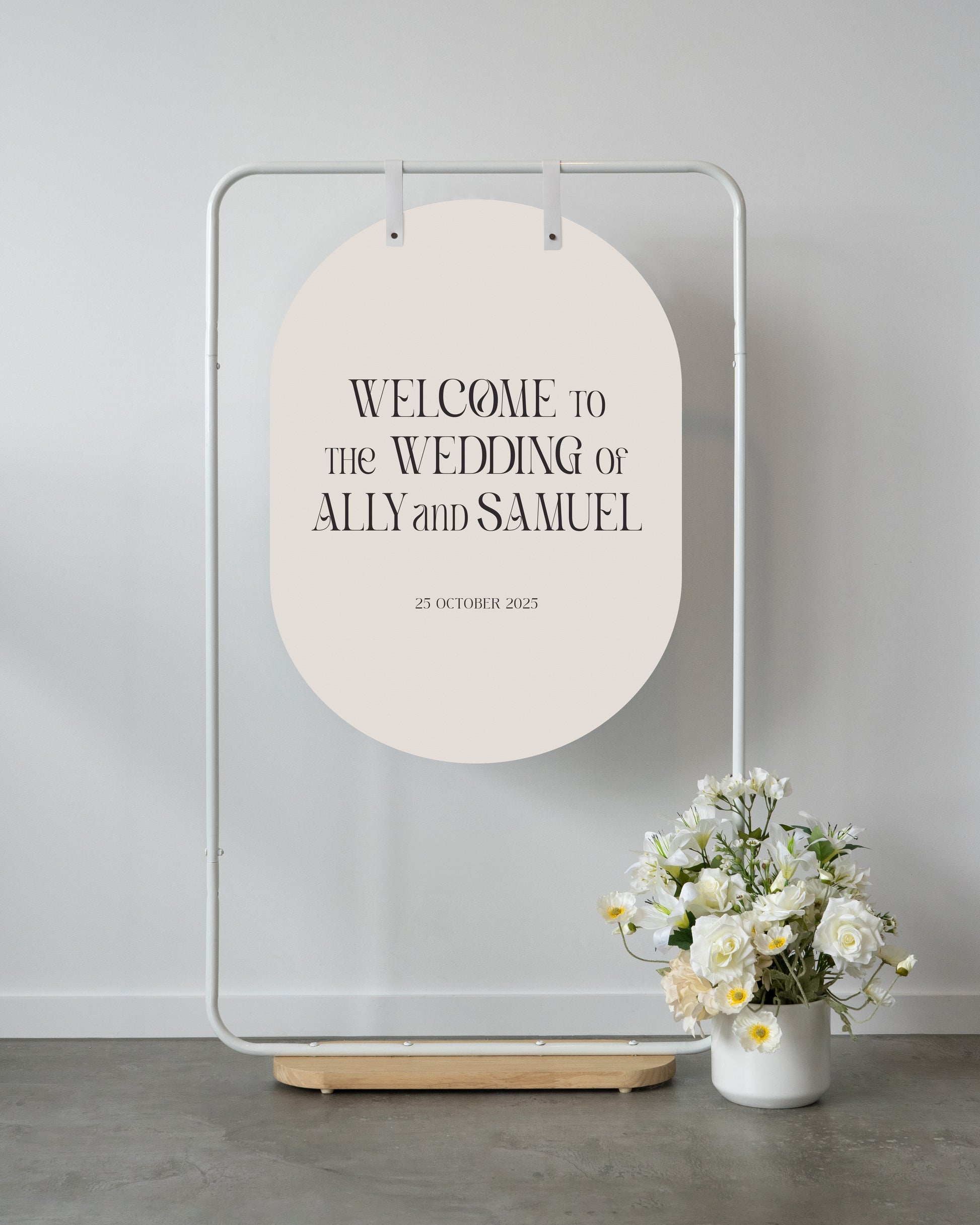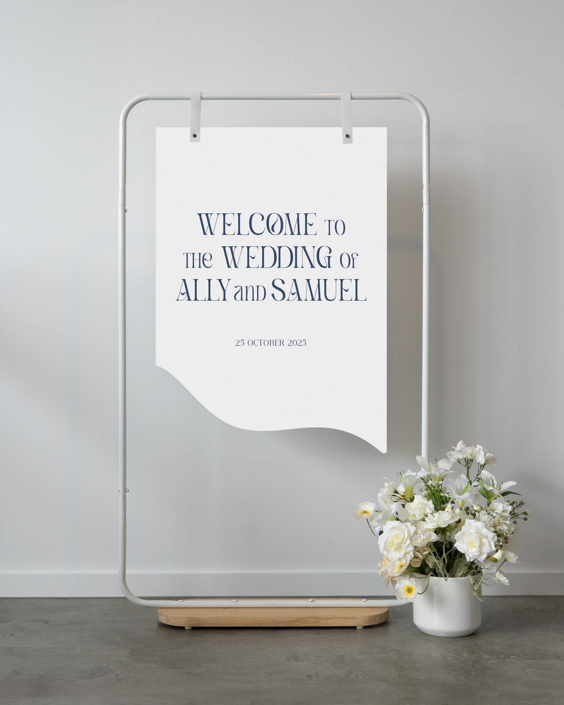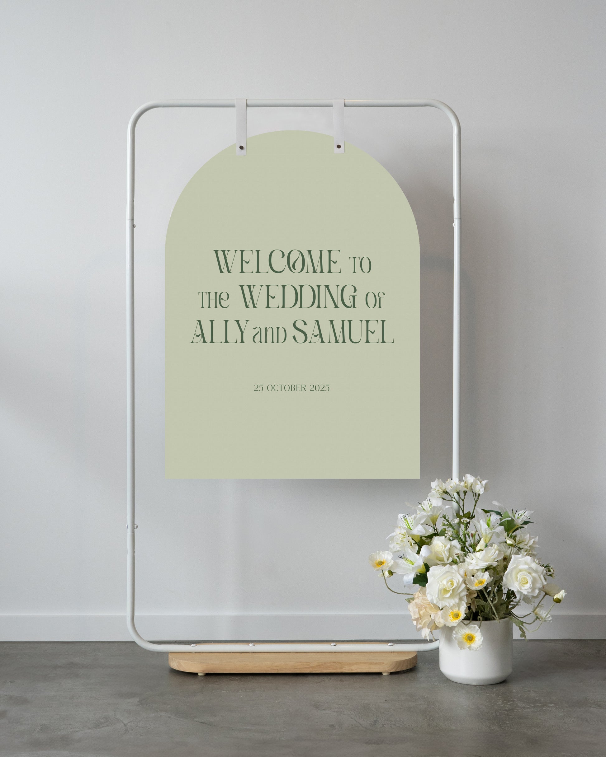 Part of the Thailand Collection, this wedding welcome sign uses strong graphic typography with leaf like details as it's hero element.