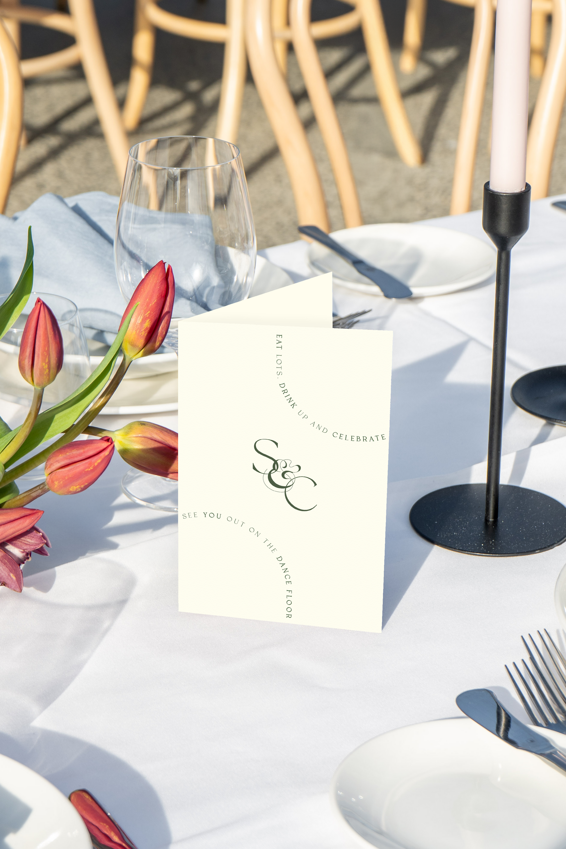 • Double Sided scored standing menu with your chosen quantity and colours. Menu is 120x180mm folded, 240x180mm unfolded. Inside can contain any menu item, saying quote etc. Example shows food and bar menu.