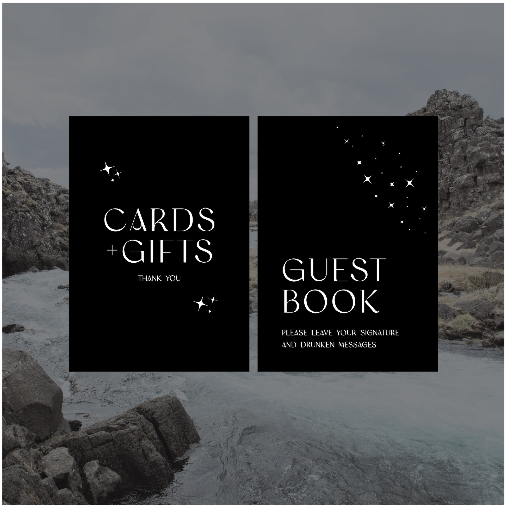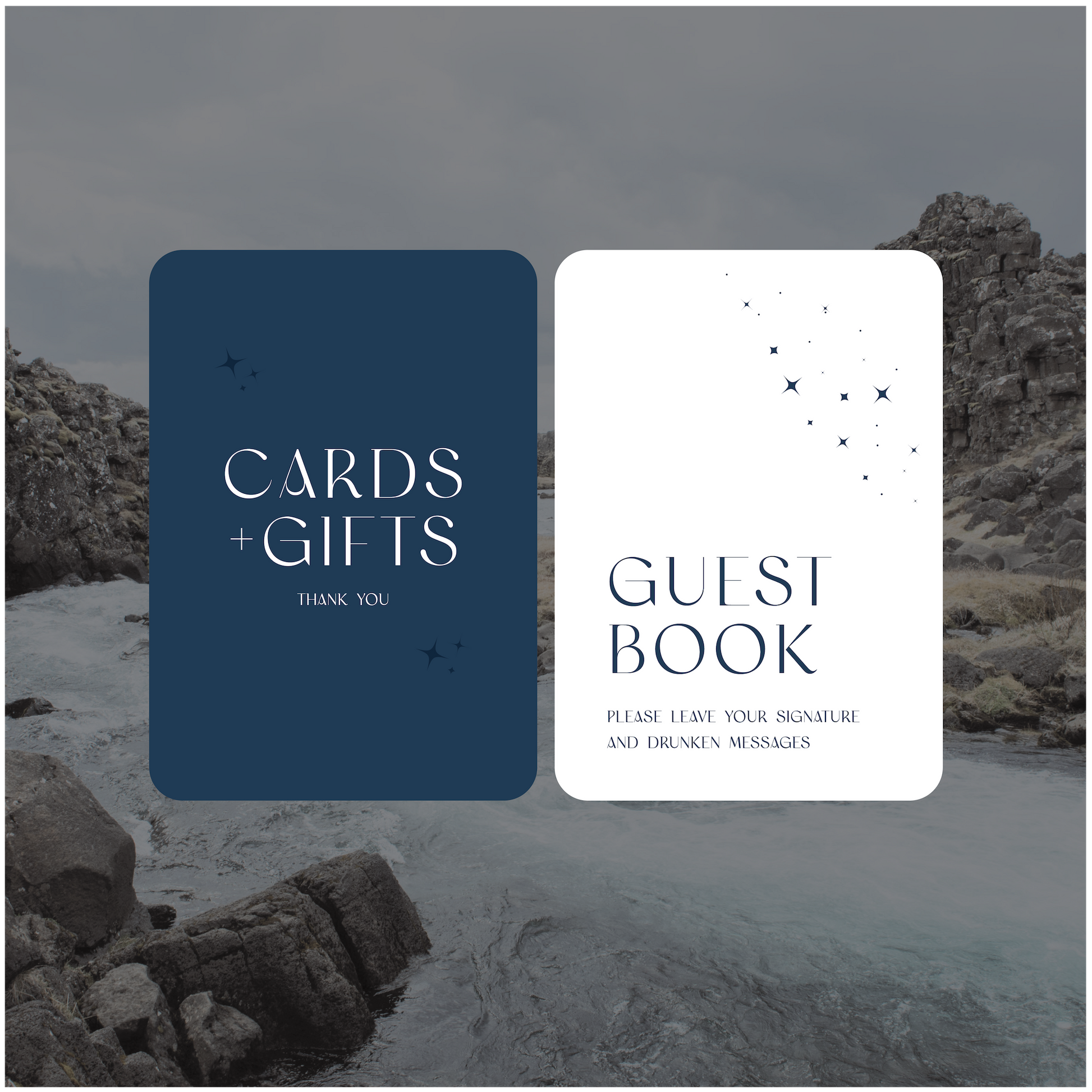 Part of the Iceland collection, these small signs depict a romantic night sky with twinkling stars cascading throughout.