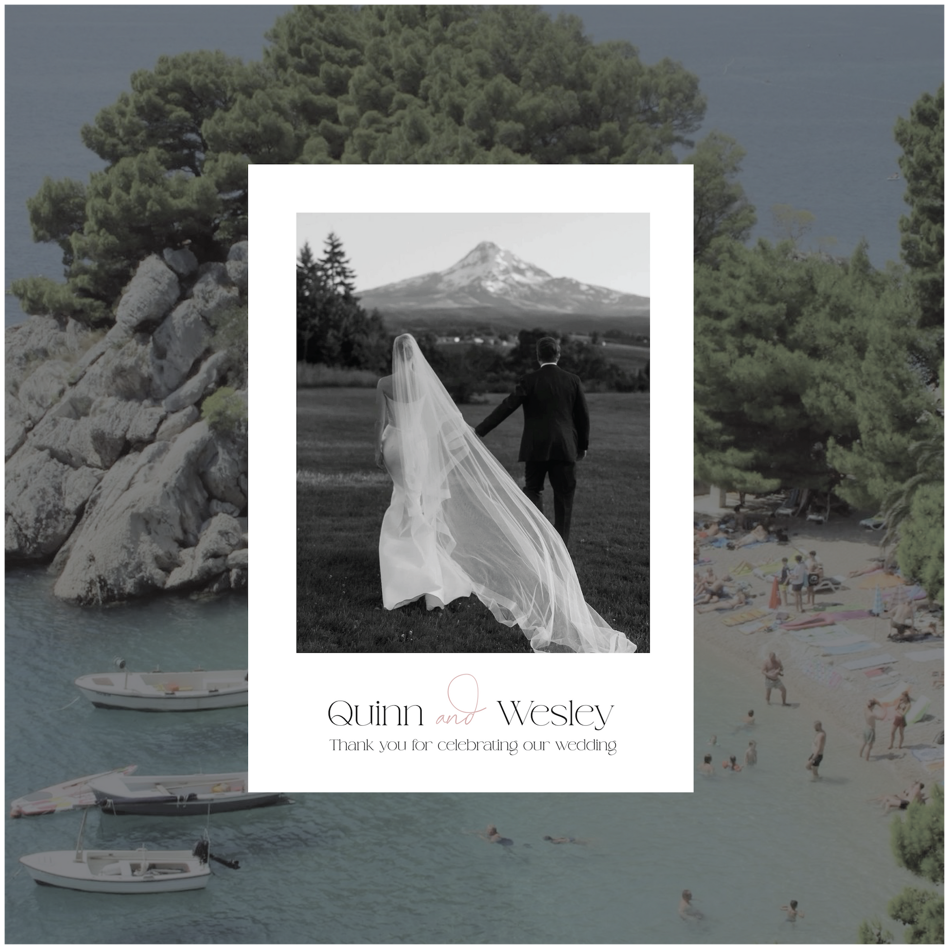 Part of the Croatia Collection, this thank you card with it's fun script elements and modern font is the perfect piece to send to your guests as a final thank you for being apart of your epic celebration.