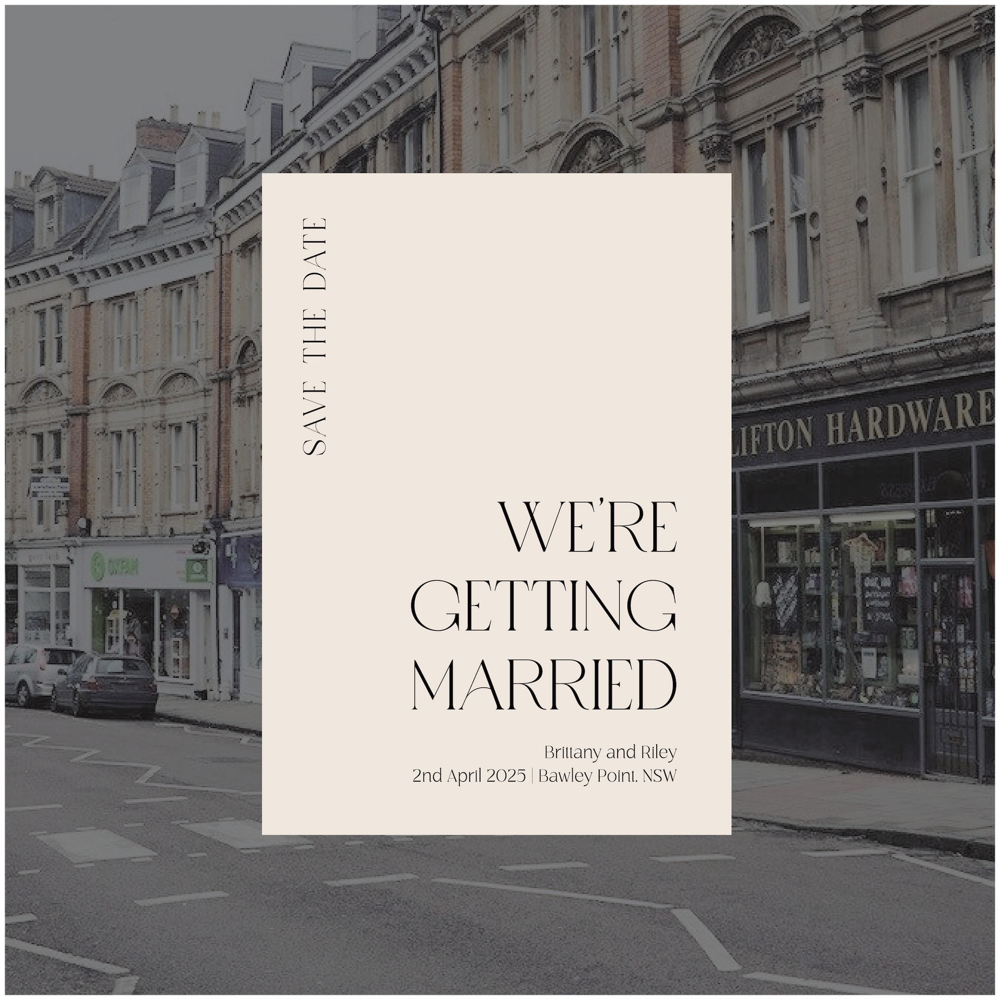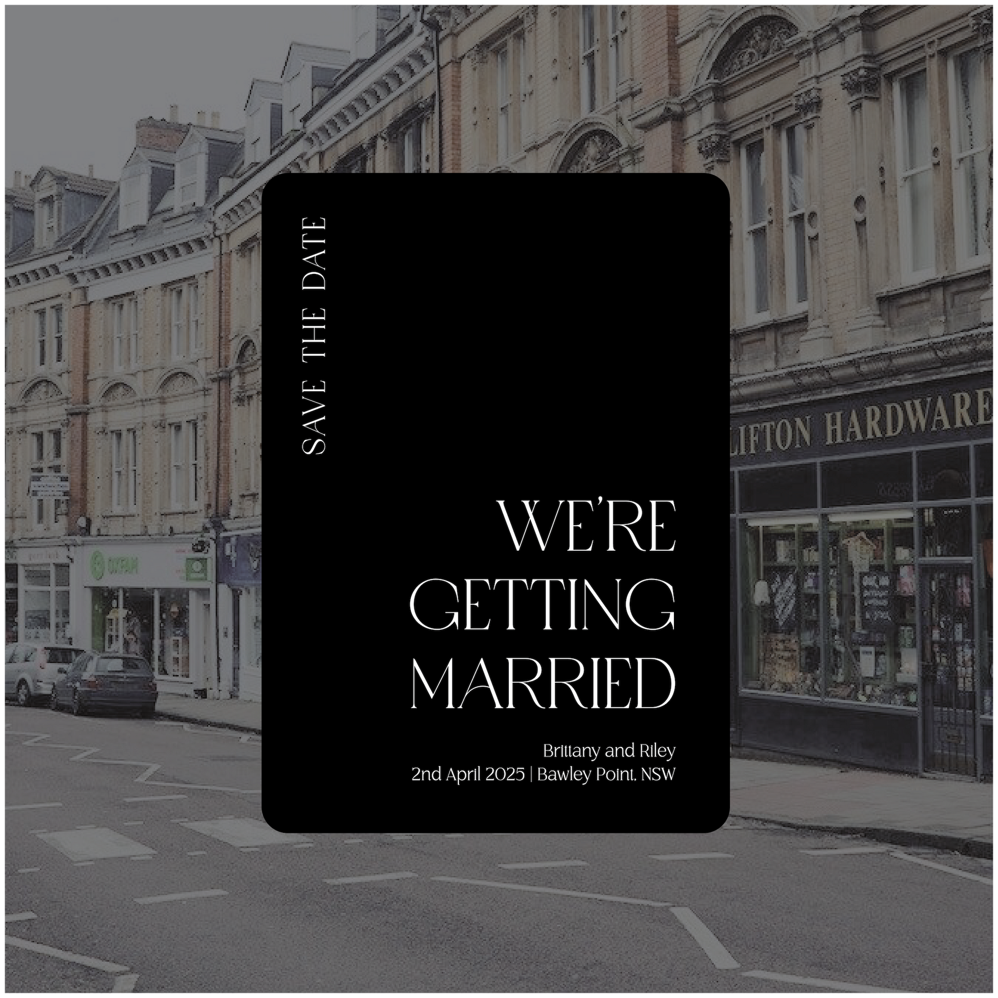 Part of the United Kingdom Collection, this save the date wedding invite is a timeless classic with a subtle modern twist in the text choice.