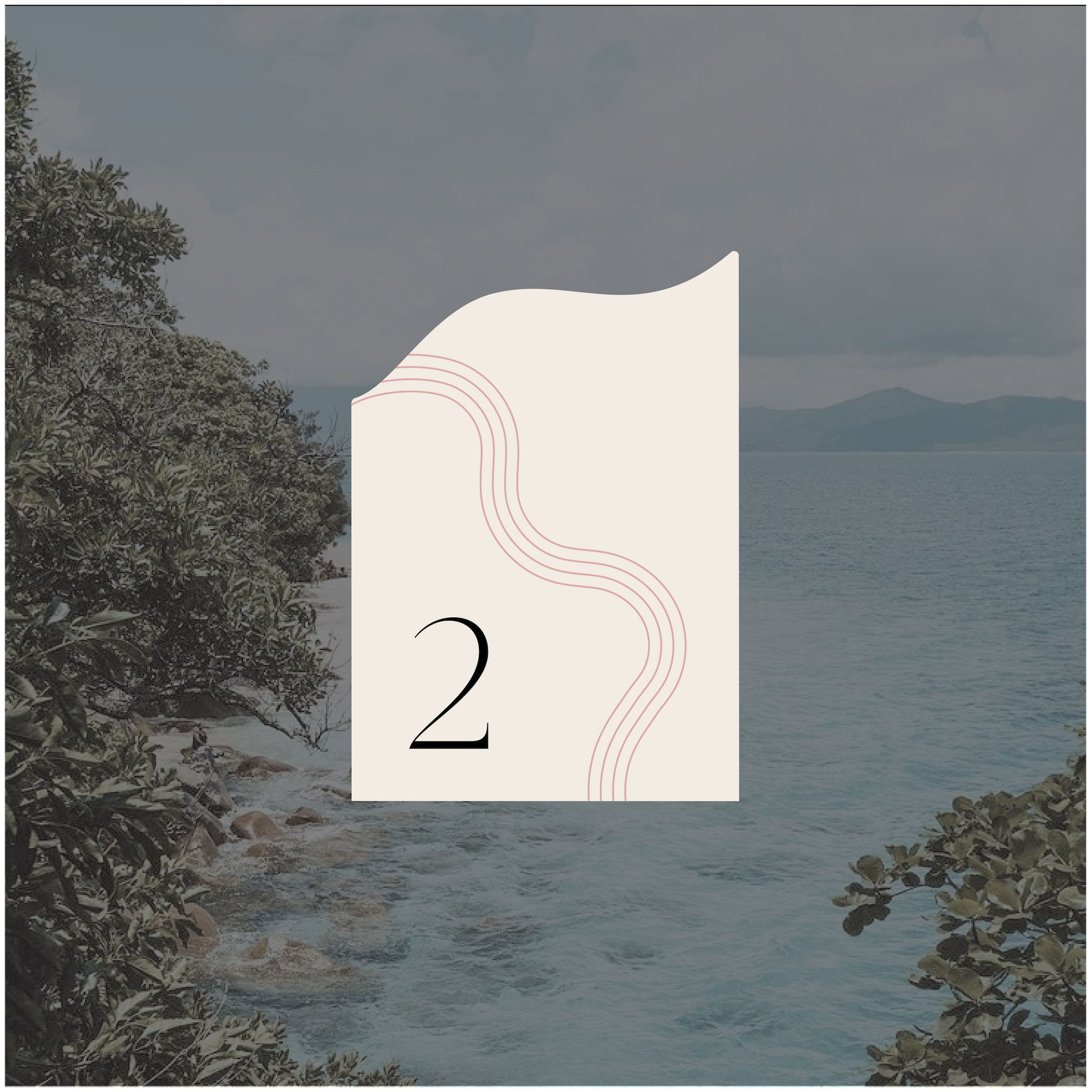 Part of the Australia collection, these table numbers have gorgeous wave line elements that run from the top of the design down the page, creating natural framed curves around the text.