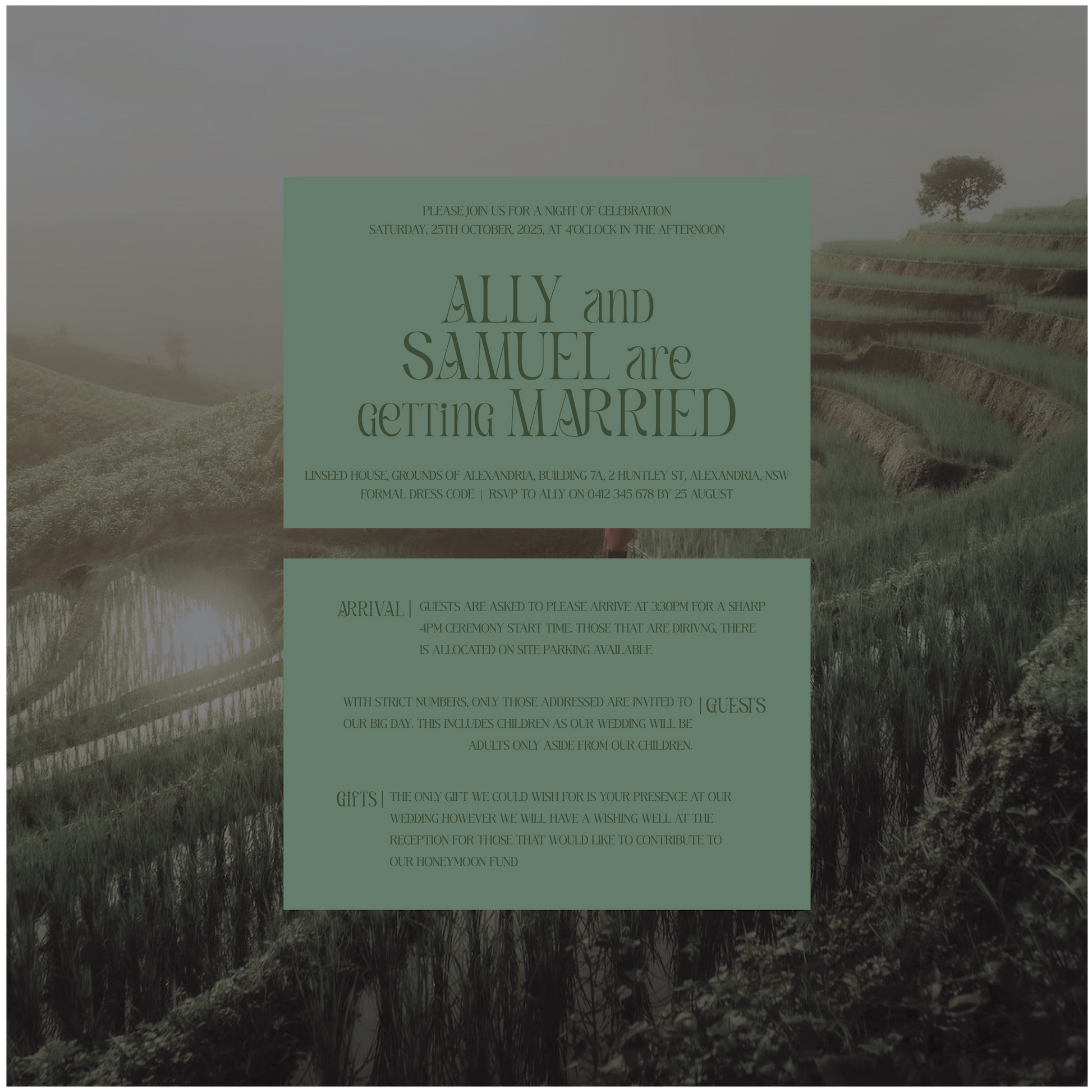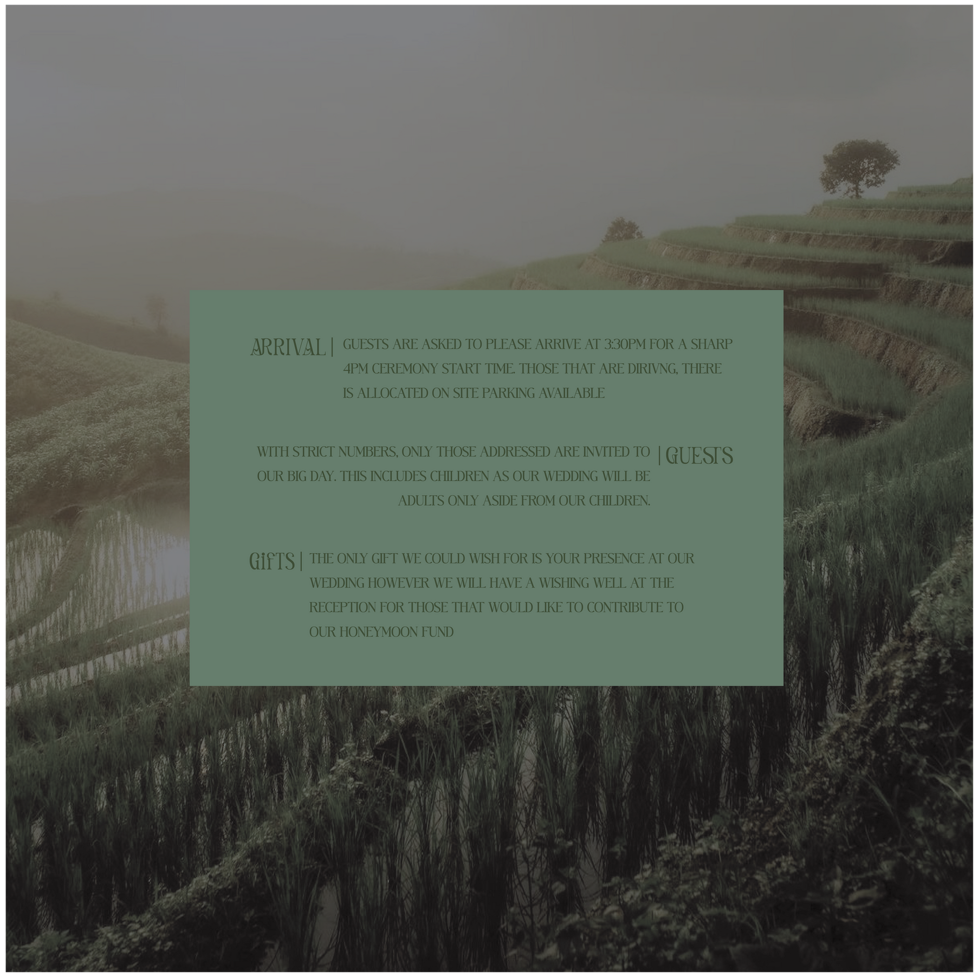 • We always recommend ordering extra invites for those 'maybe' guests, keepsakes and photography details on the day.