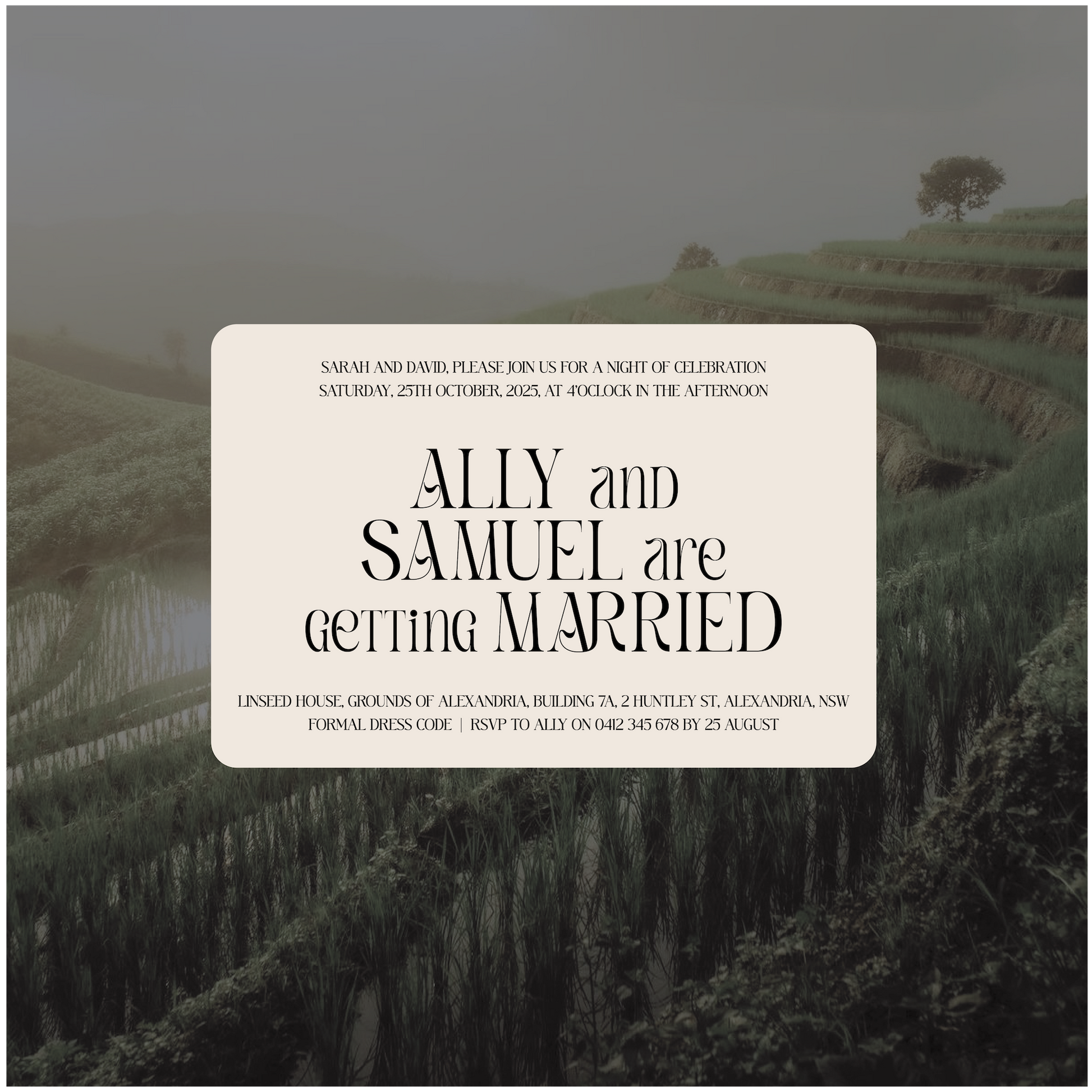 • 180x120mm landscape flat card invite in your chosen shape. Single sided unless the double sided option is selected.
