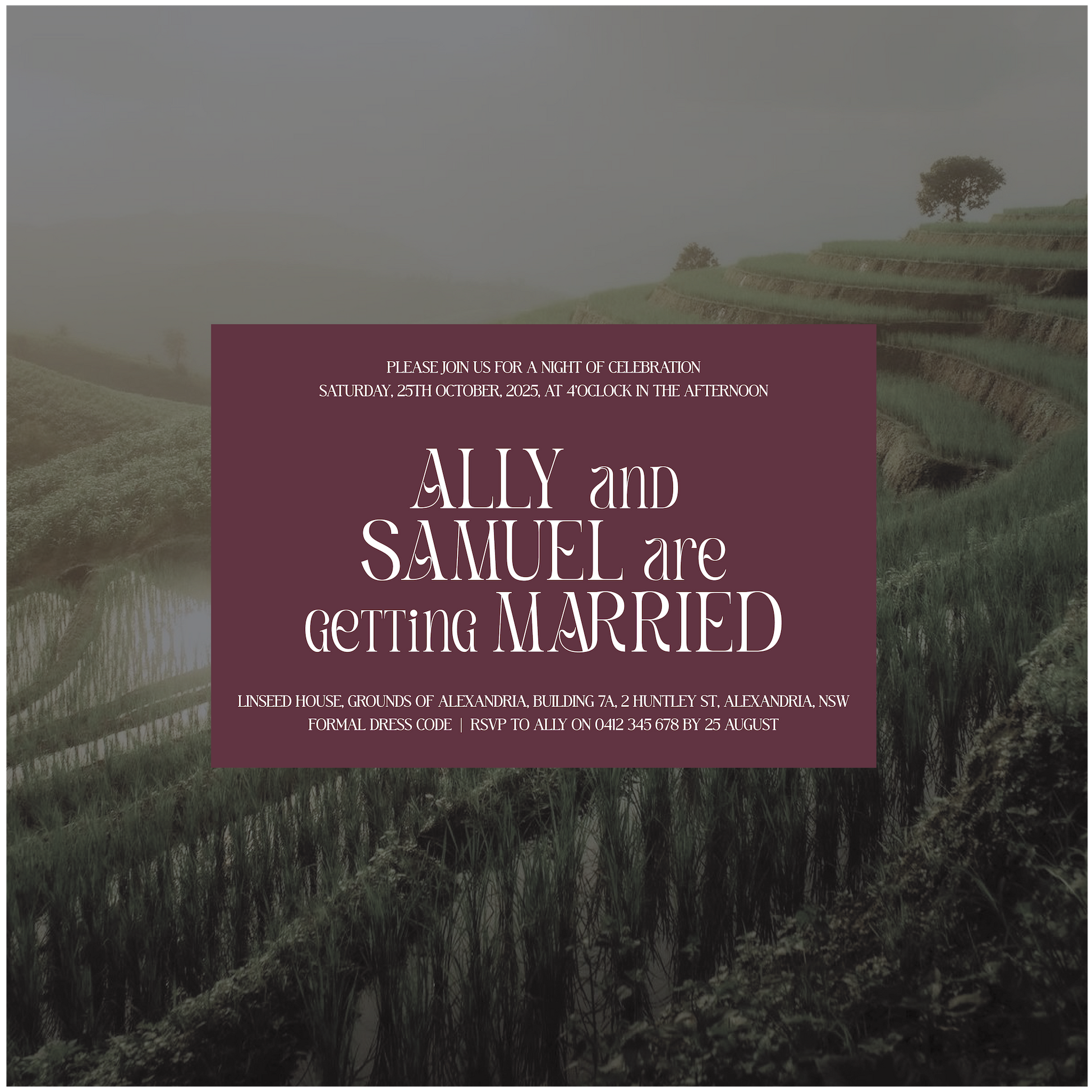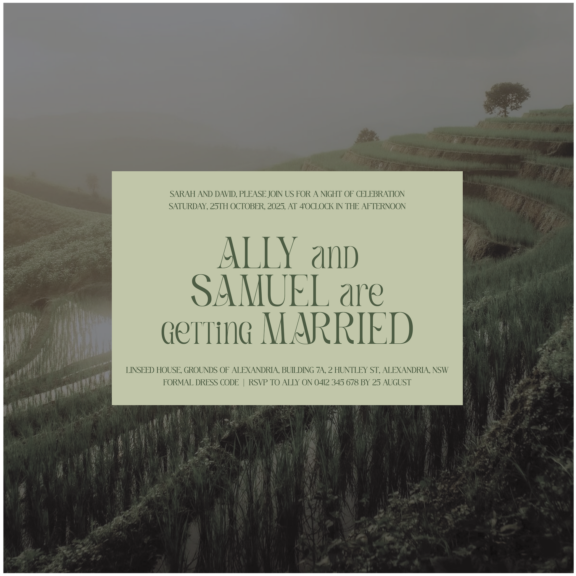 Part of the Thailand Collection, this single piece wedding invite uses strong graphic typography with leaf like details as it's hero element.