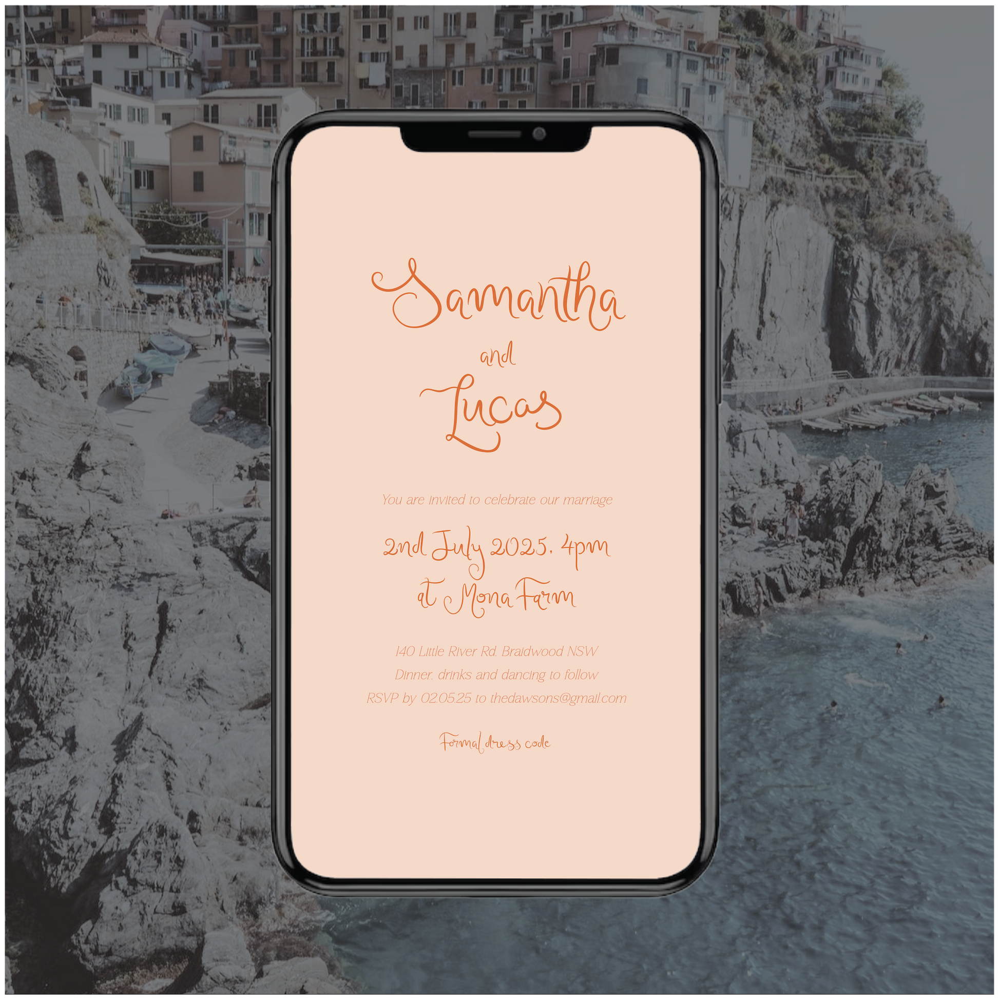Part of the Italy Collection, this single invite will transport you to Italy with our fun curly font and la dolce vita lifestyle vibes.