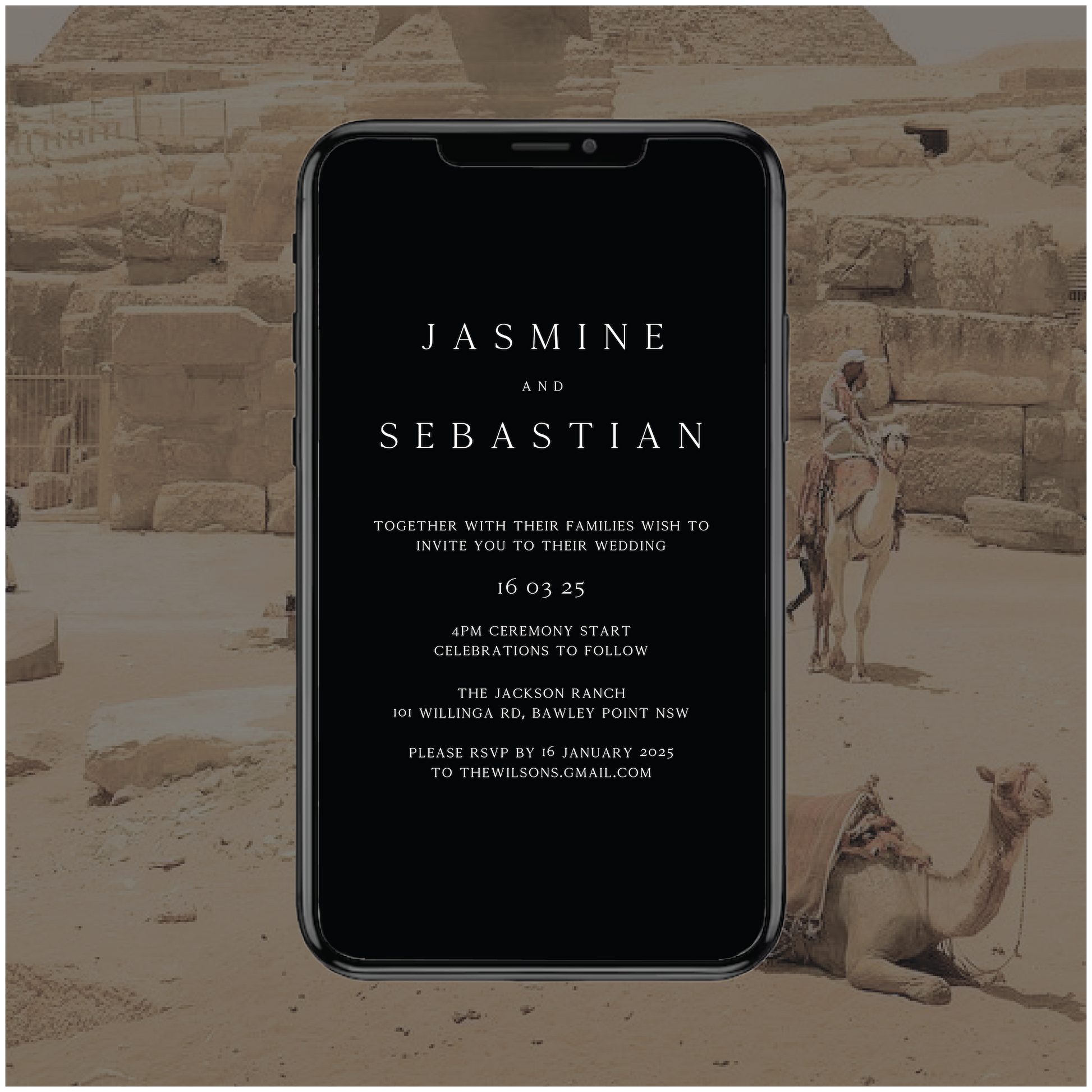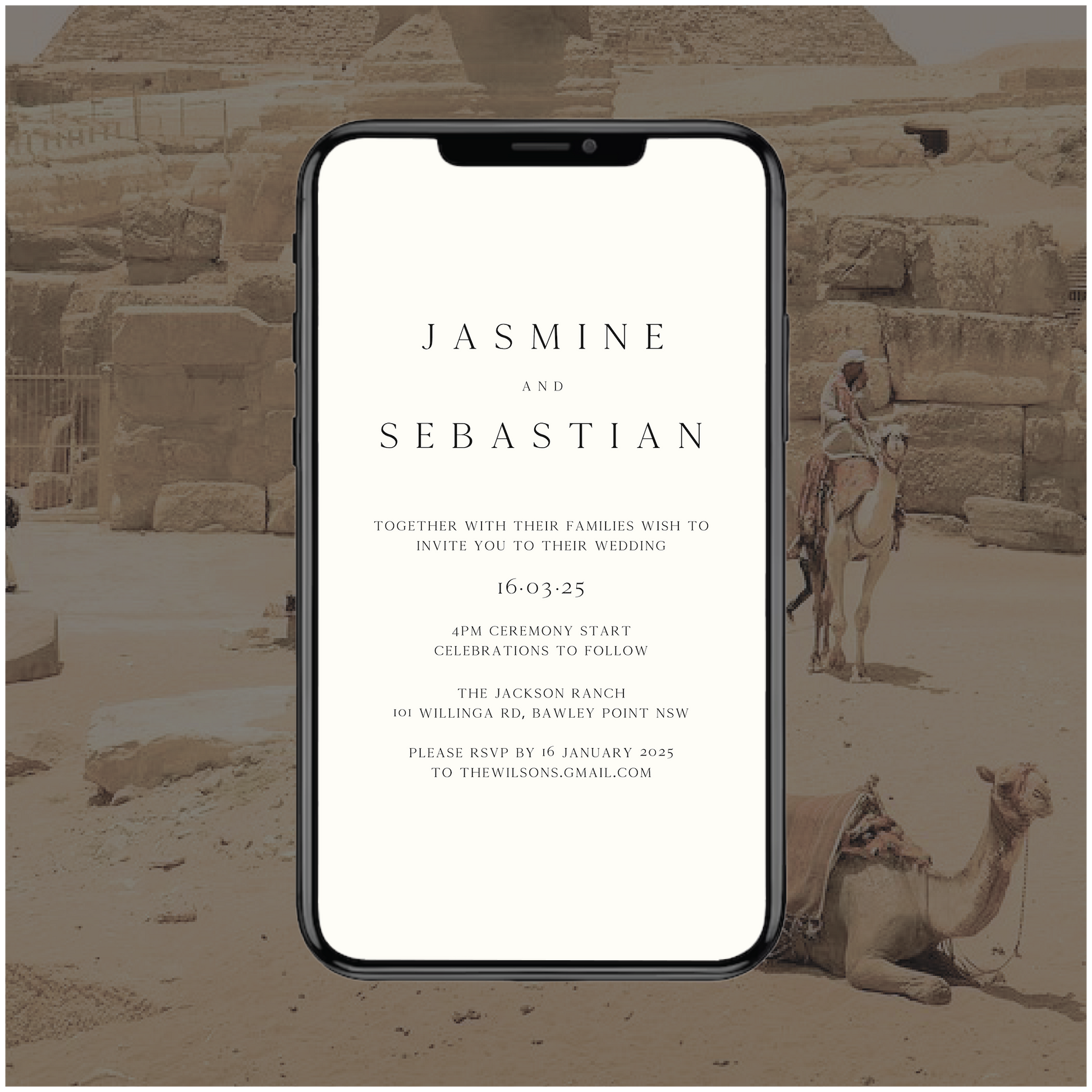 Part of the Egypt Collection, this single invite is simple, classic and timeless.