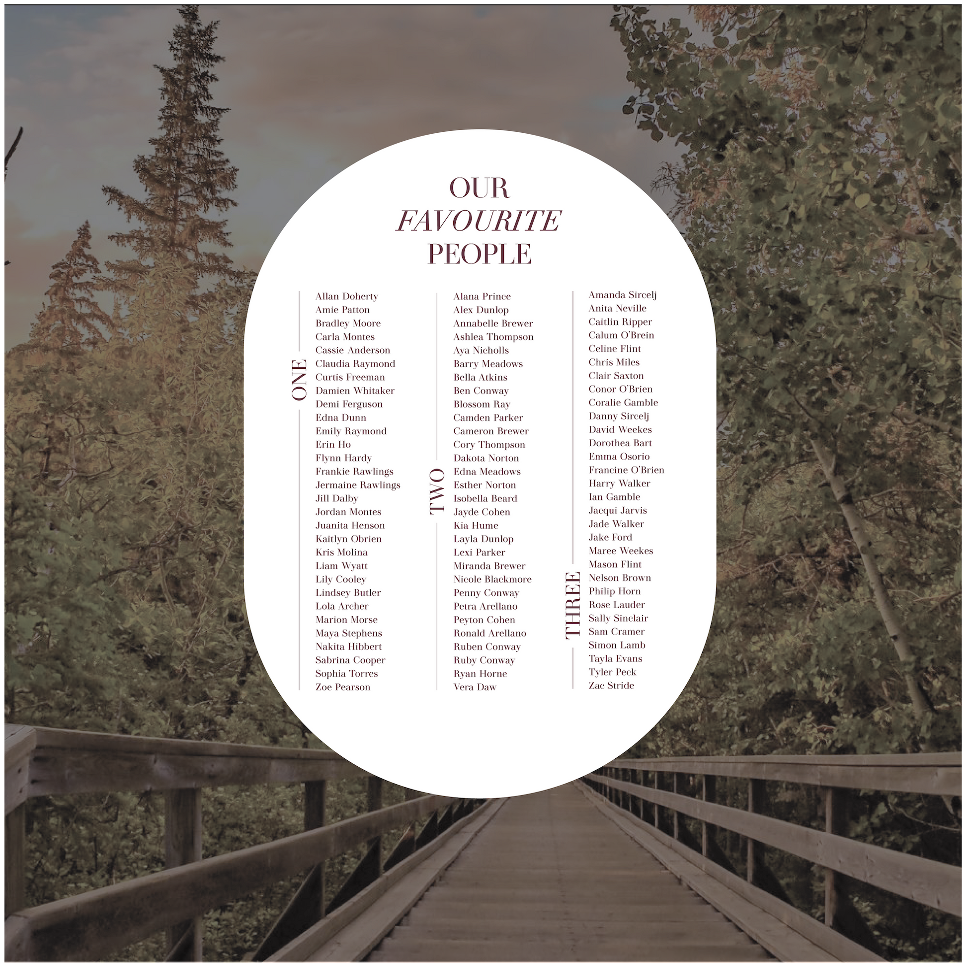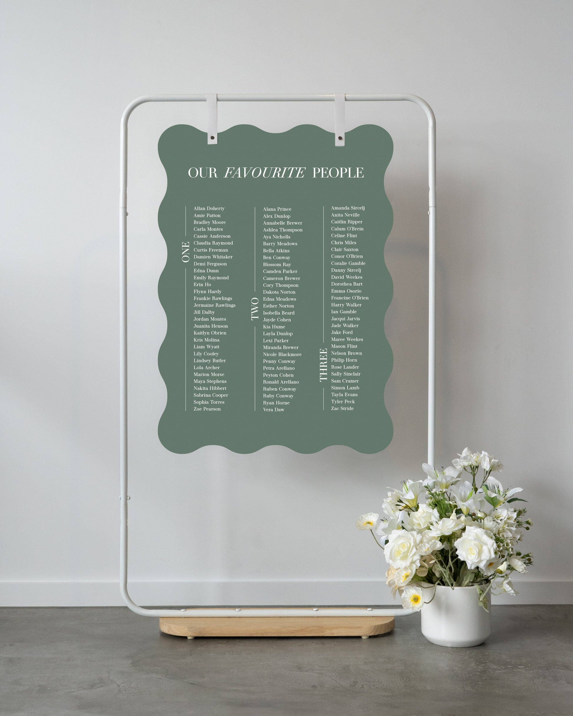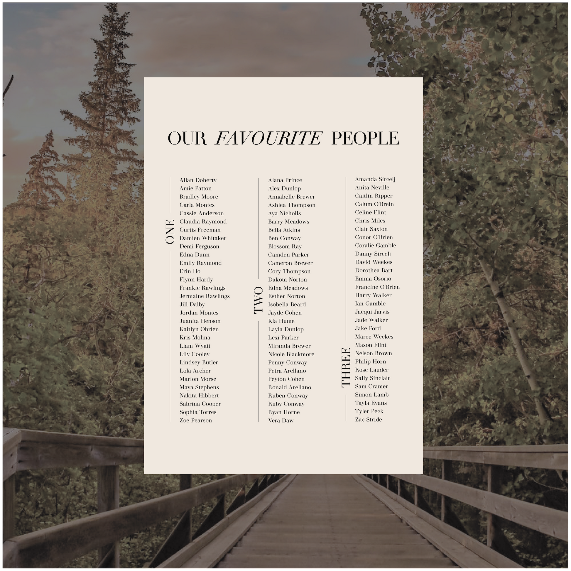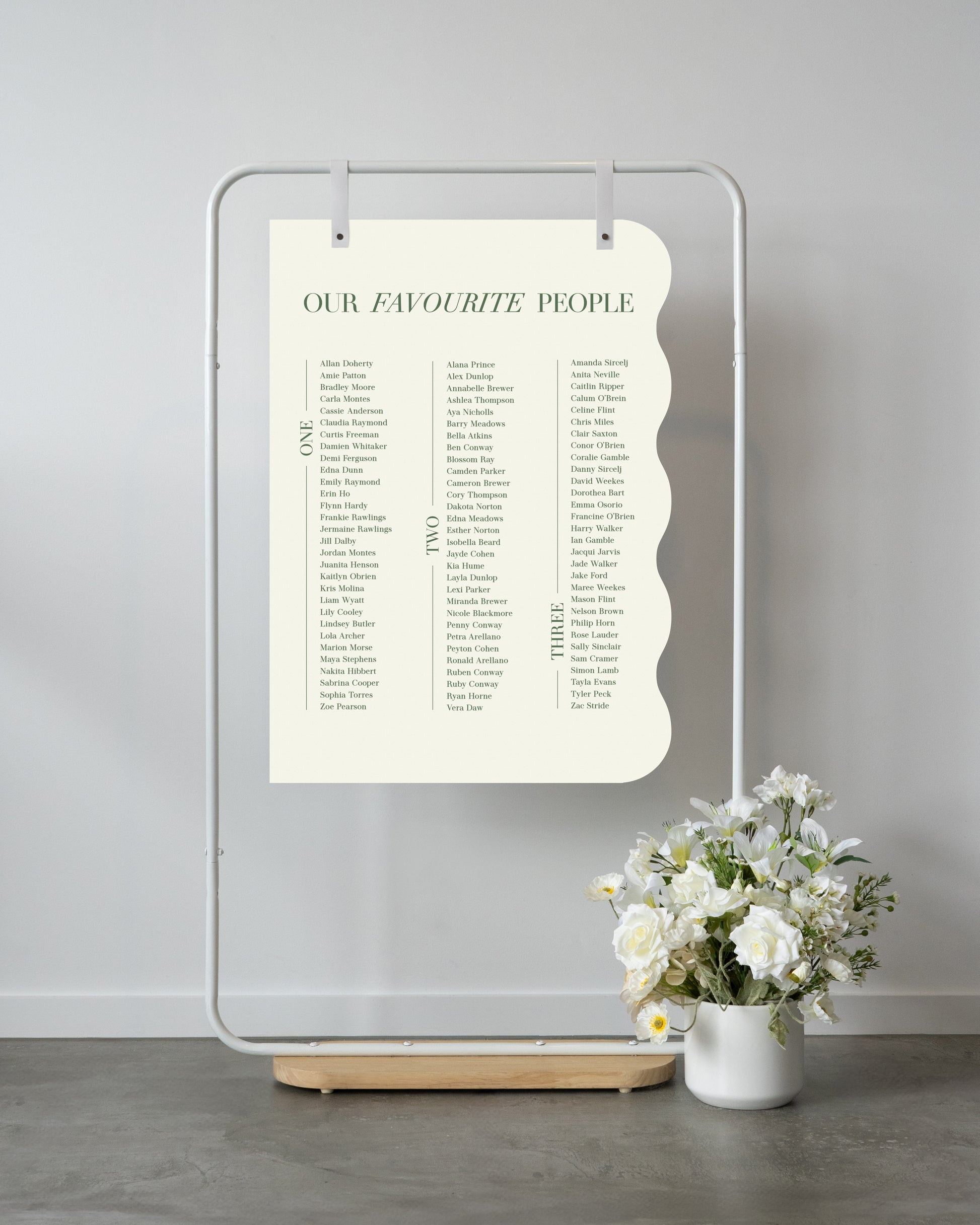 If you have over this number of guests and order a sign too small, a design fee may occur to re-work the design to fit the names otherwise an upgrade fee to a larger size to accomodate the guest list may occur.