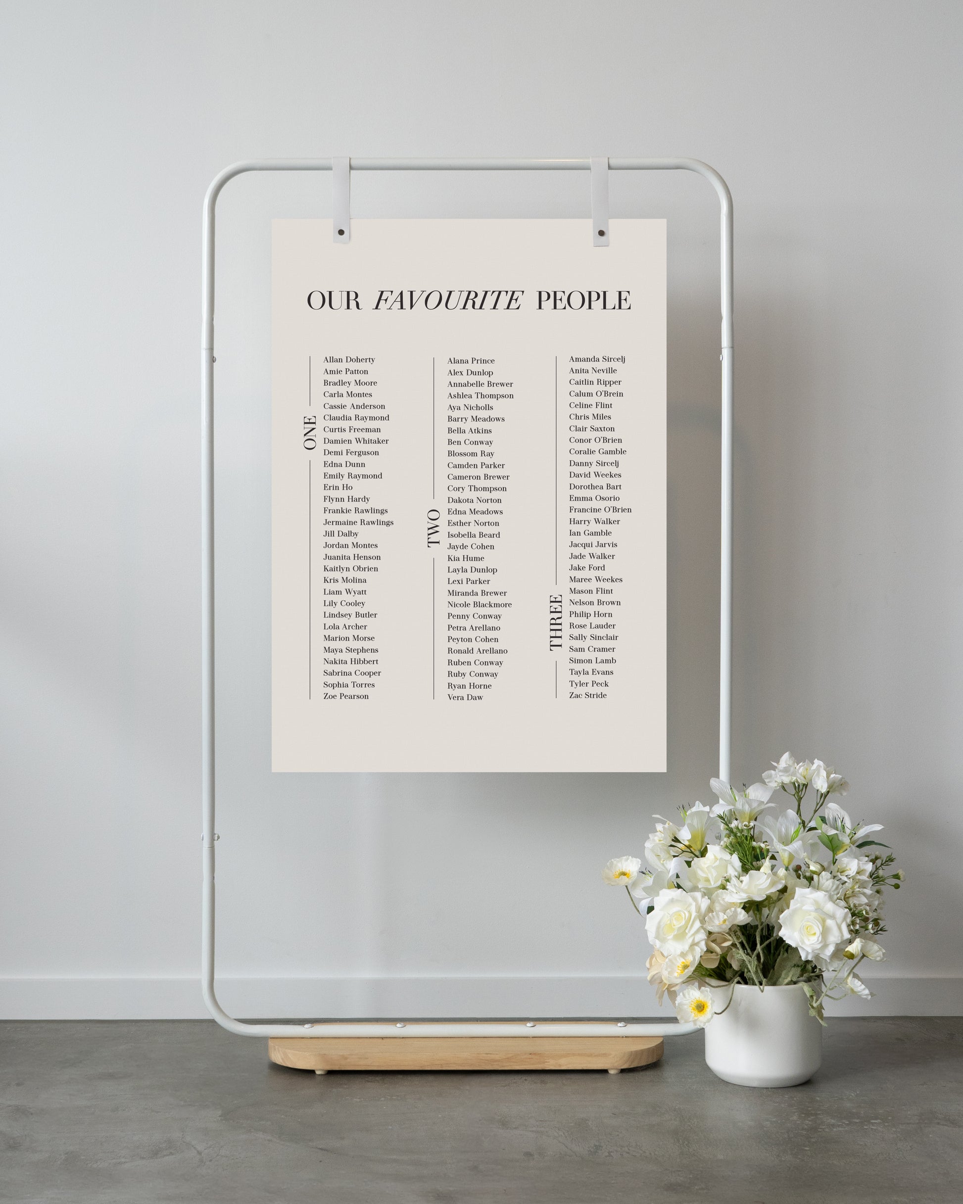 For all seating charts we require you to use our excel template for your guests names and table allocation. This can either be emailed to us after placing the order or within the timeframes provided.