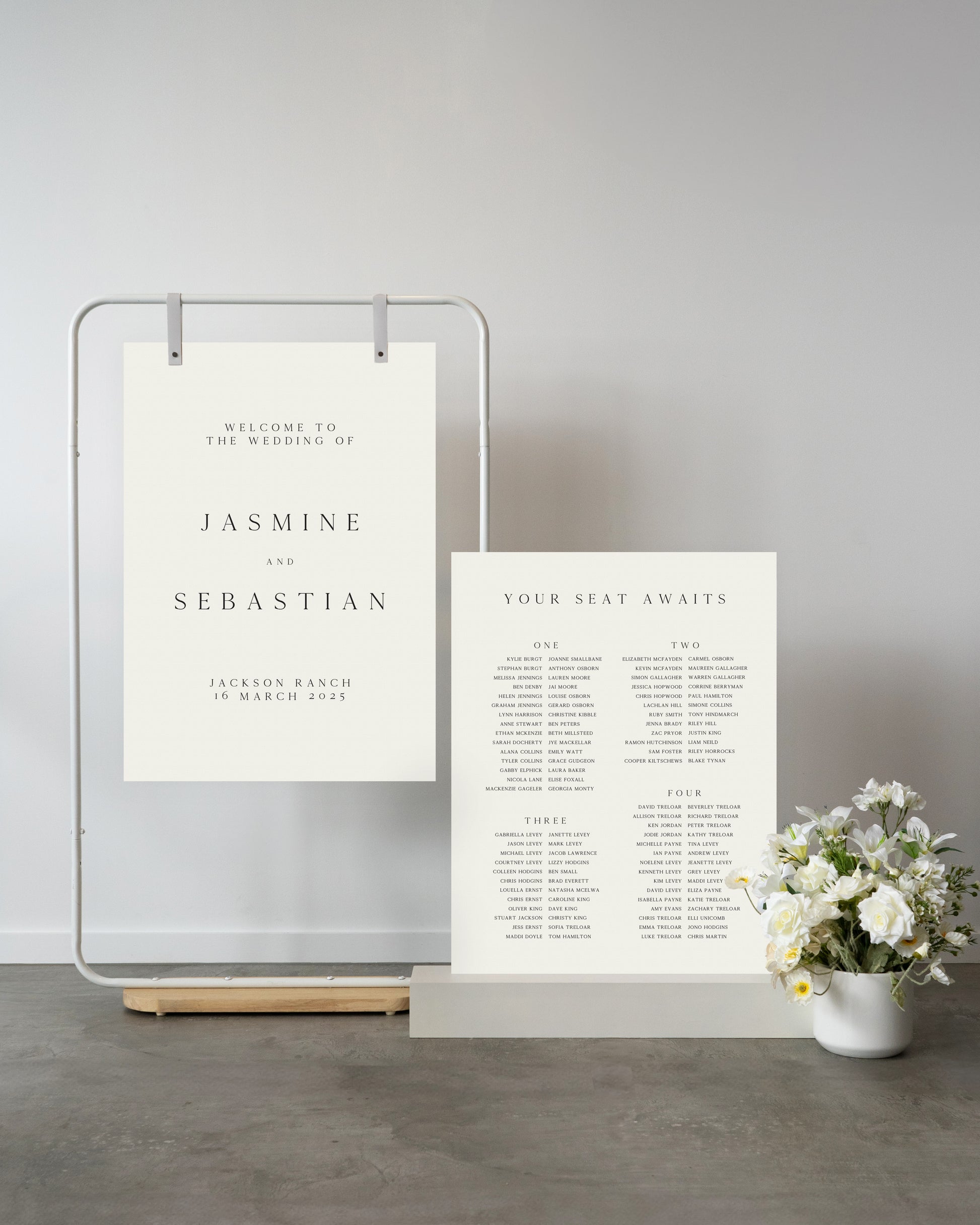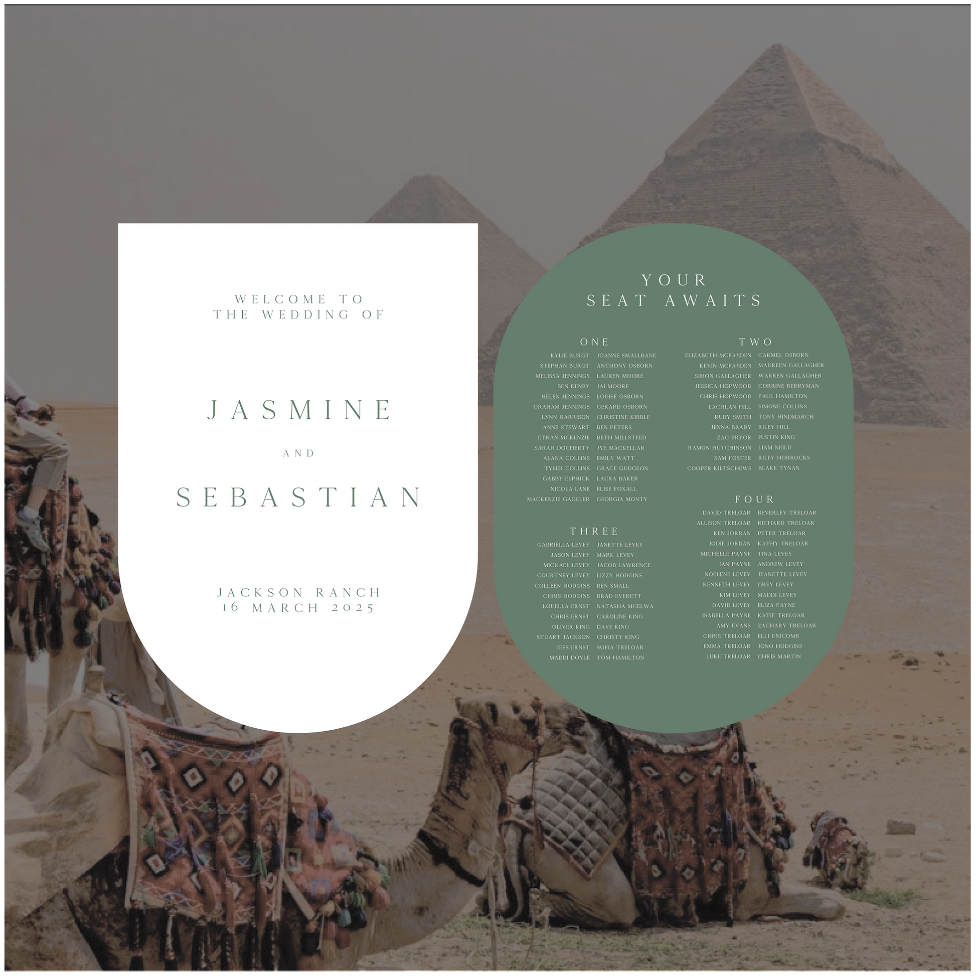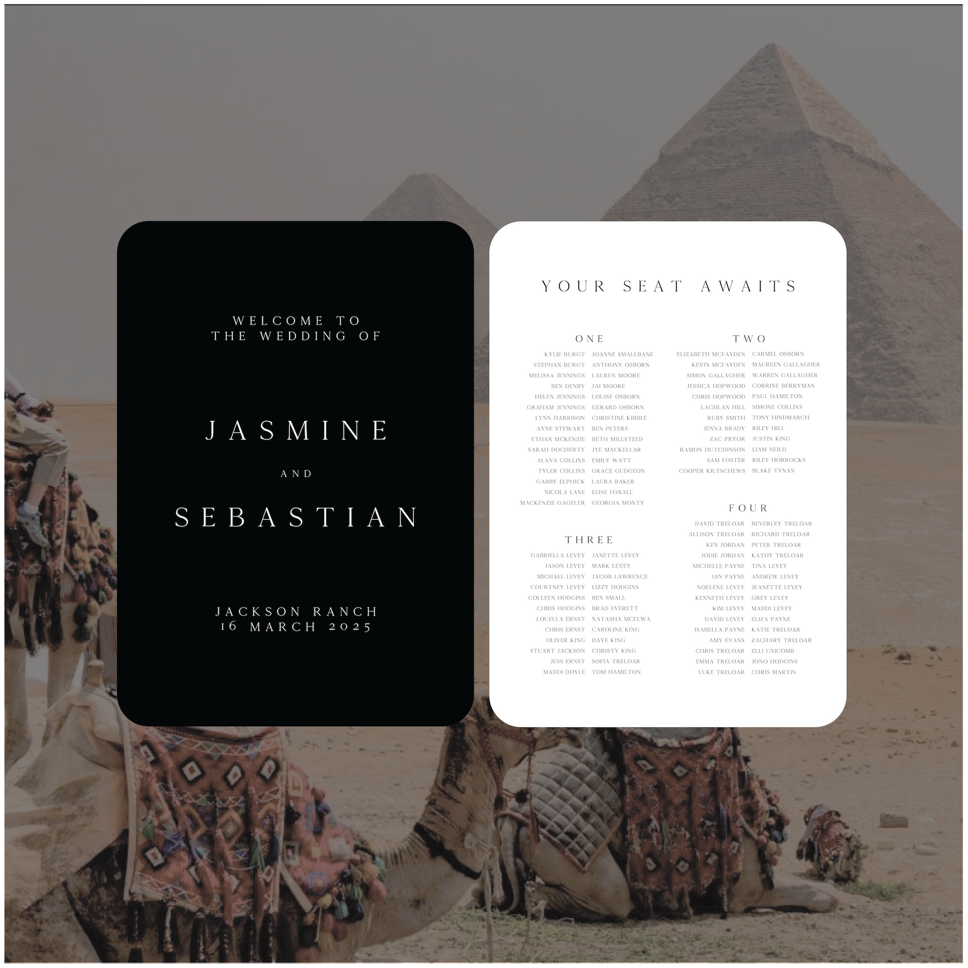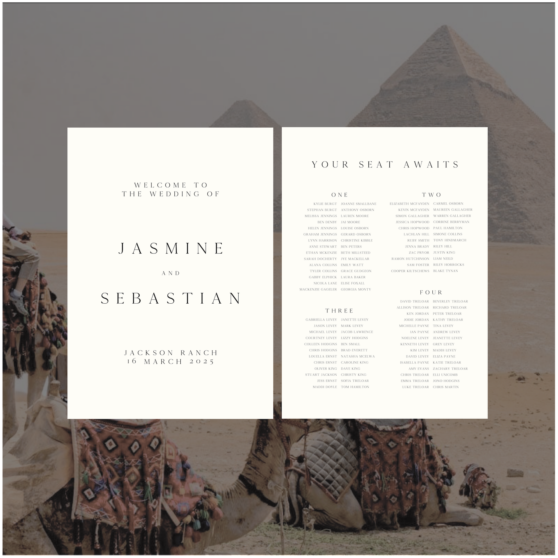 This Egypt wedding welcome and seating chart signage package is simple, classic and timeless.