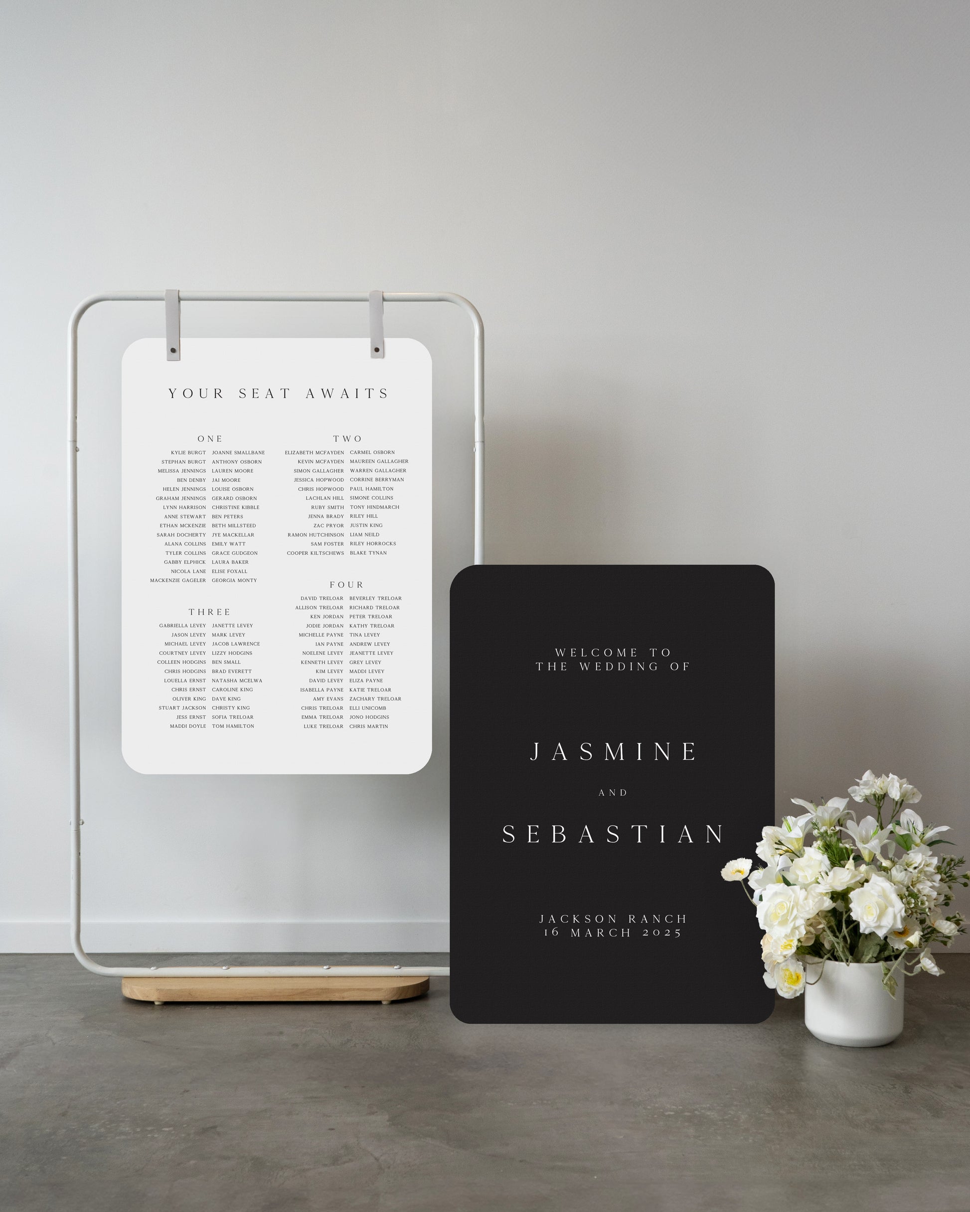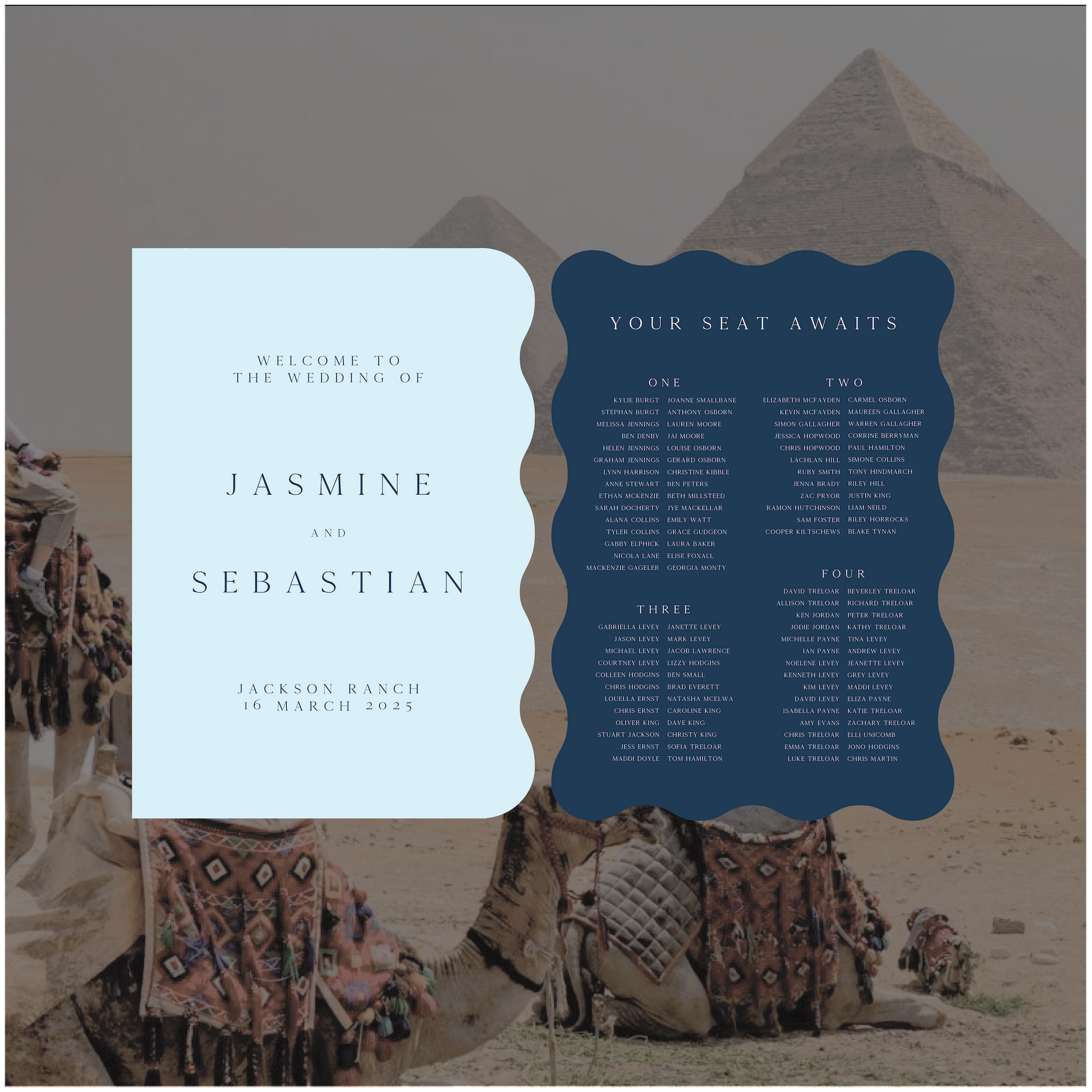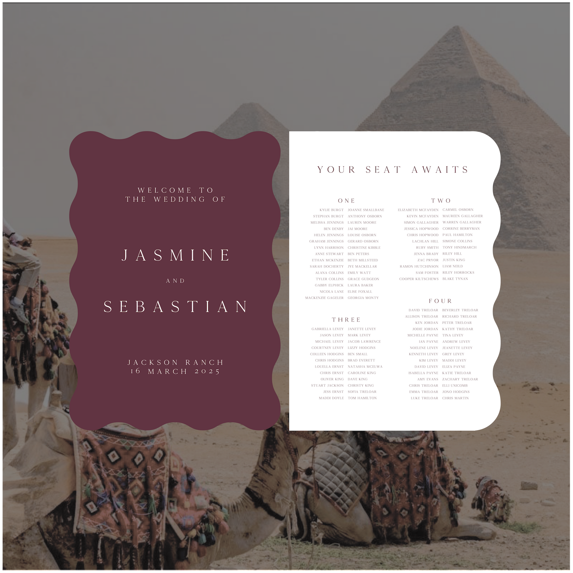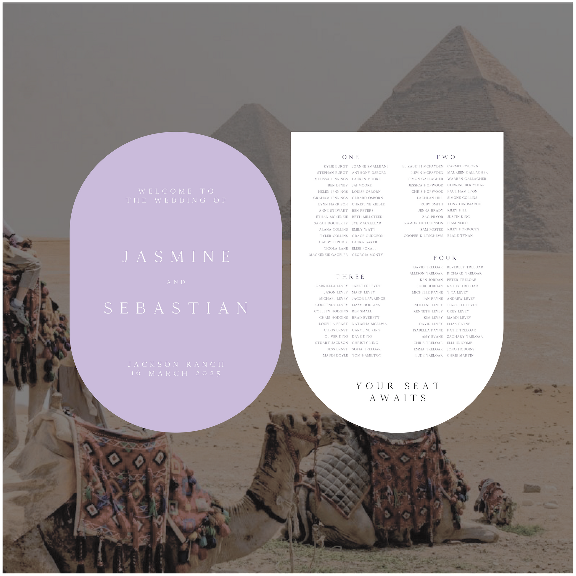 This Egypt wedding welcome and seating chart signage package is simple, classic and timeless.