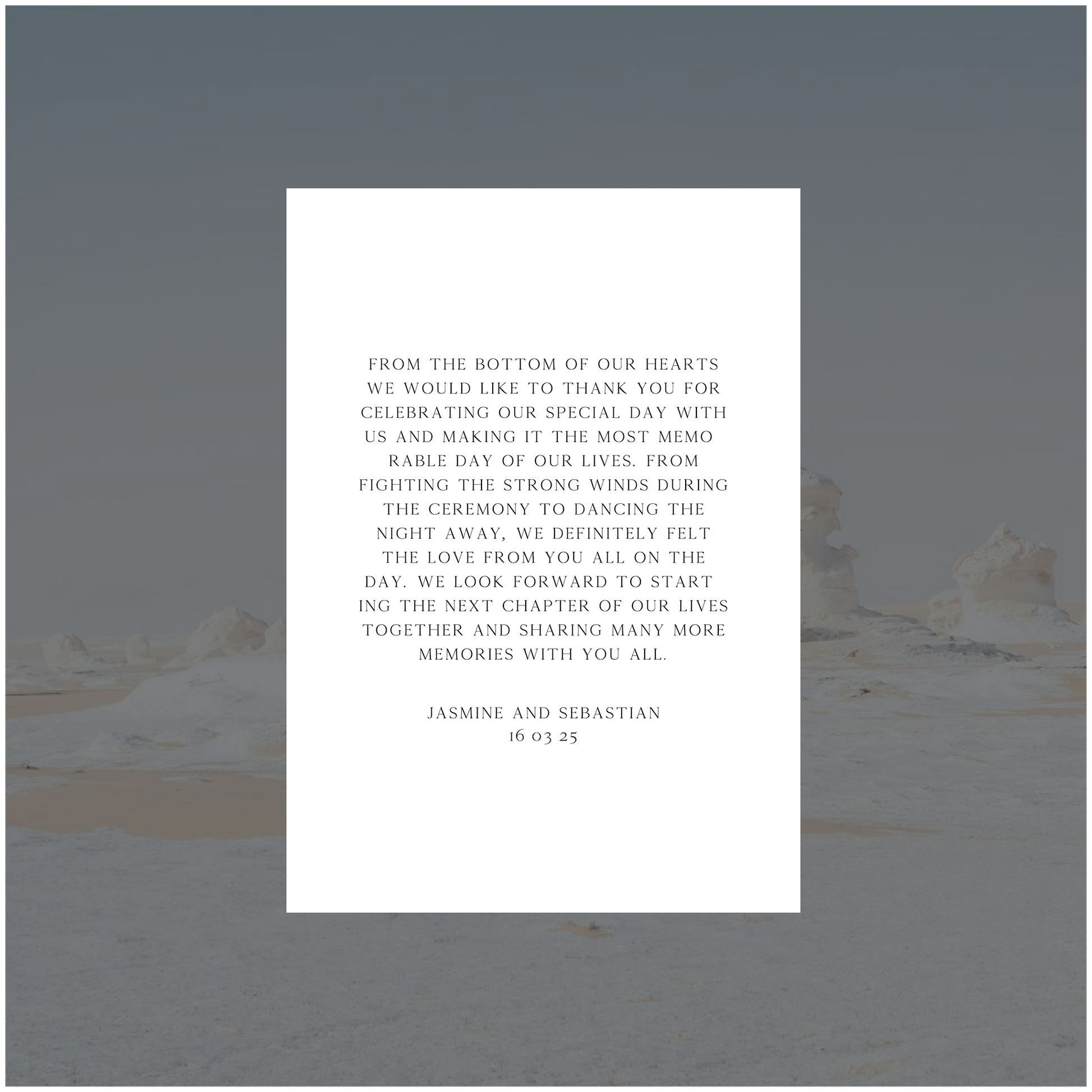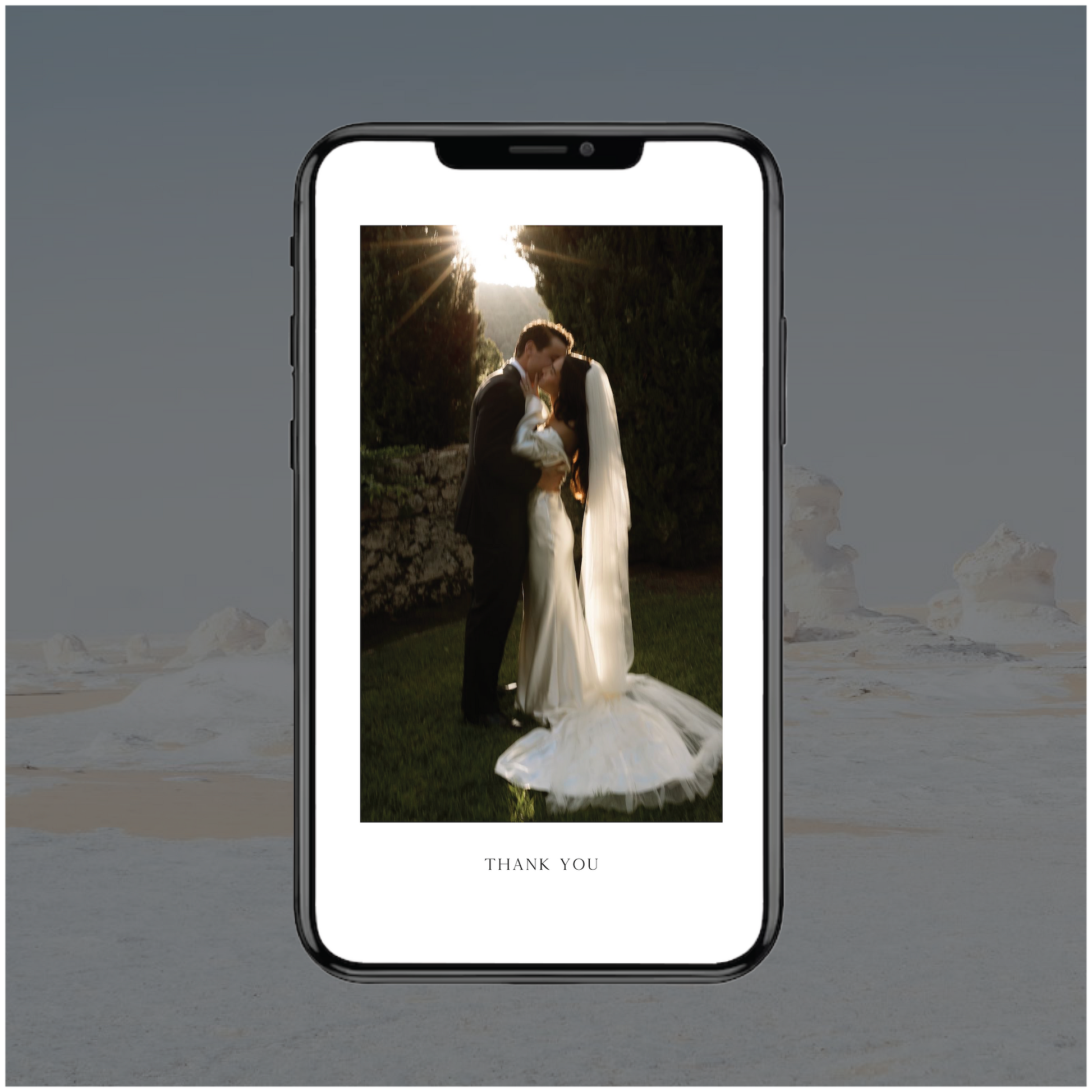 Part of the Egypt Collection, this digital thank you card is the perfect simple, classic and timeless piece to send to your guests as a final thank you for being apart of your epic celebration.