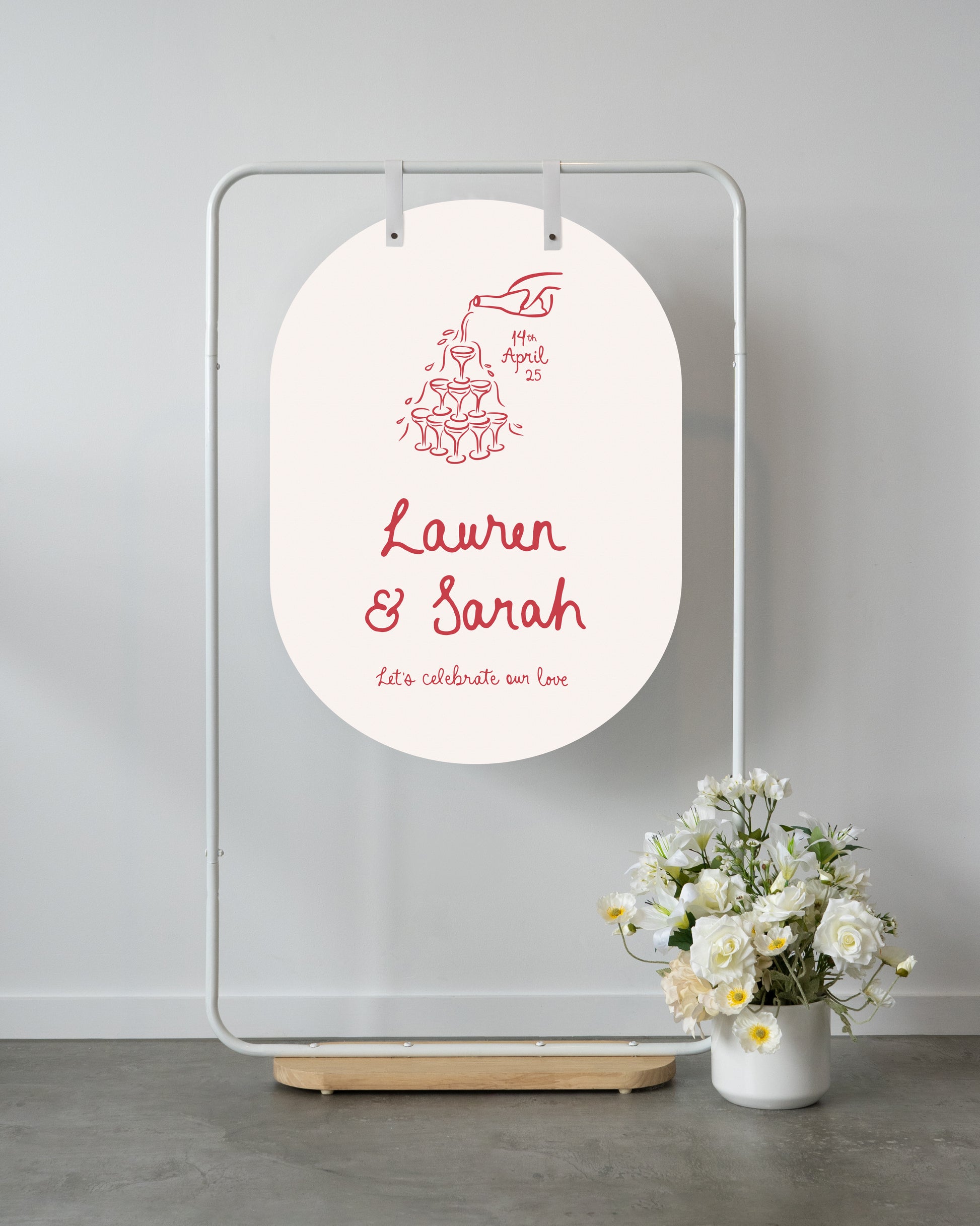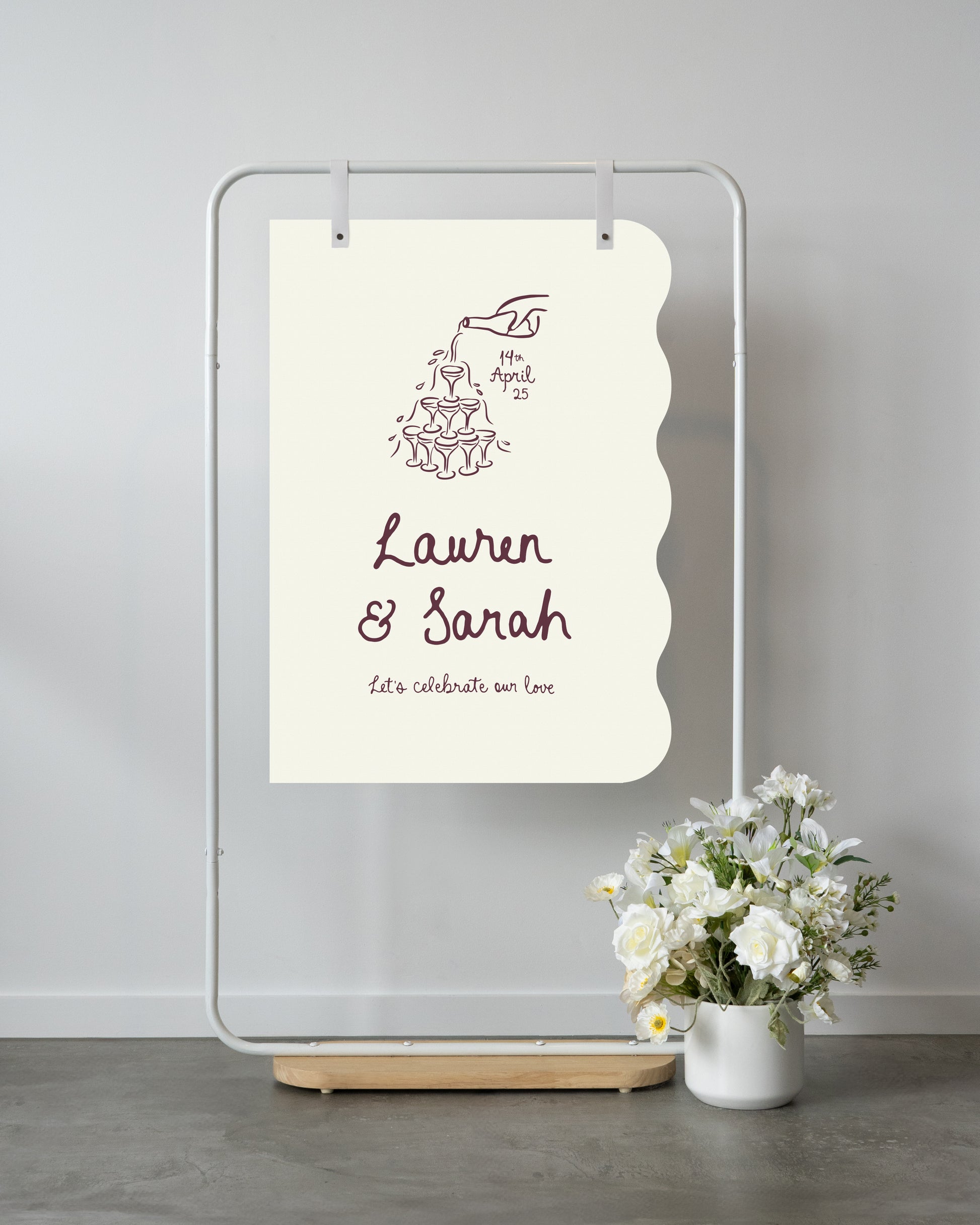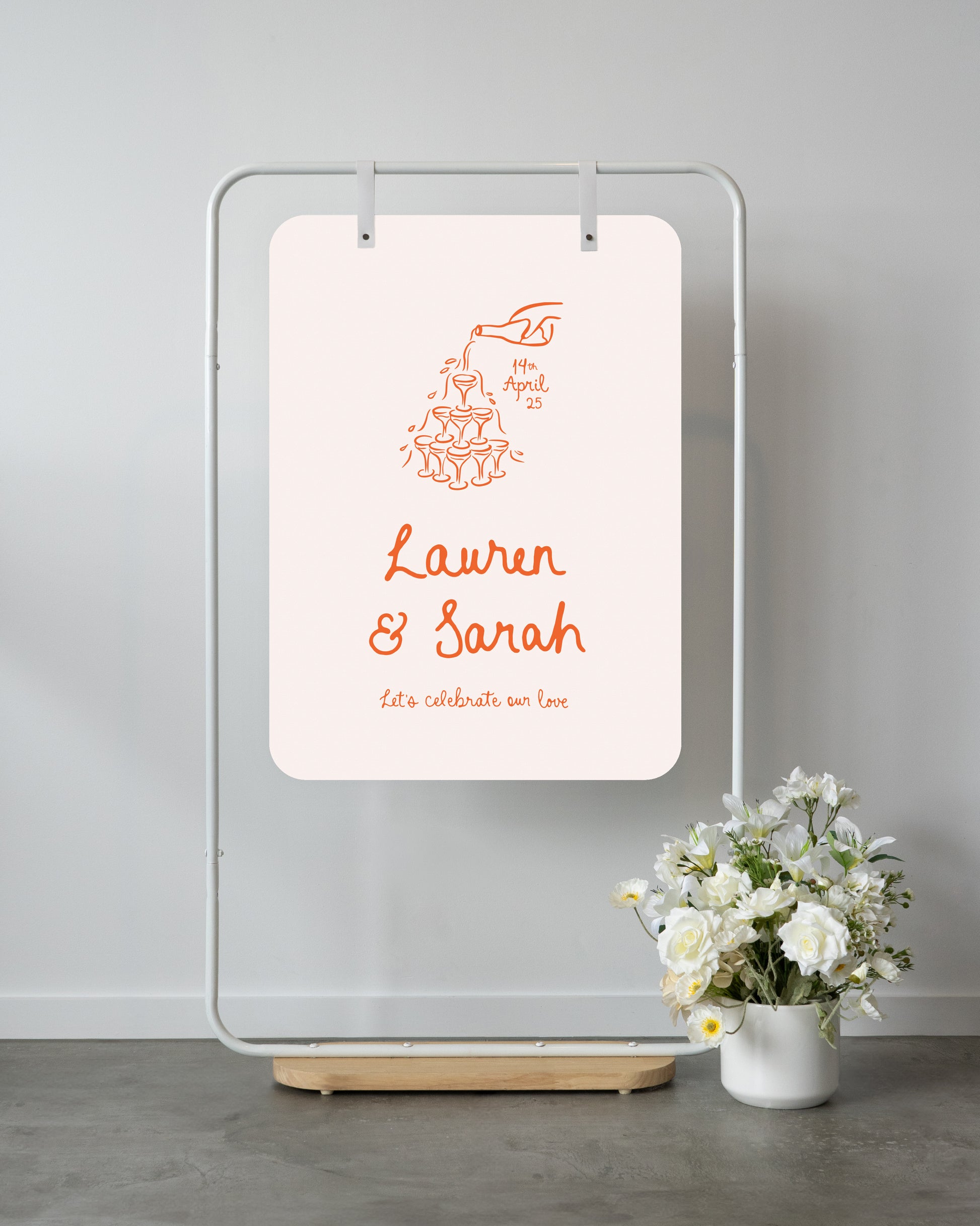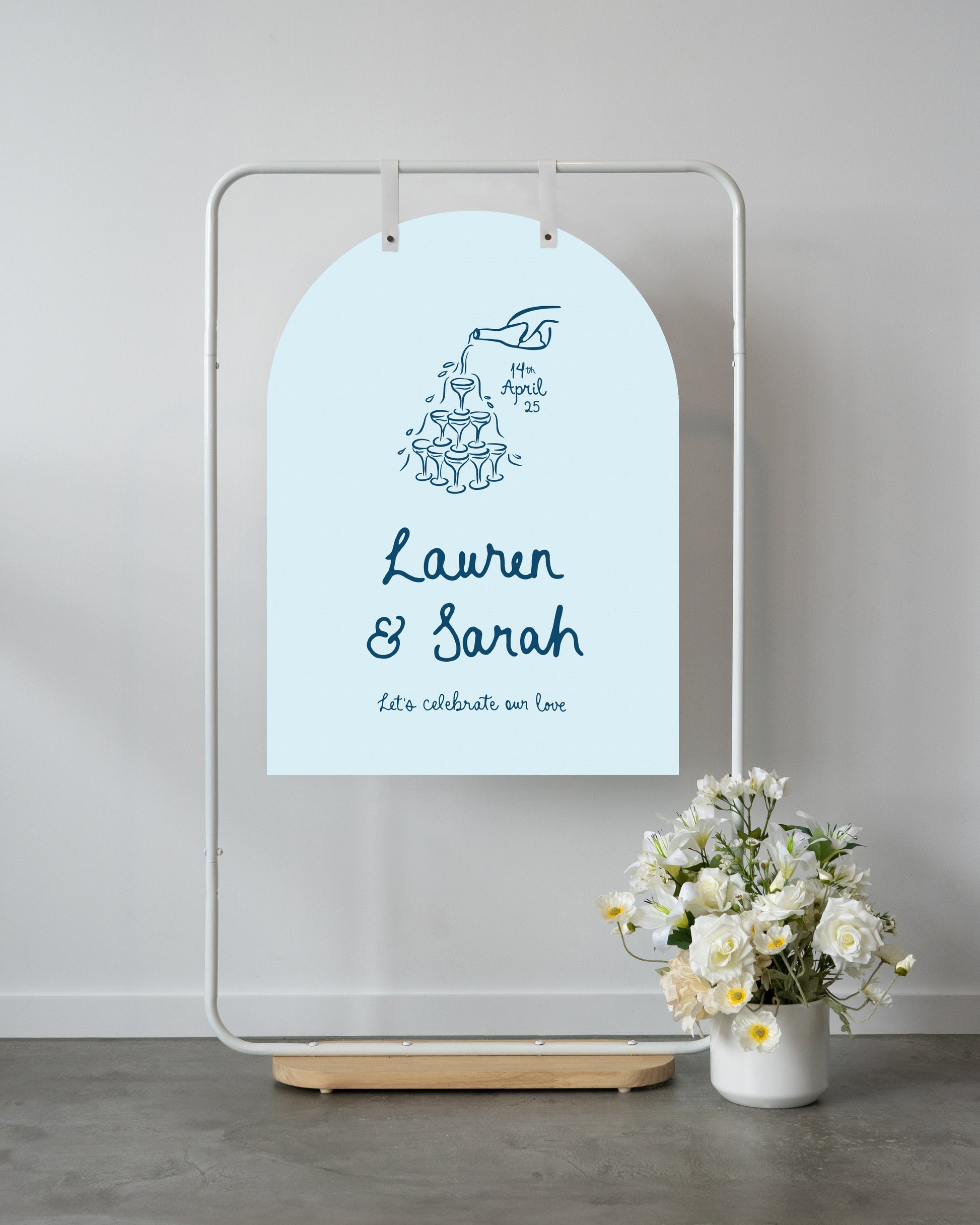Part of the Portugal Collection, this wedding welcome sign is a fun modern piece with handwritten fonts and playful illustrations.