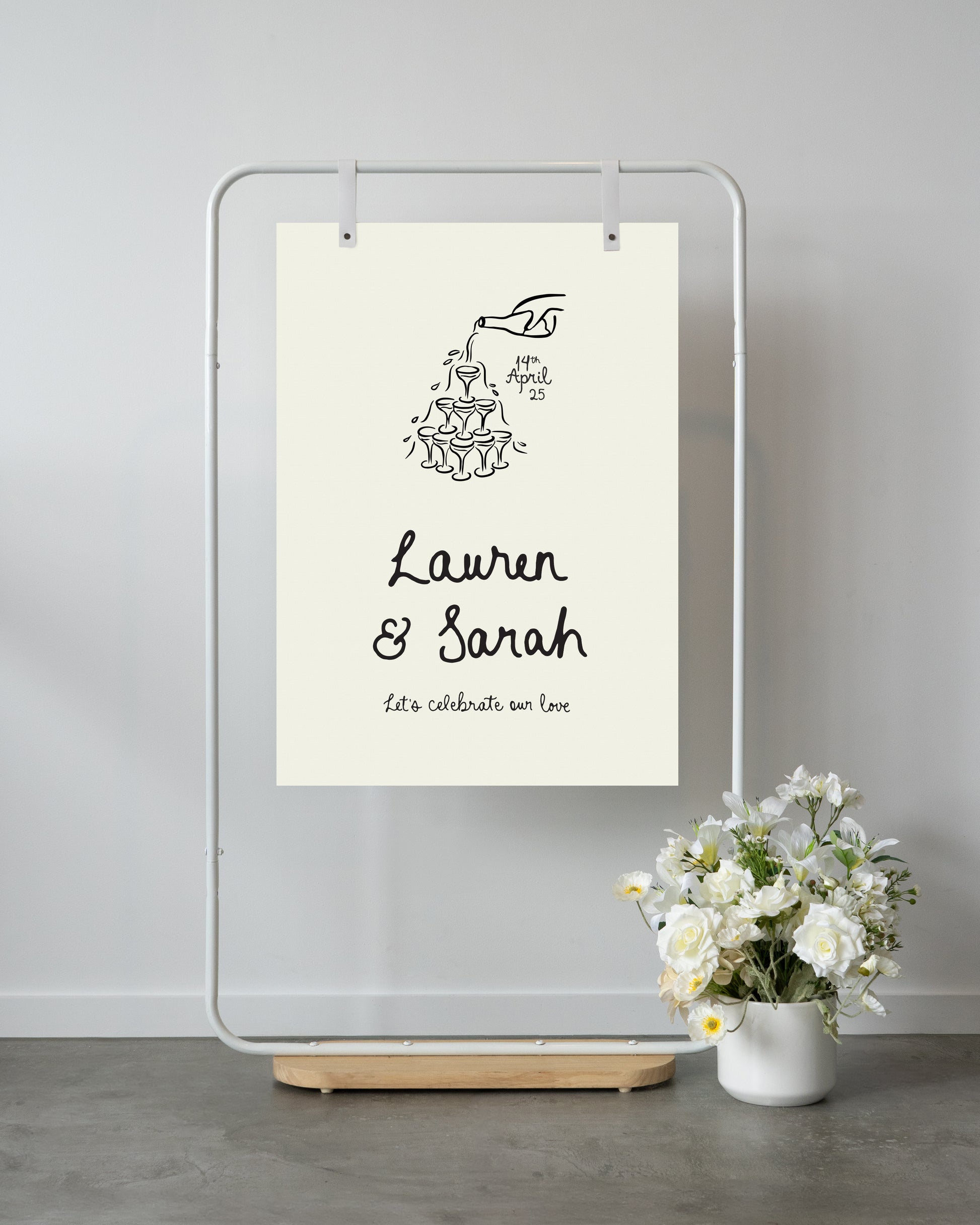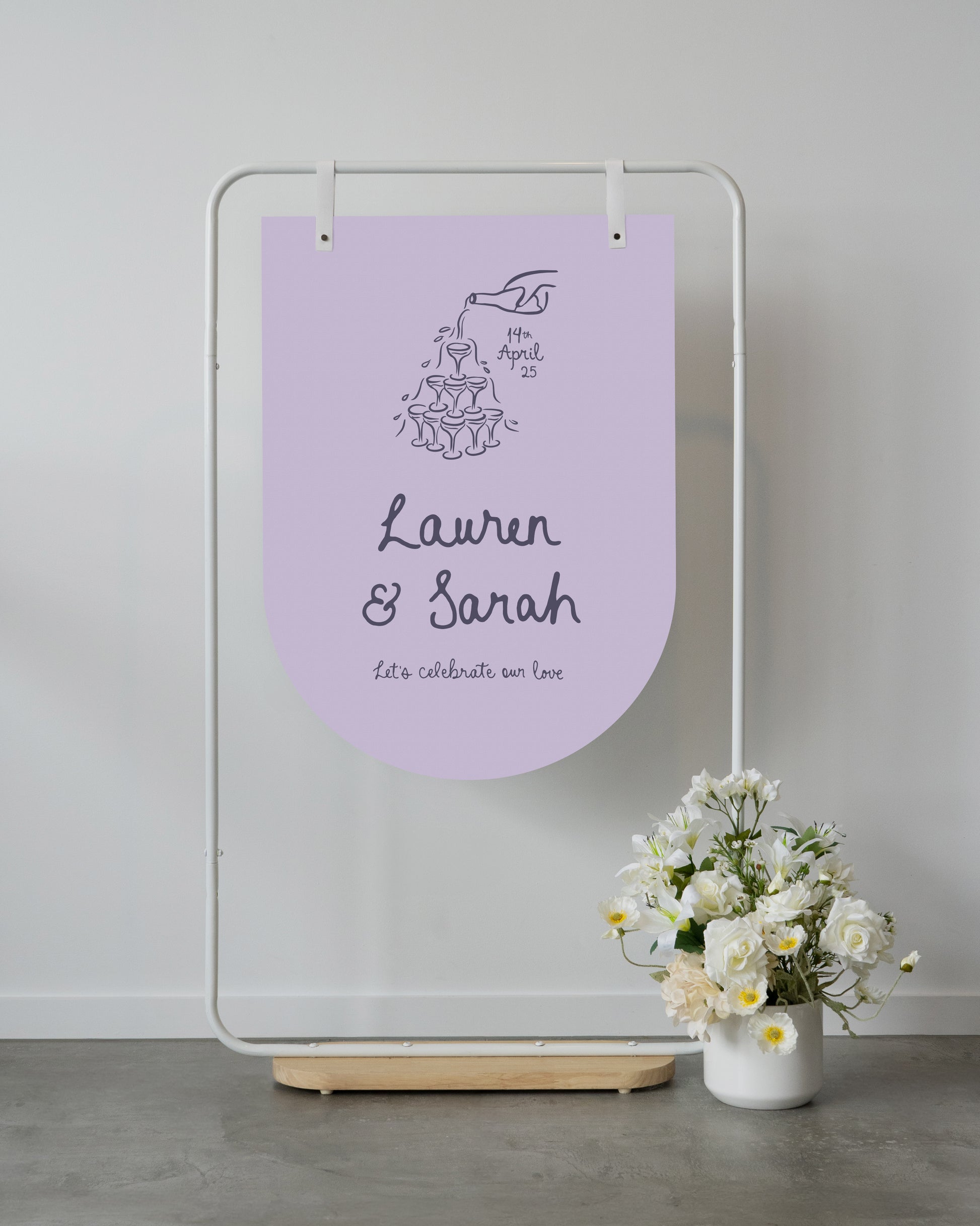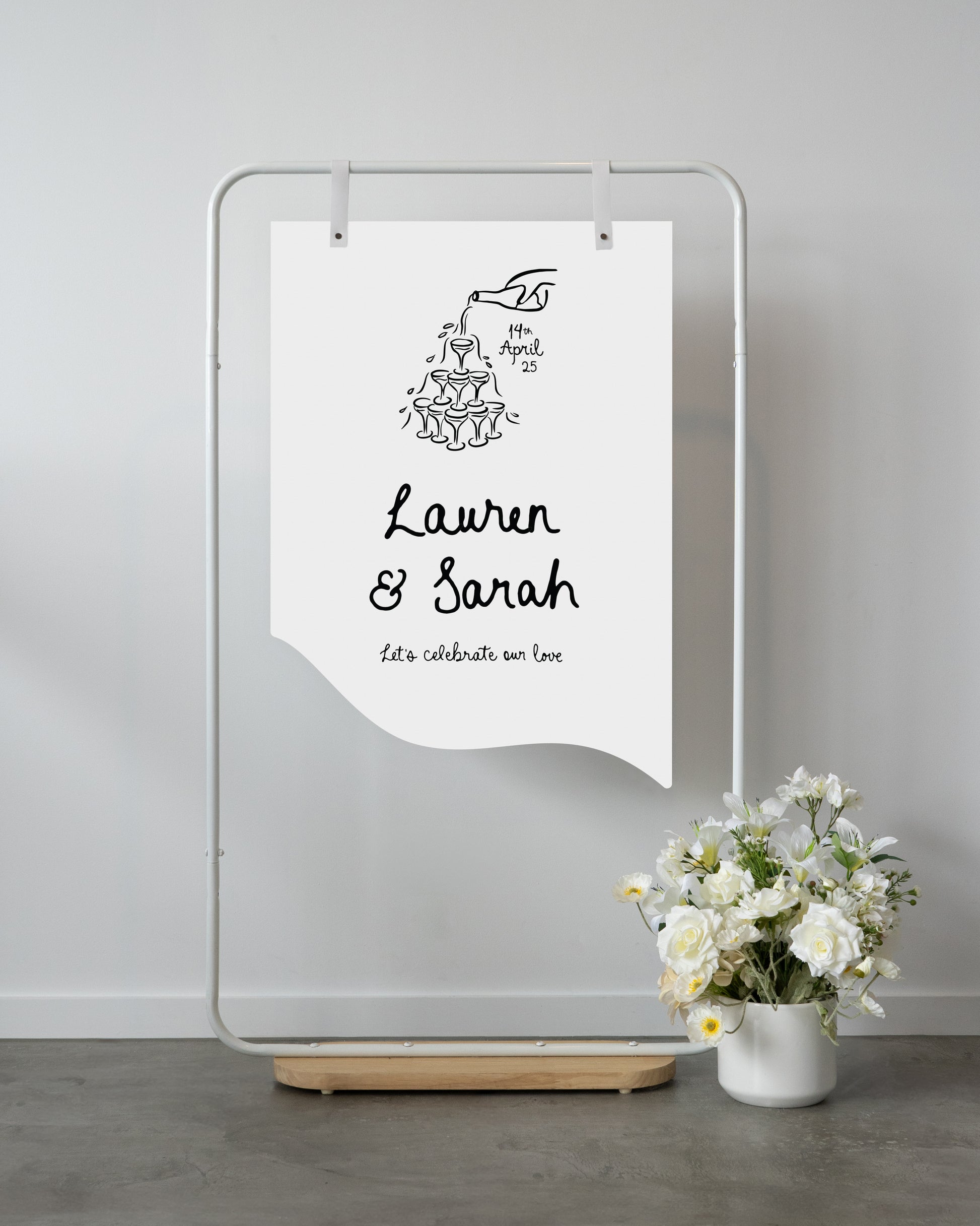 Part of the Portugal Collection, this wedding welcome sign is a fun modern piece with handwritten fonts and playful illustrations.