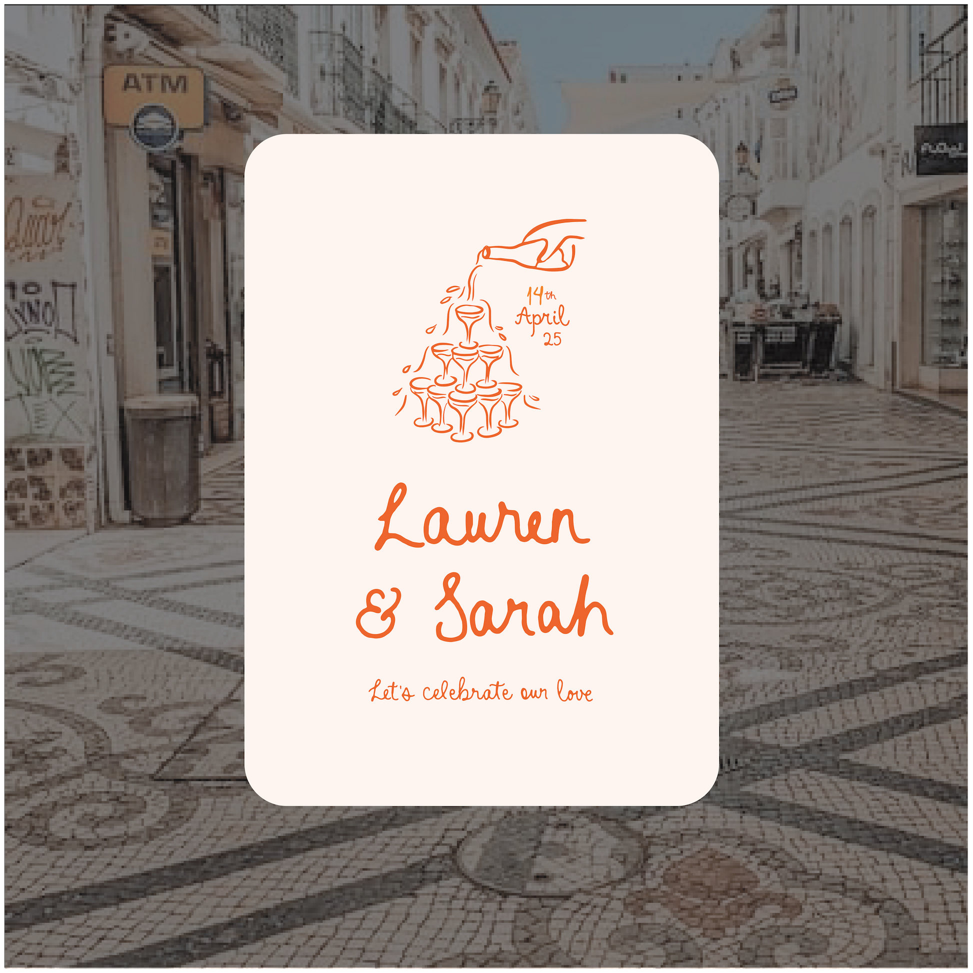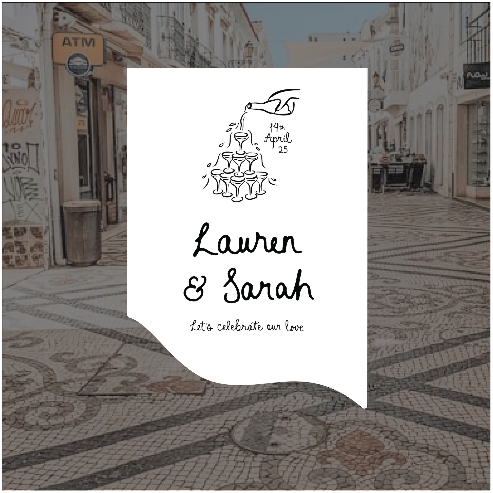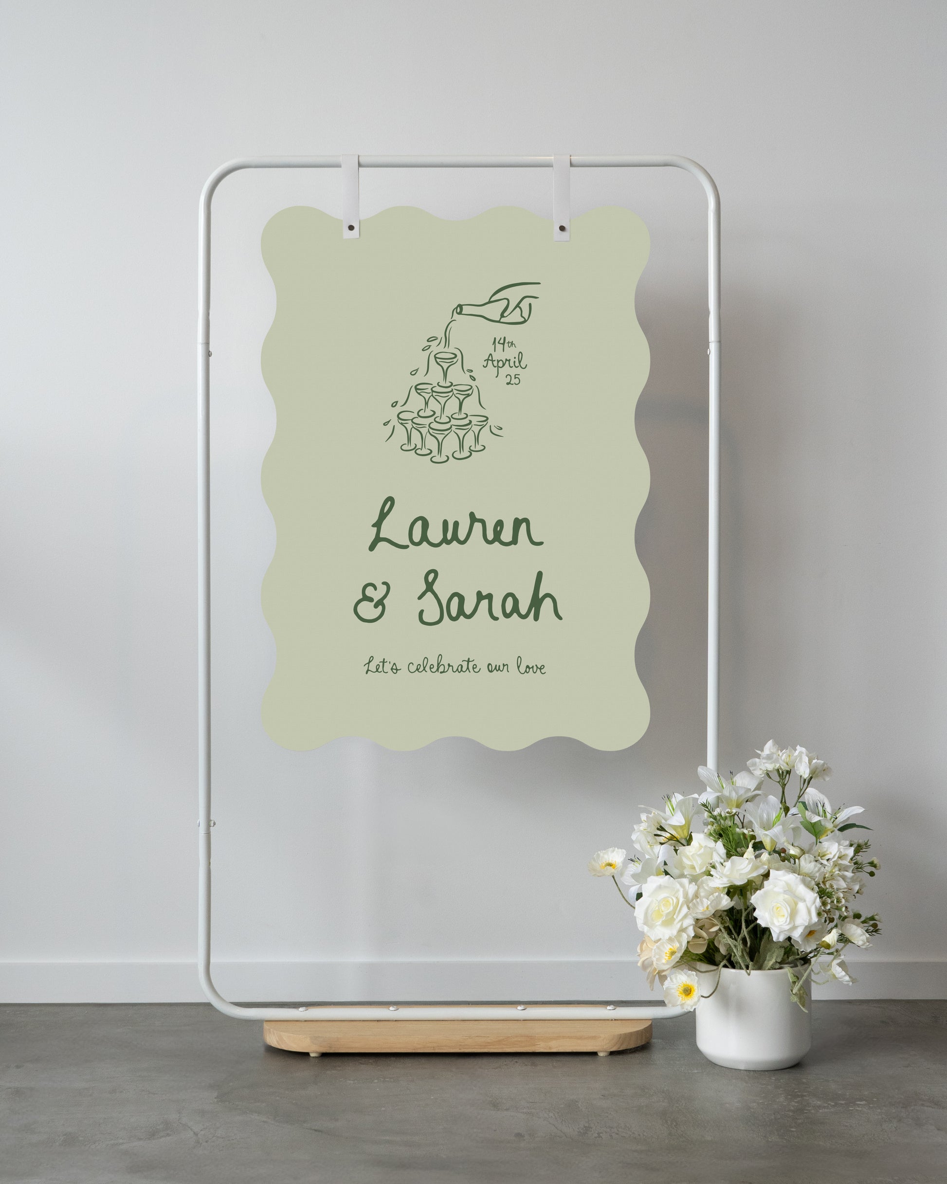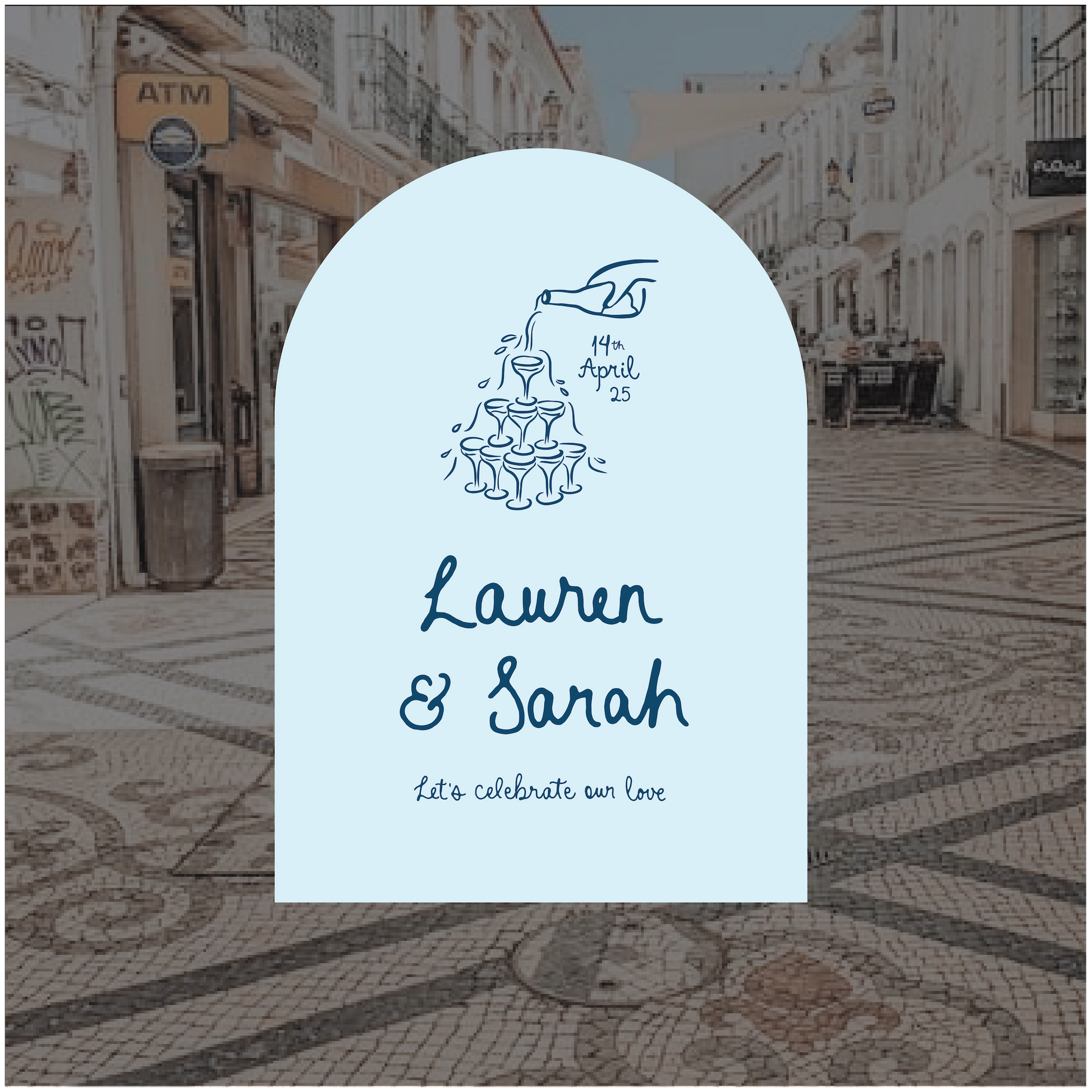 Part of the Portugal Collection, this wedding welcome sign is a fun modern piece with handwritten fonts and playful illustrations.