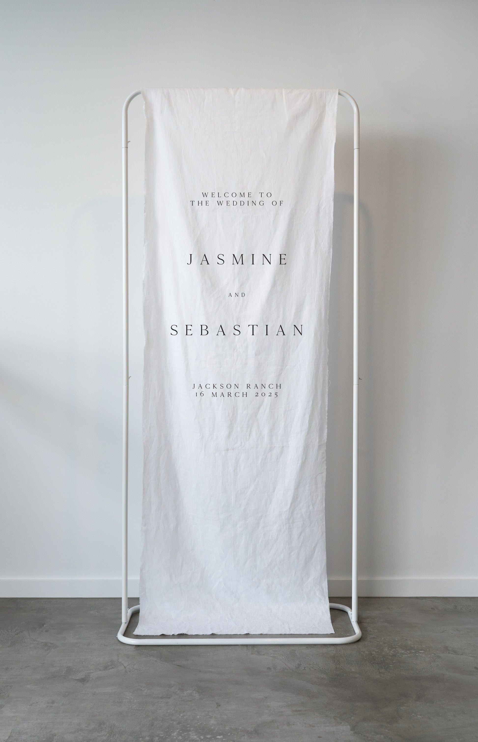 Part of the Egypt Collection, this wedding linen sign is simple, classic and timeless.