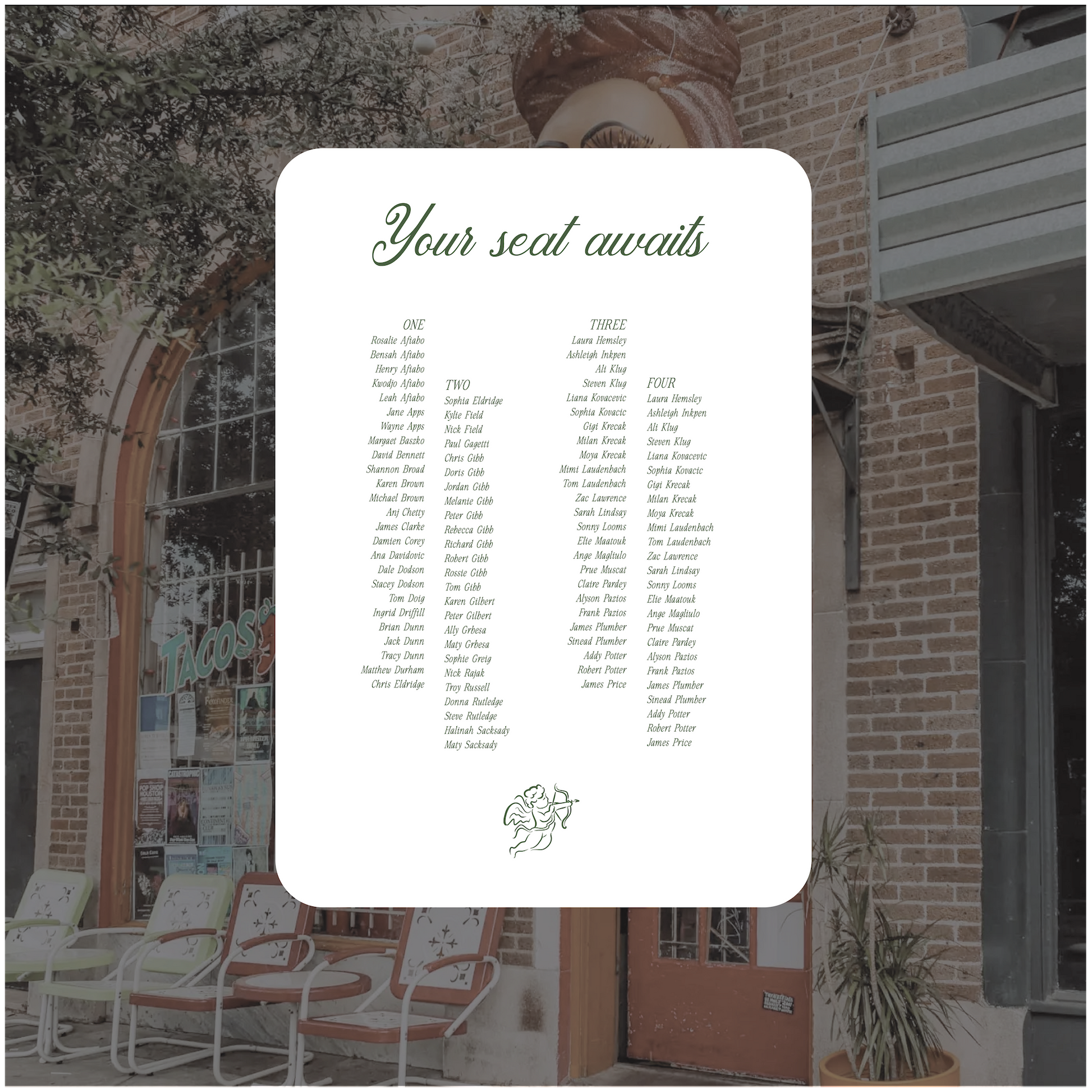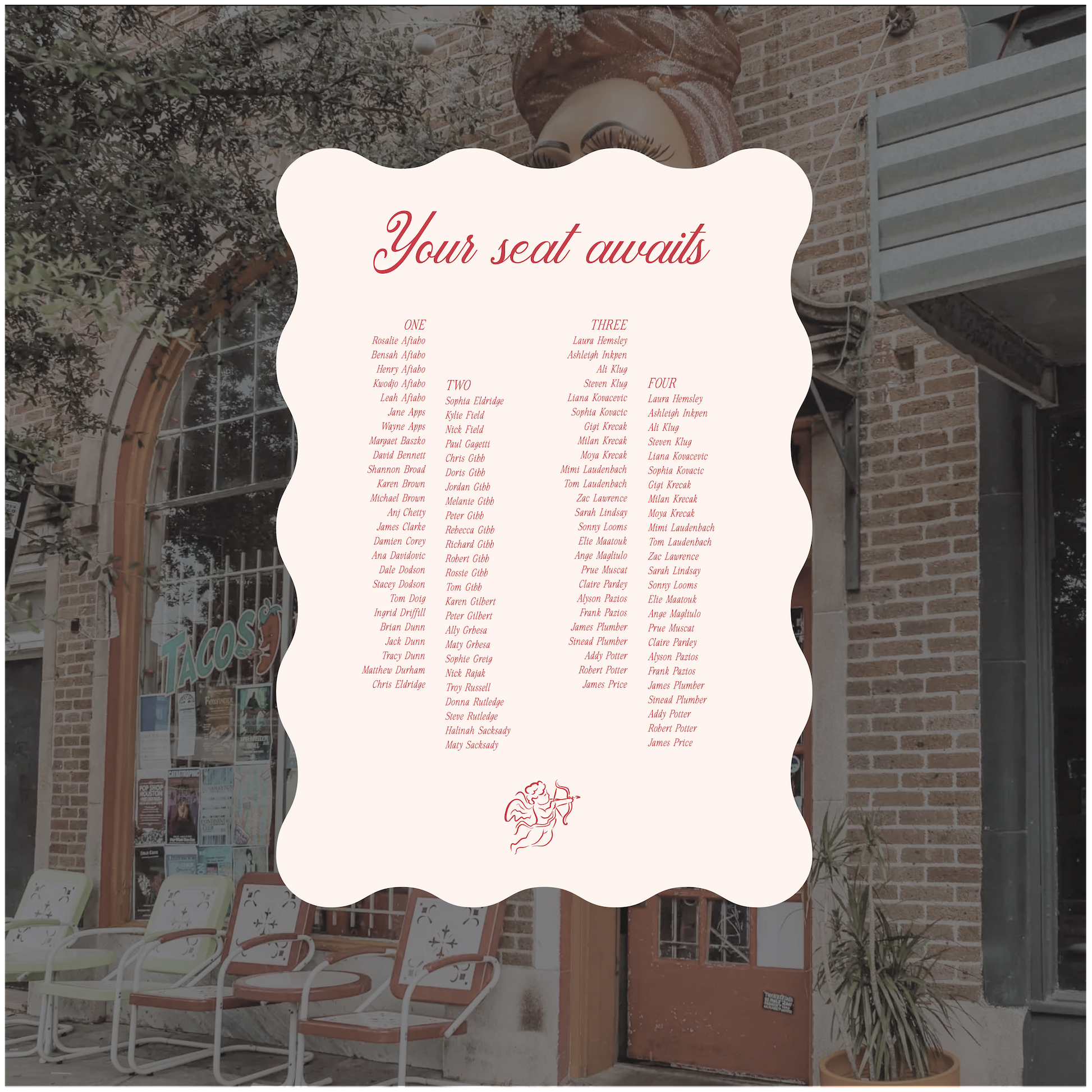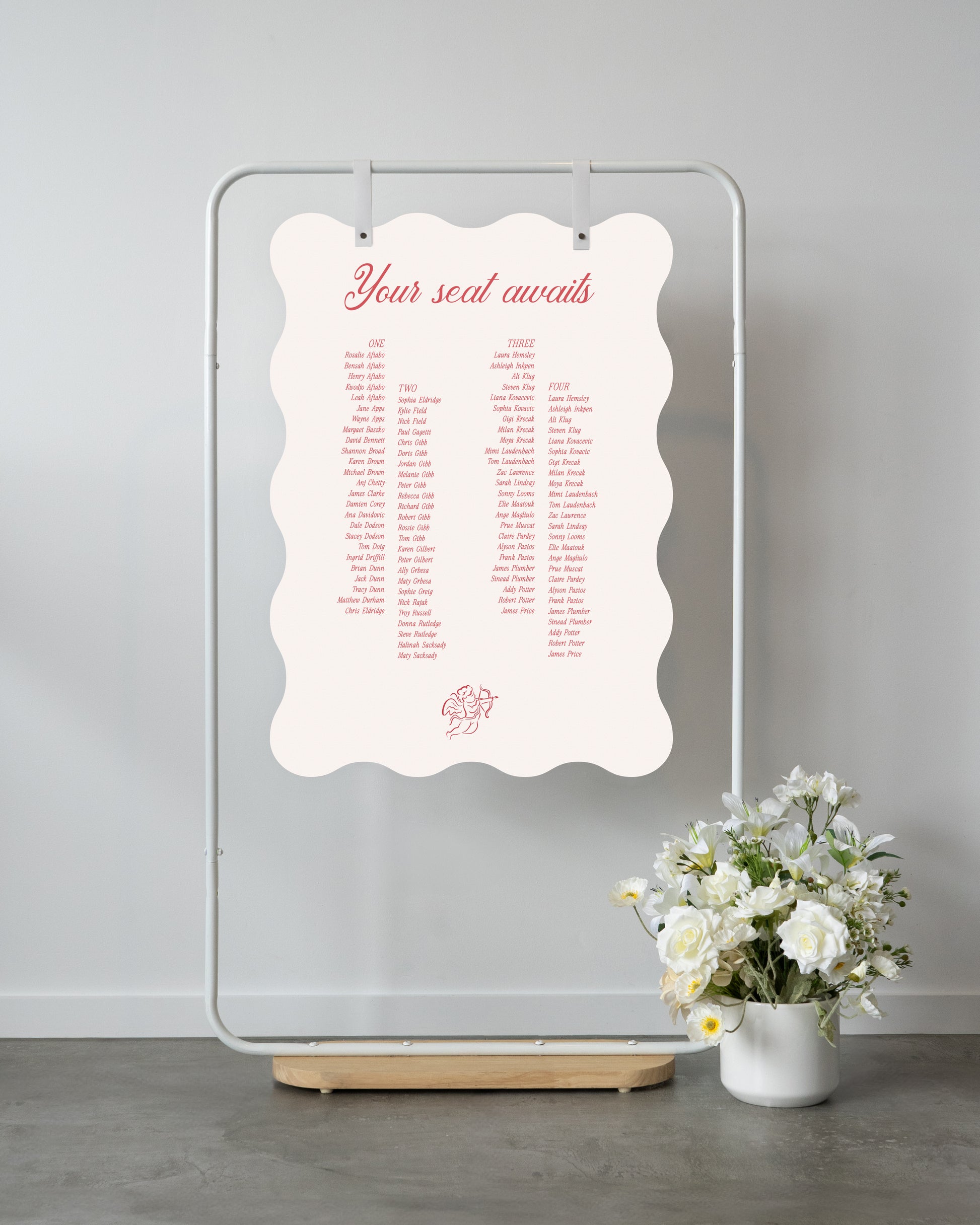 For all seating charts we require you to use our excel template for your guests names and table allocation. This can either be emailed to us after placing the order or within the timeframes provided.