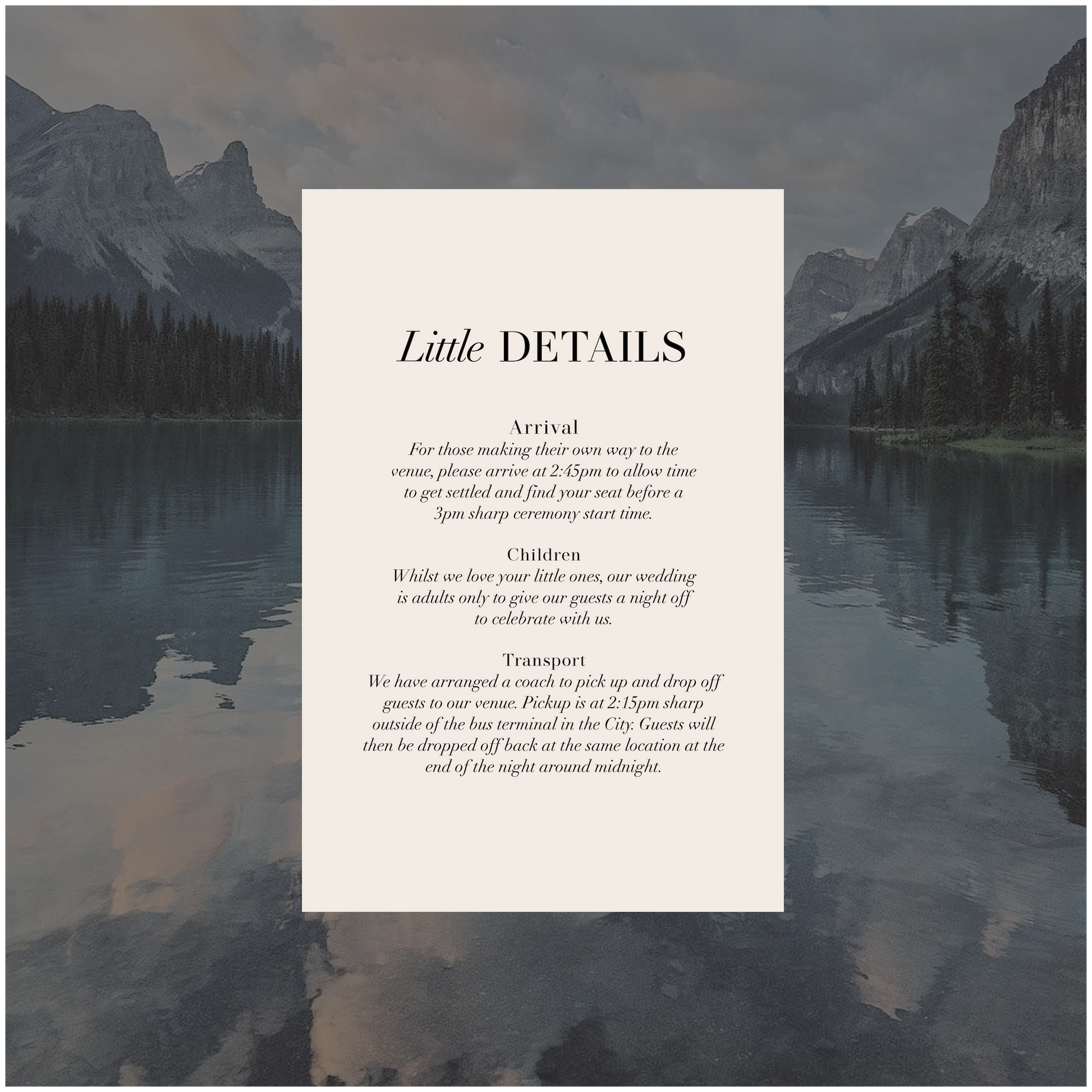 • We always recommend ordering extra invites for those 'maybe' guests, keepsakes and photography details on the day.