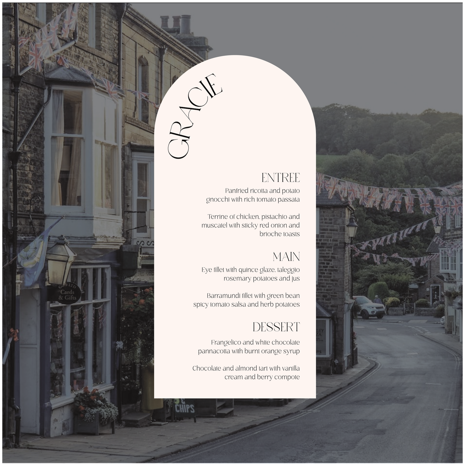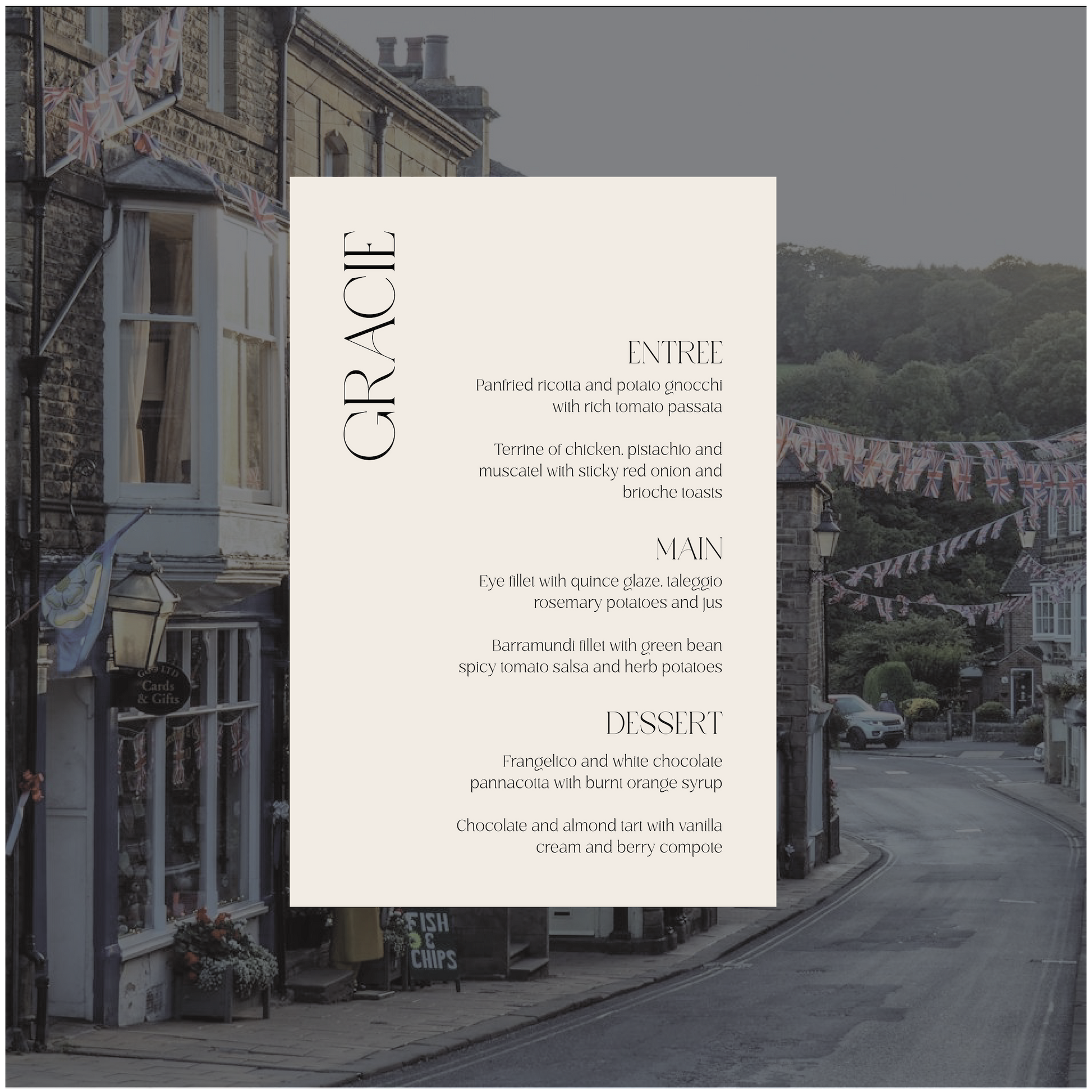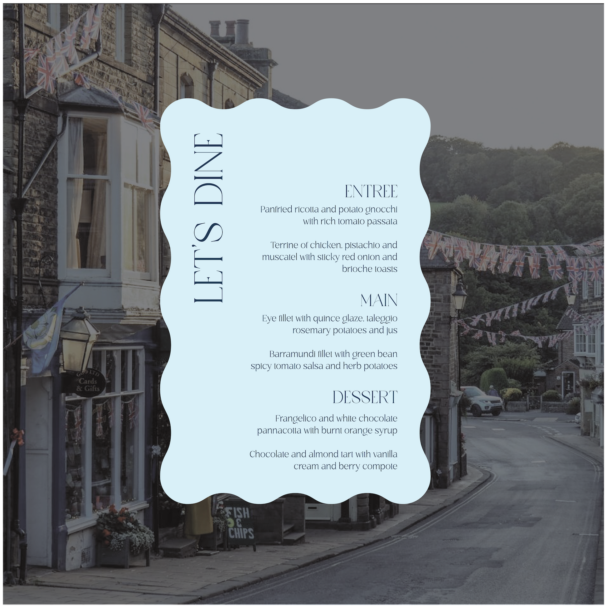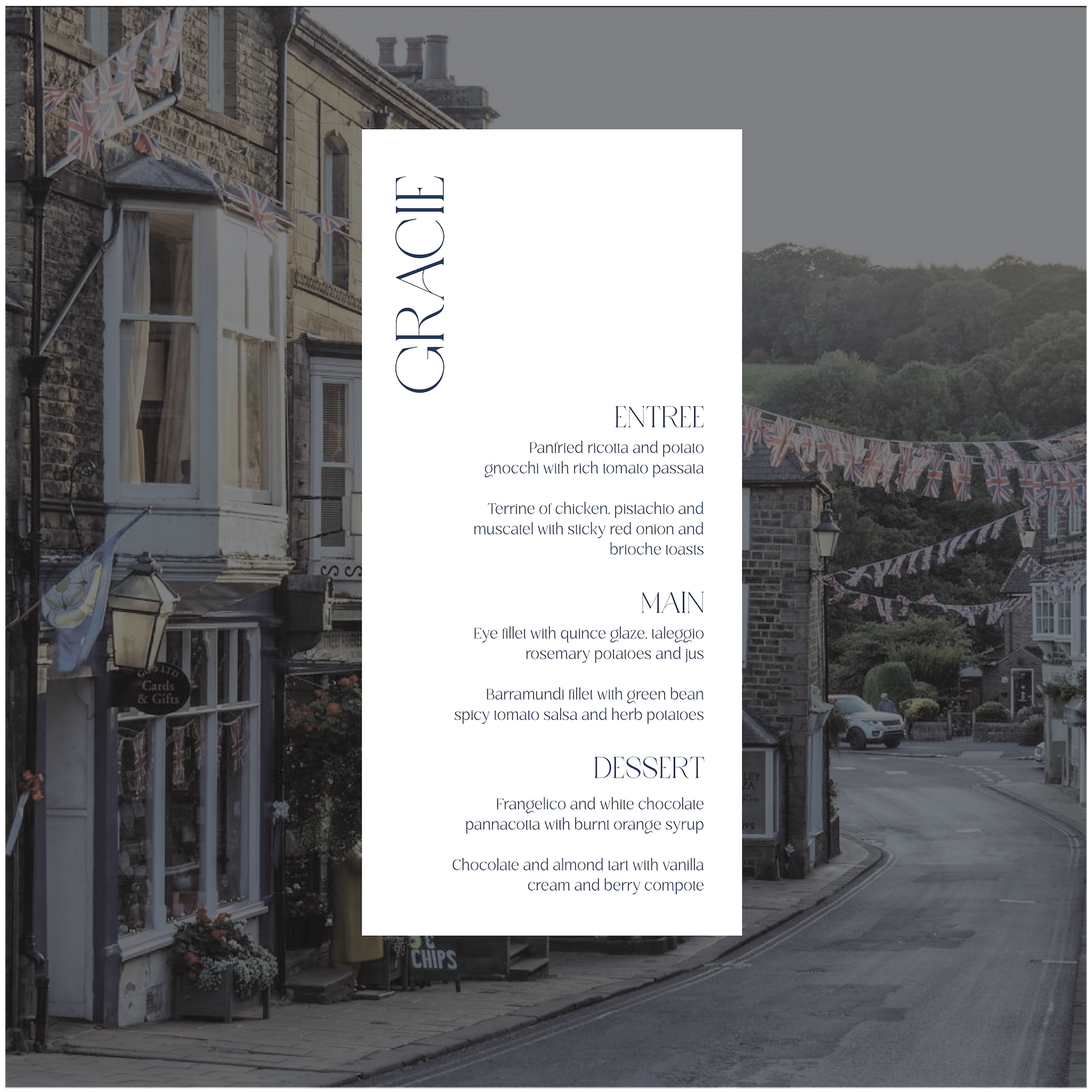 Part of the United Kingdom Collection, this menu is a timeless classic with a subtle modern twist.
