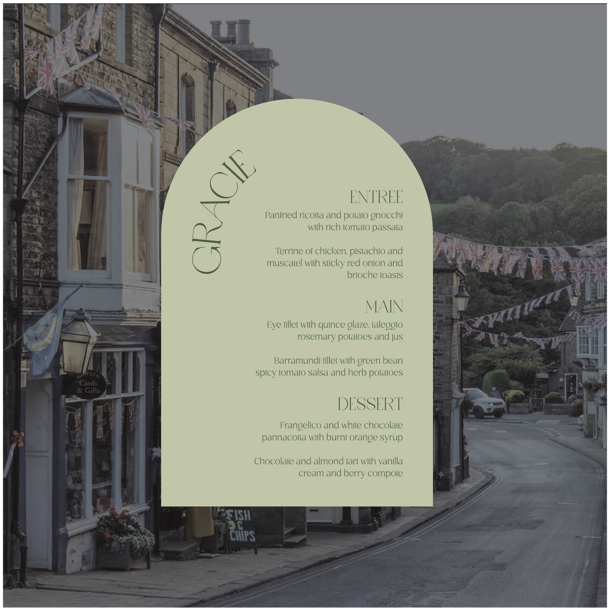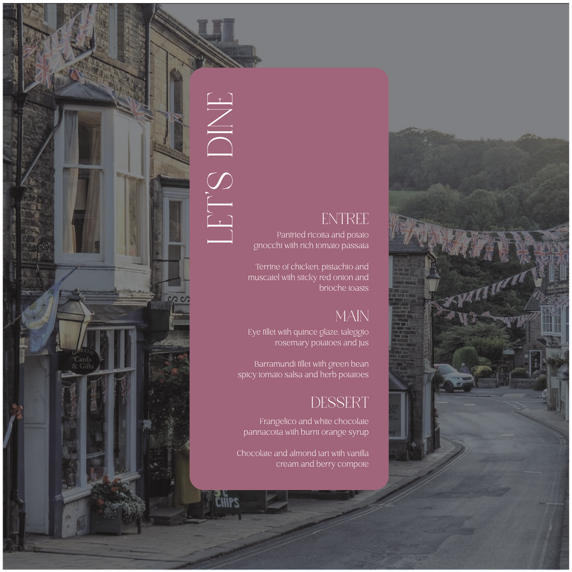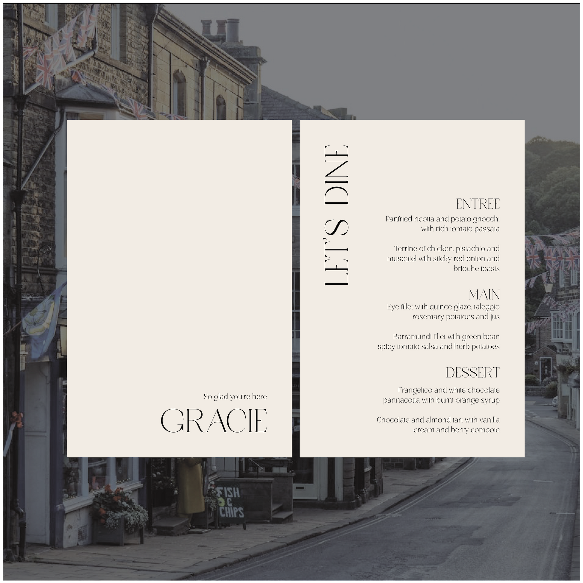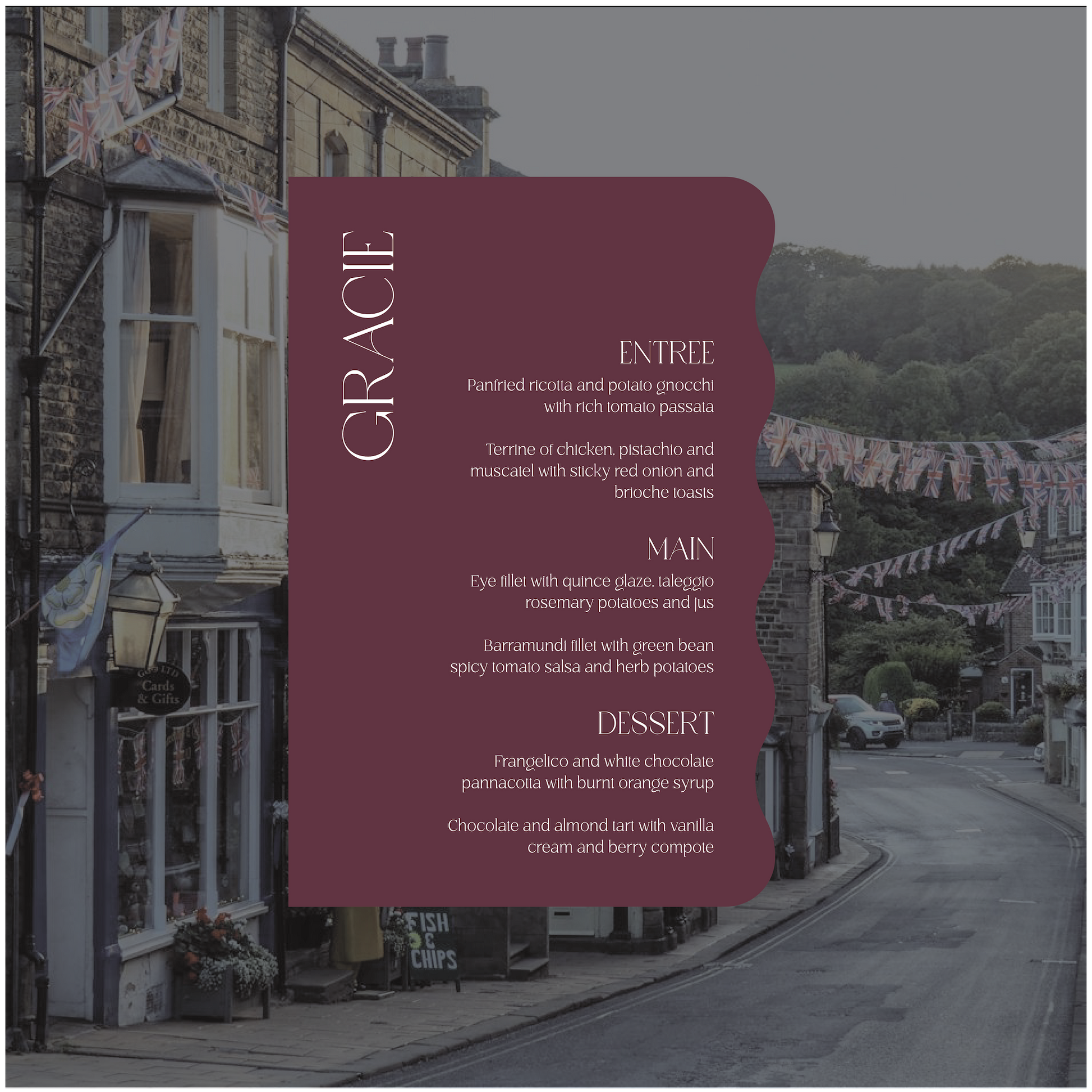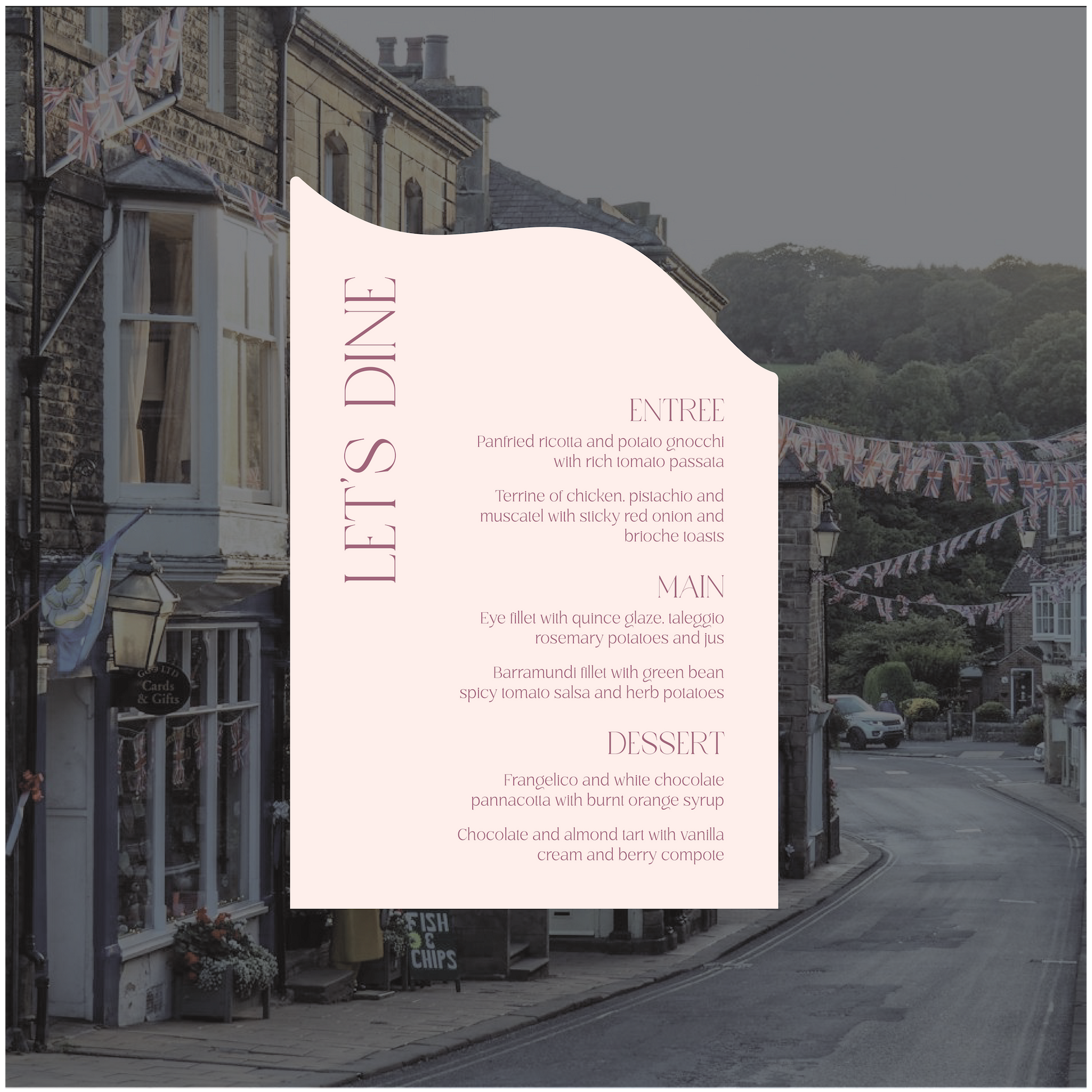 Part of the United Kingdom Collection, this menu is a timeless classic with a subtle modern twist.
