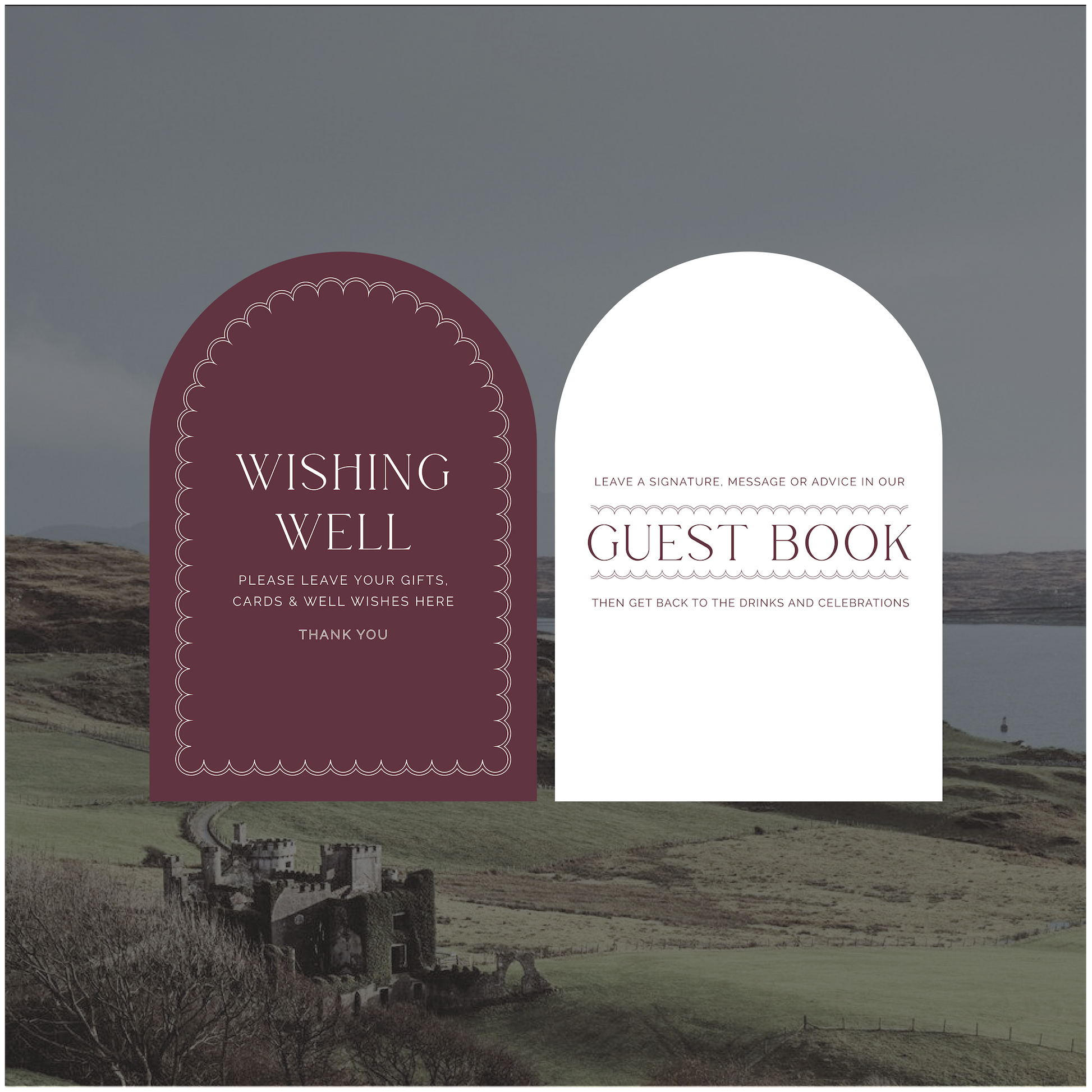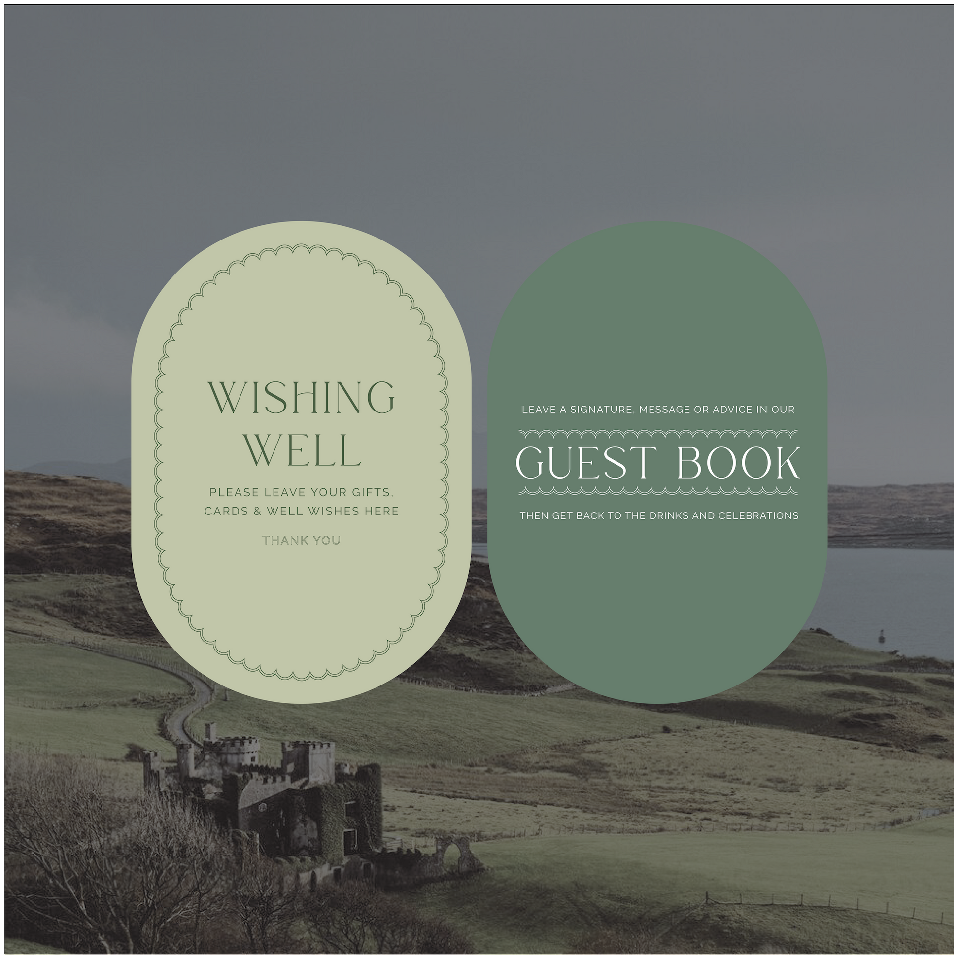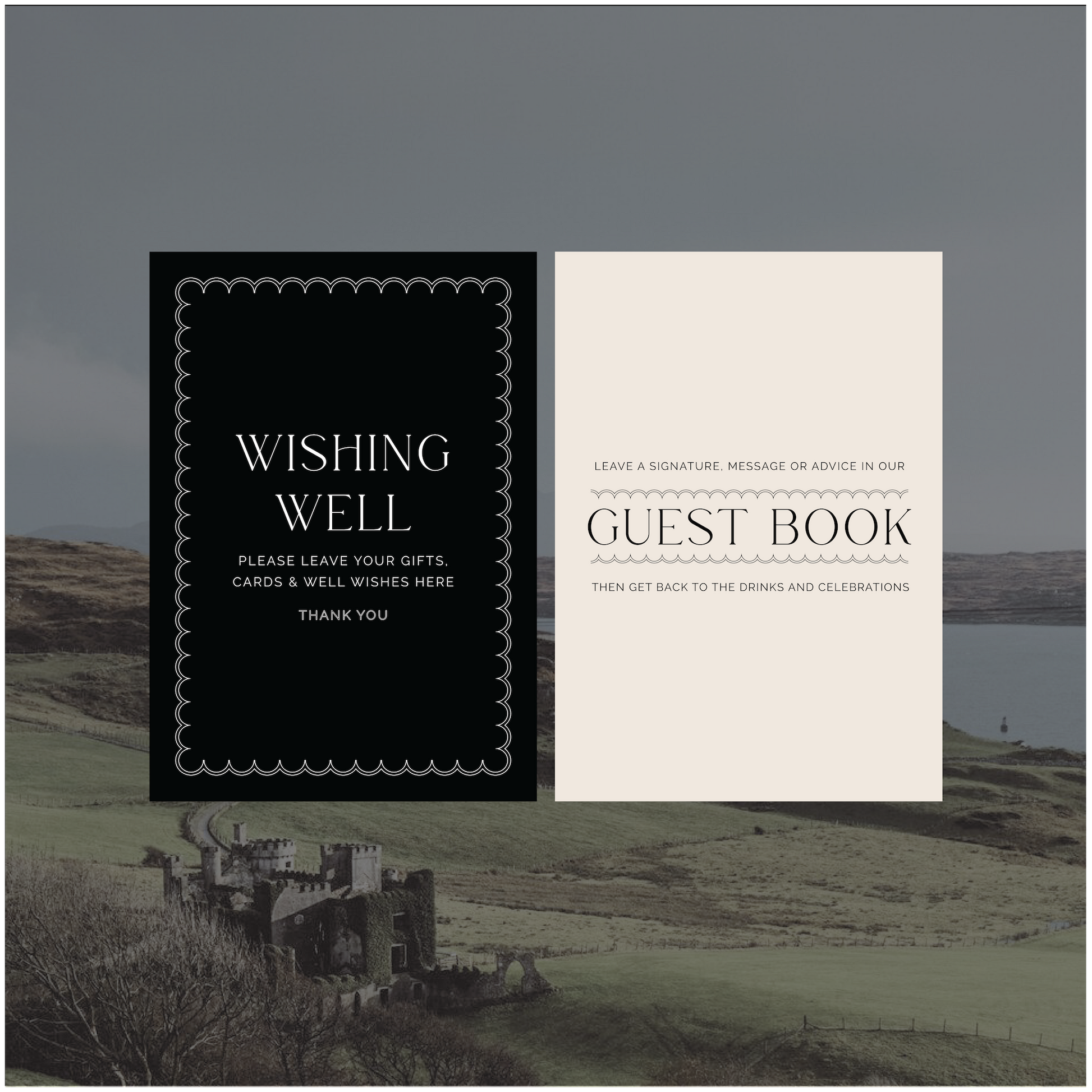 Part of the Ireland Collection, these small signs are a timeless classic with a little bit of edge. Featuring a scalloped border to mimic a four leaf clover curved shape with matching outlined font details.