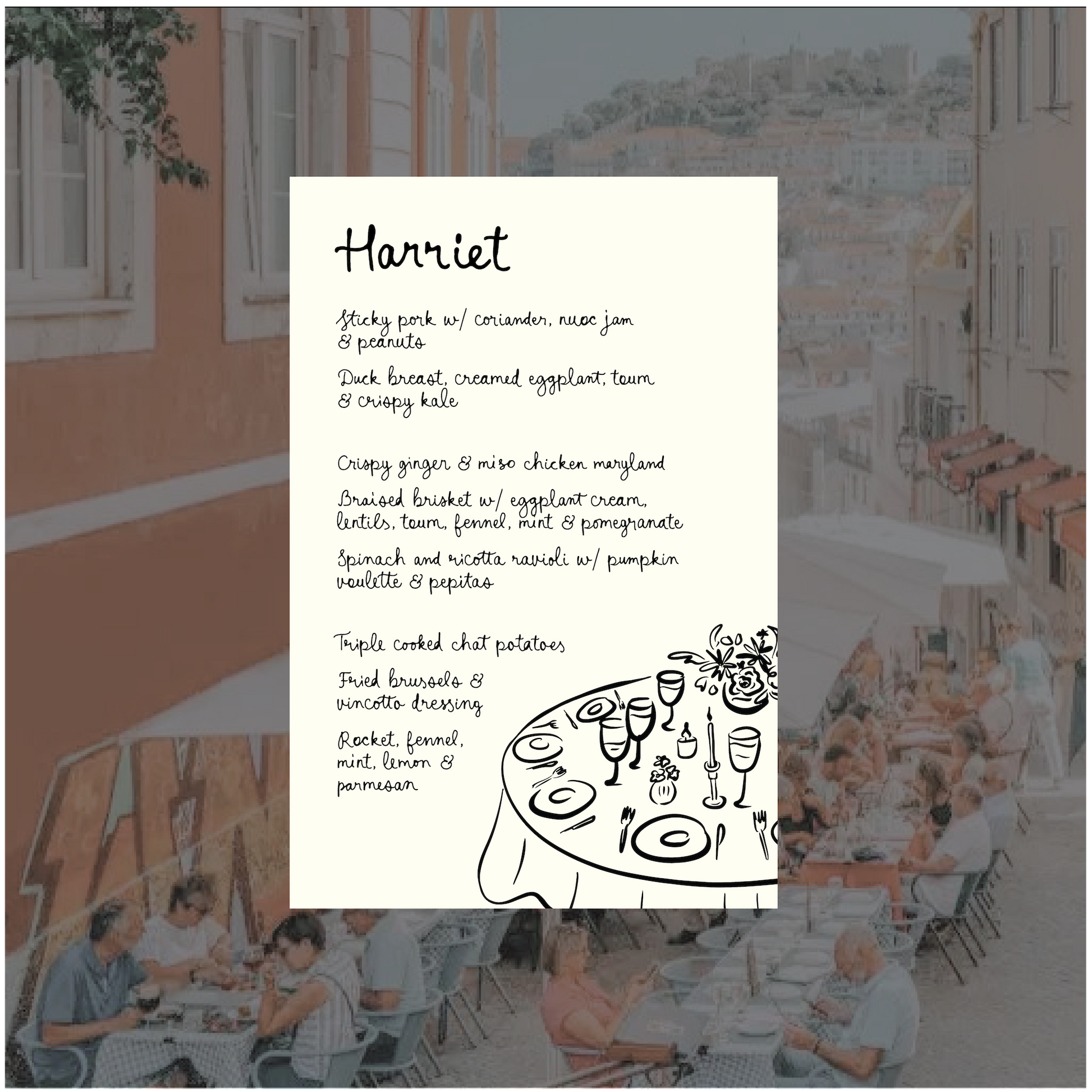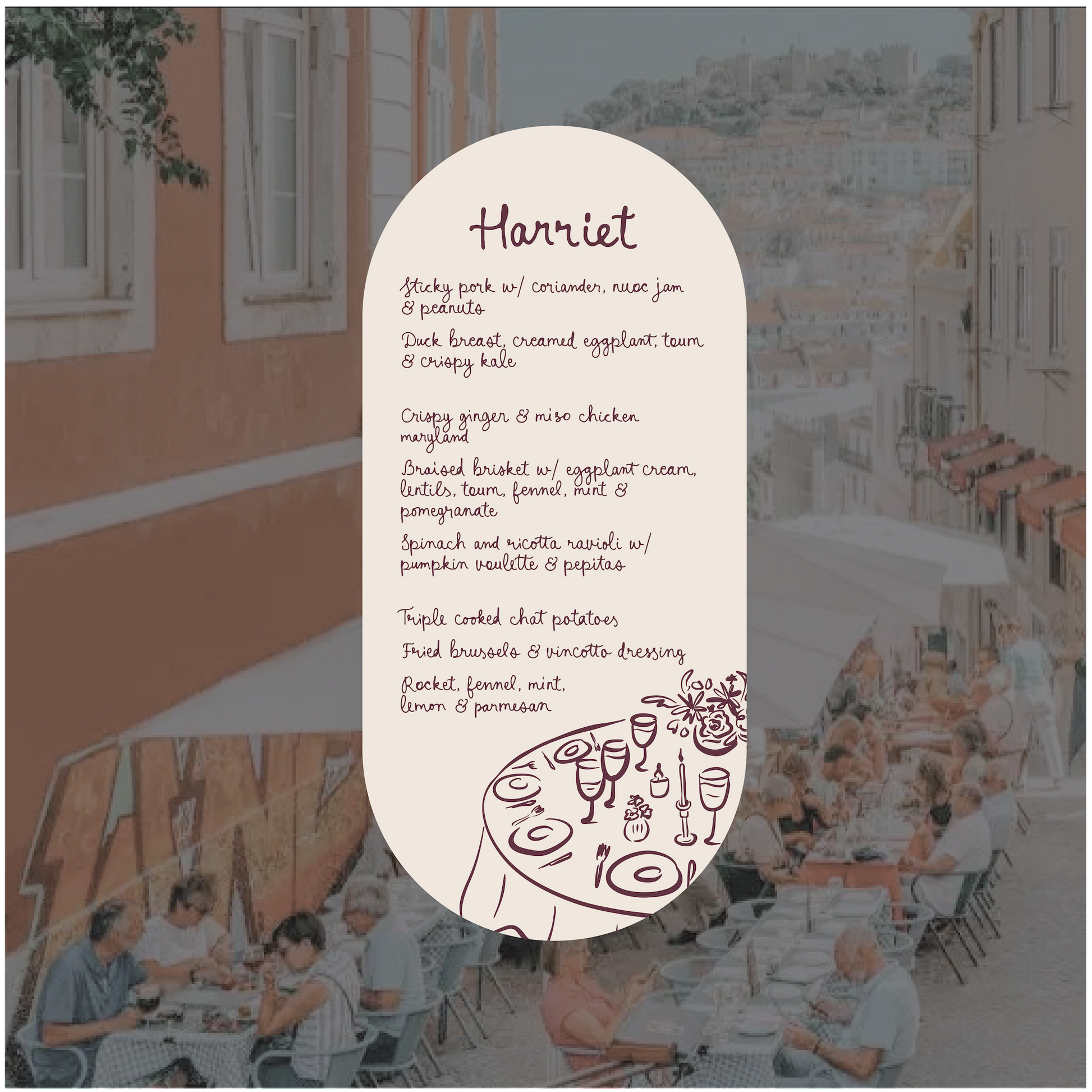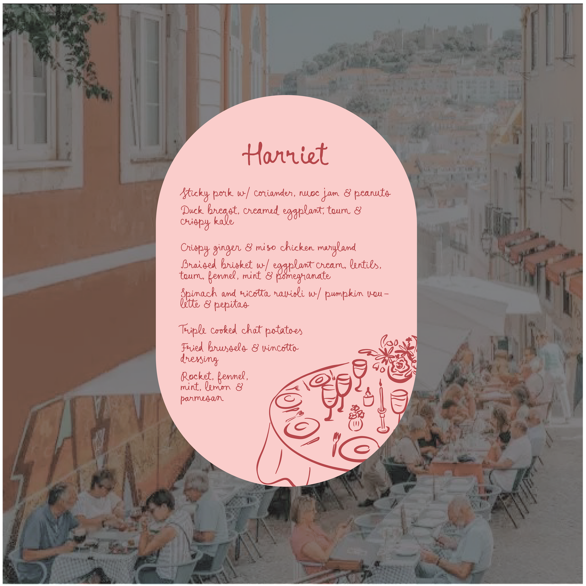 • We always recommend ordering extra menus for those 'maybe' guests, keepsakes and photography details on the day.