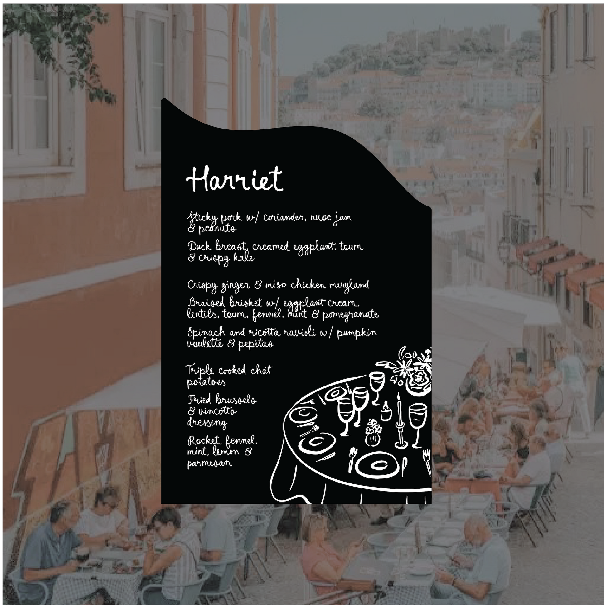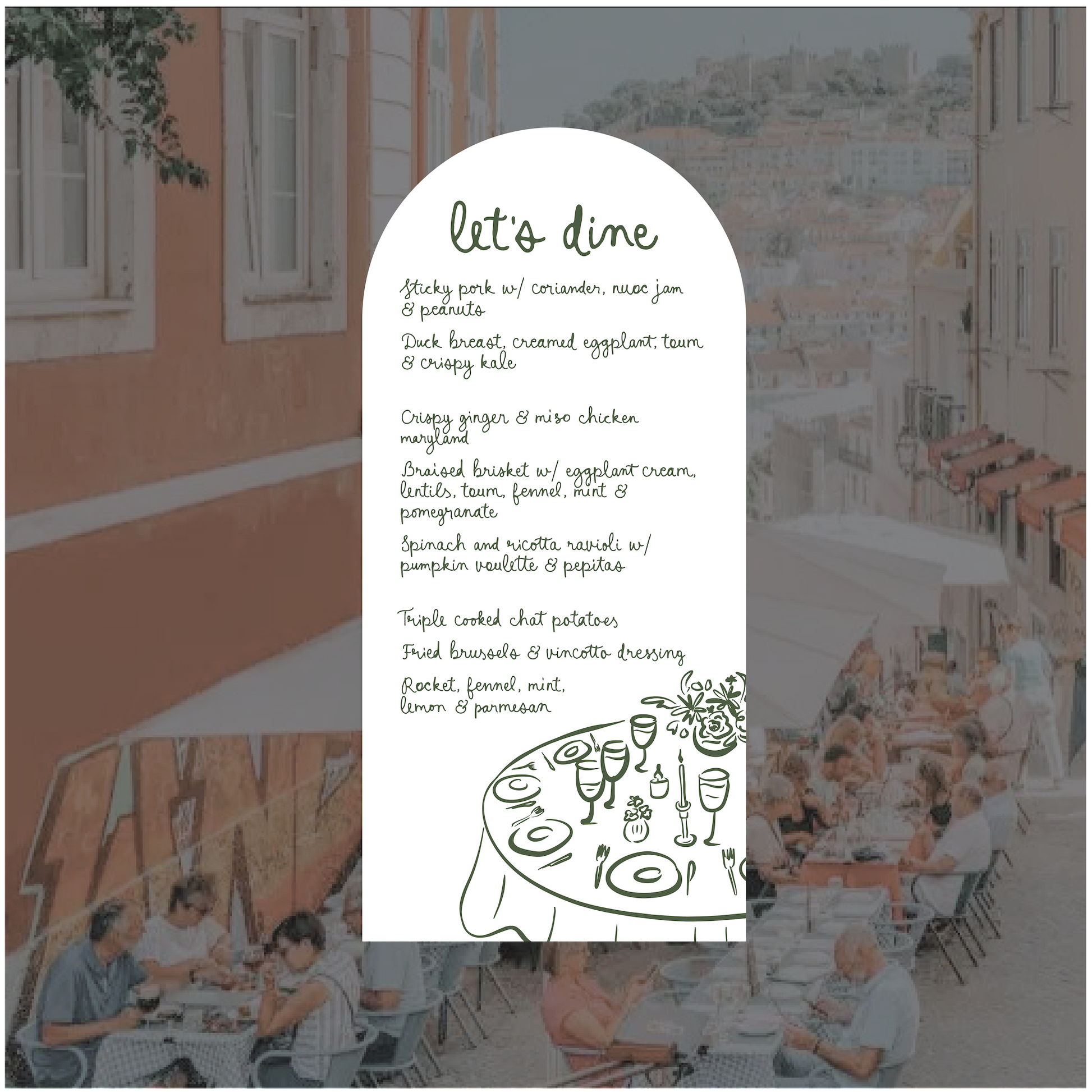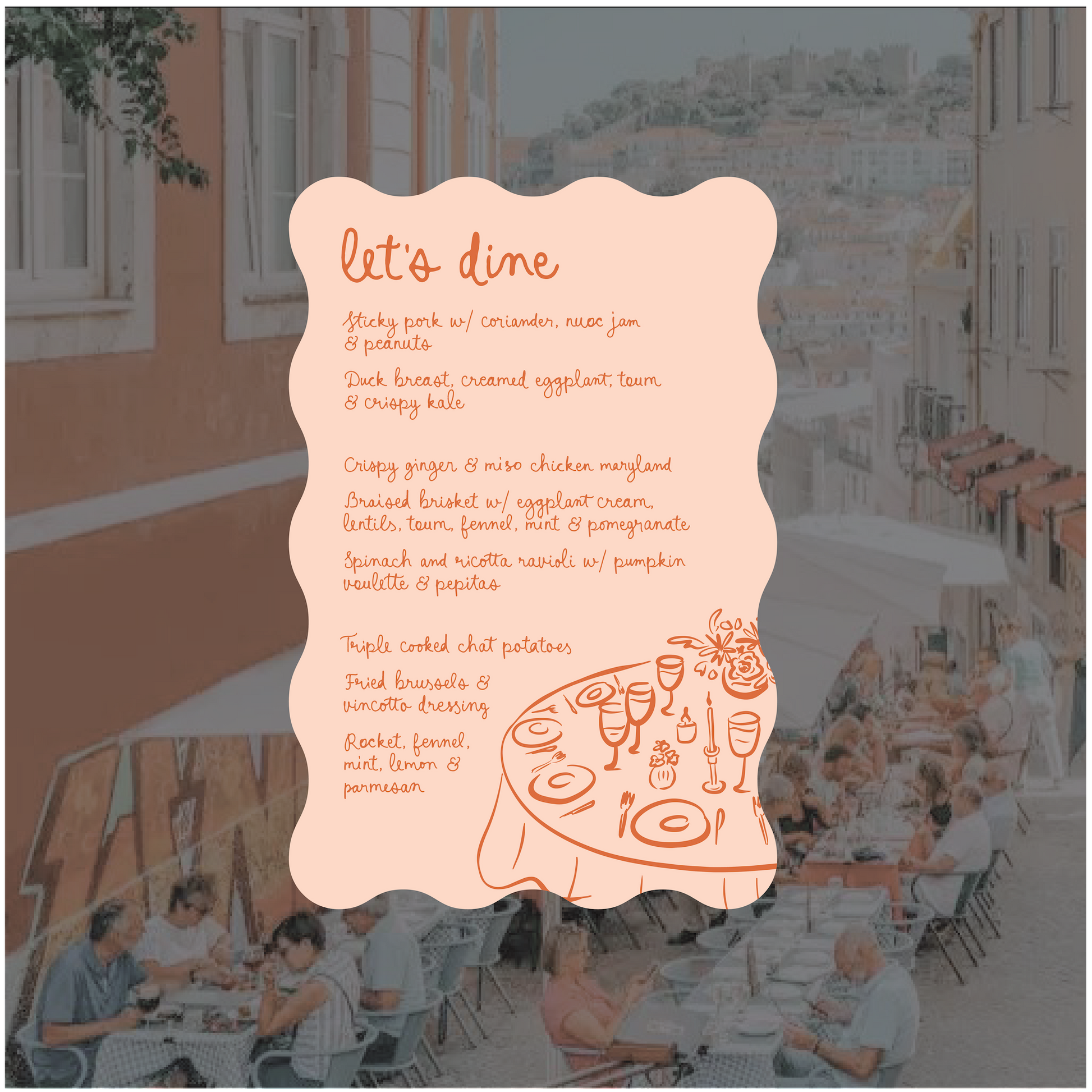 Part of the Portugal Collection, this menu is a fun modern piece with handwritten fonts and playful illustrations.