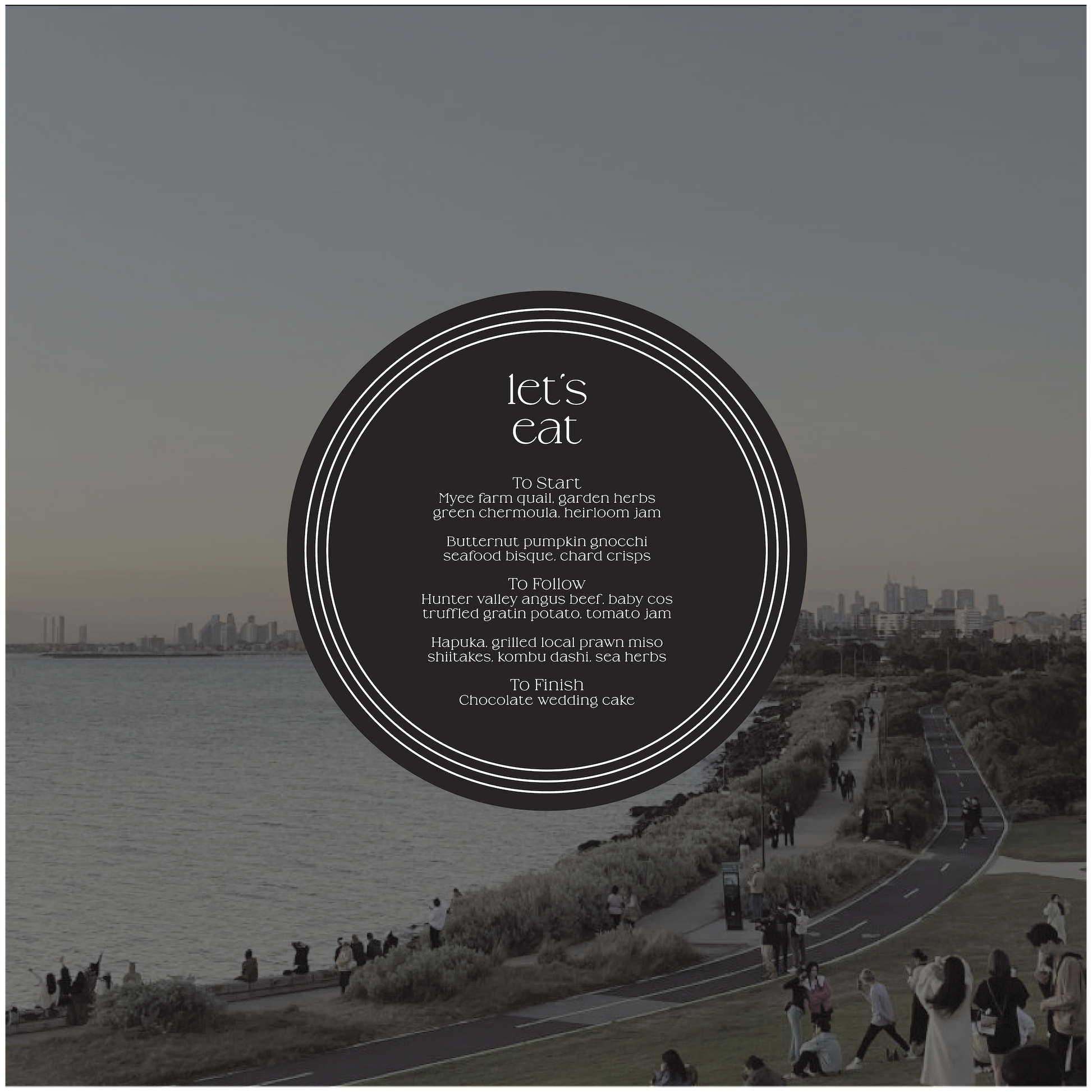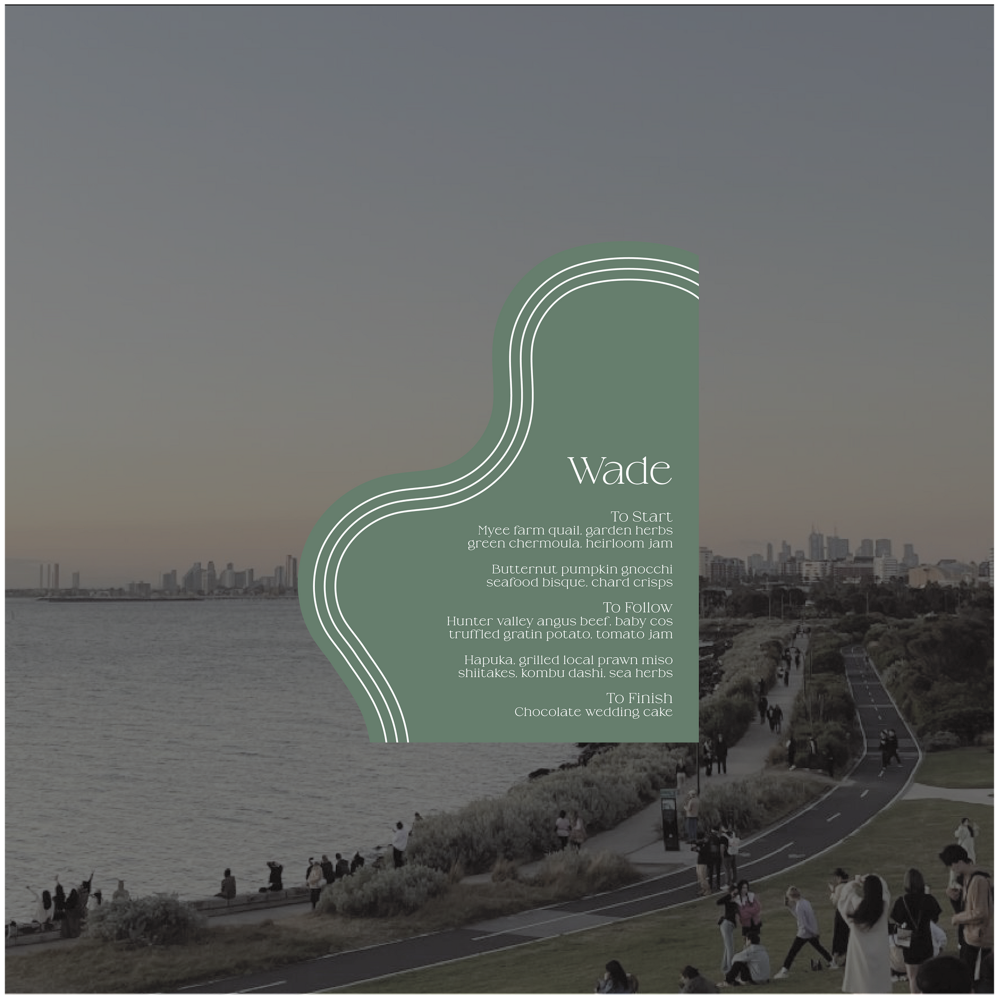 Part of the Australia collection, this menu has gorgeous wave line elements that run from the top of the design down the page, creating natural framed curves around the text.