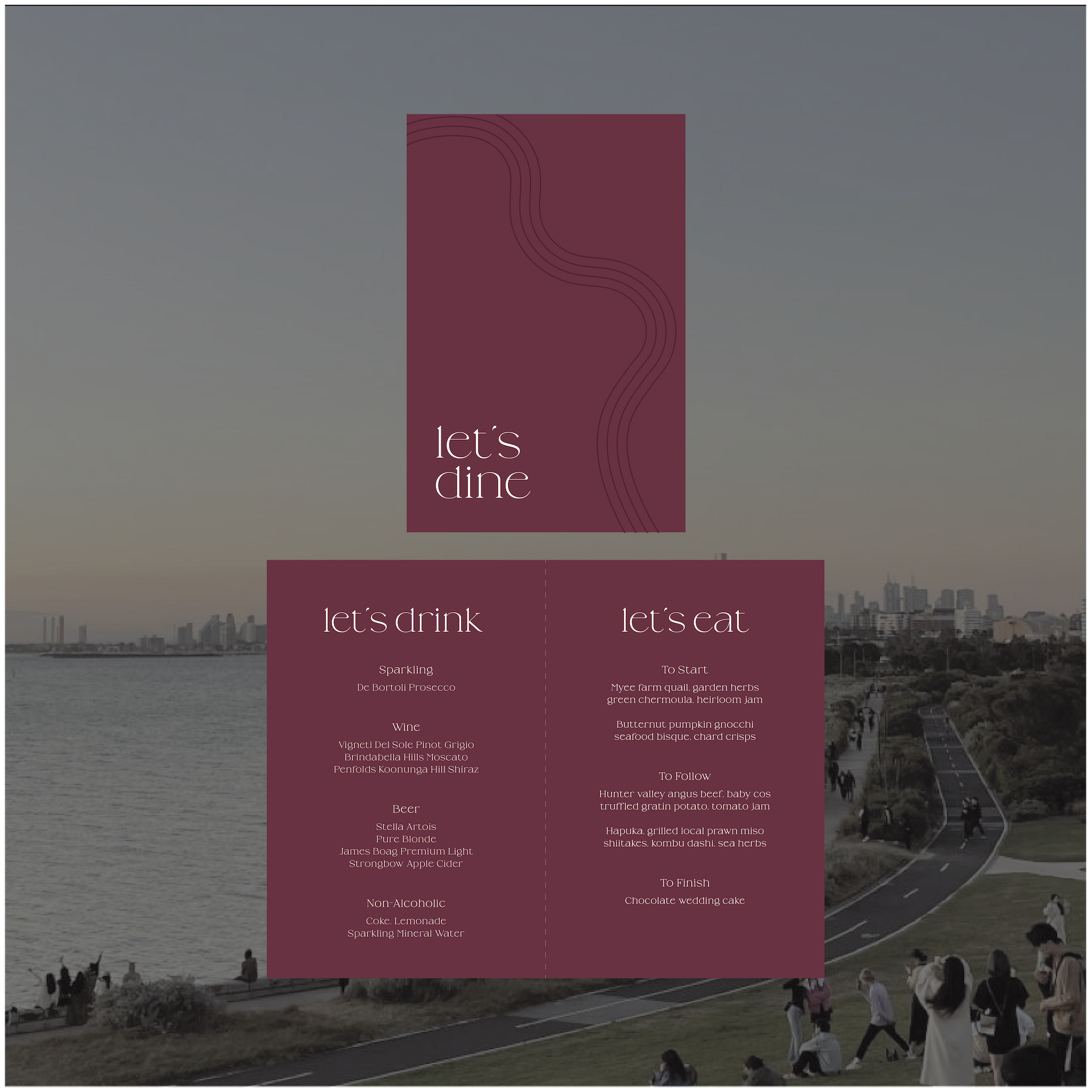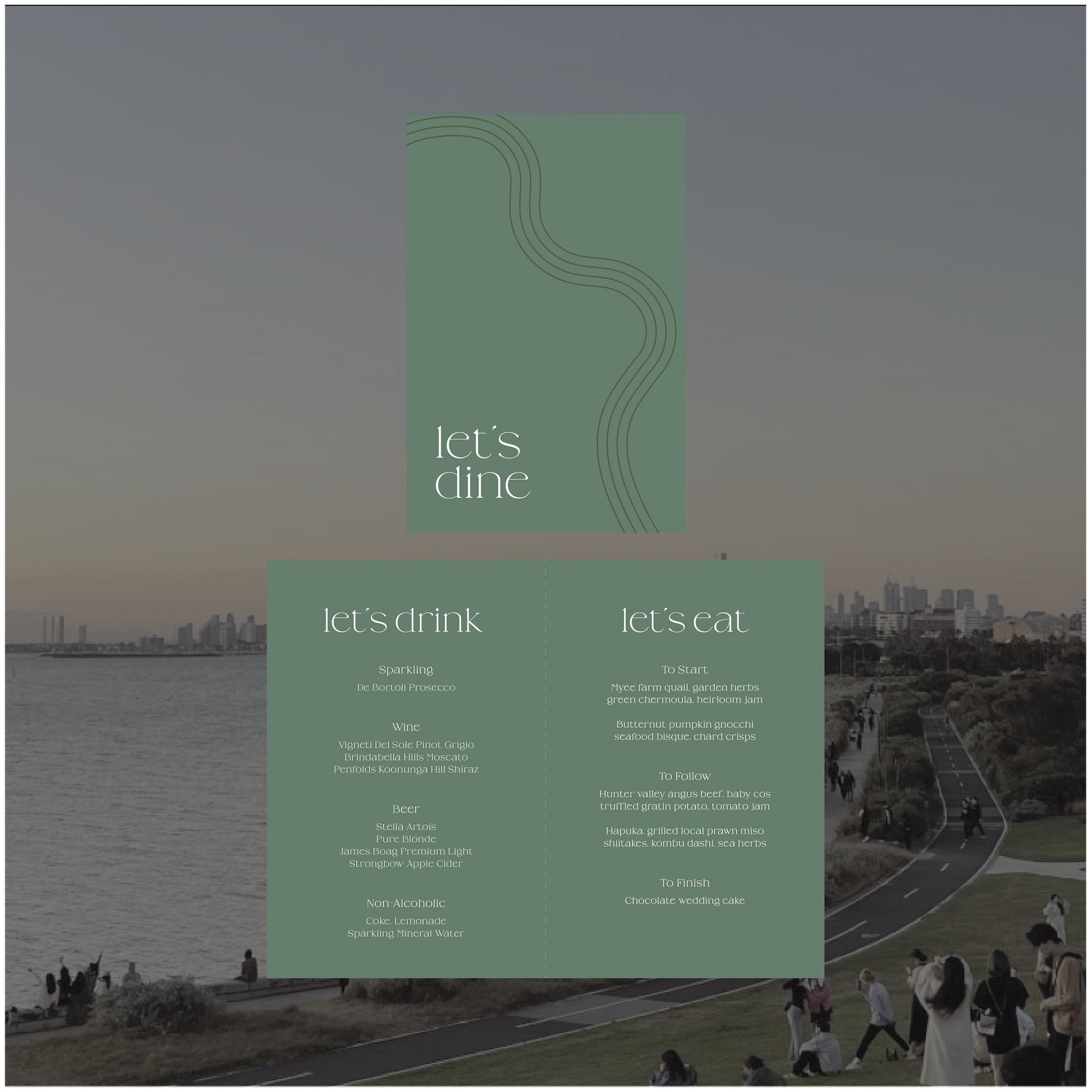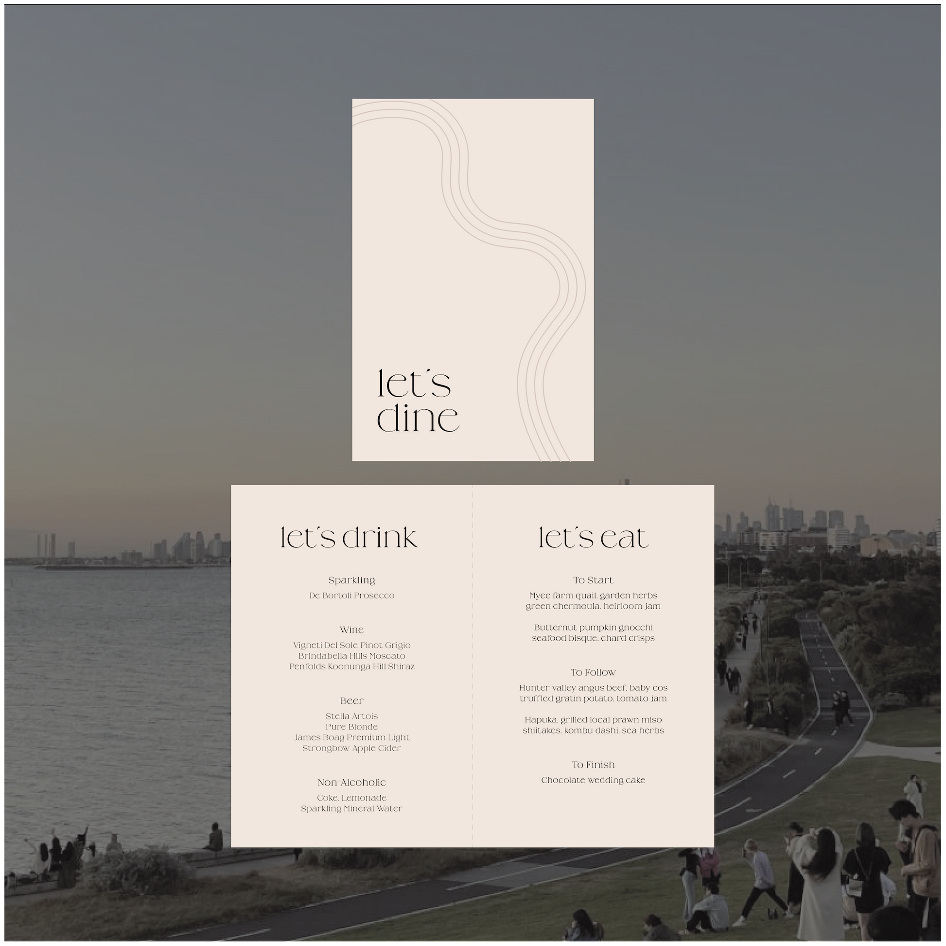 Part of the Australia collection, this standing table menu has gorgeous wave line elements that run from the top of the design down the page, creating natural framed curves around the text.