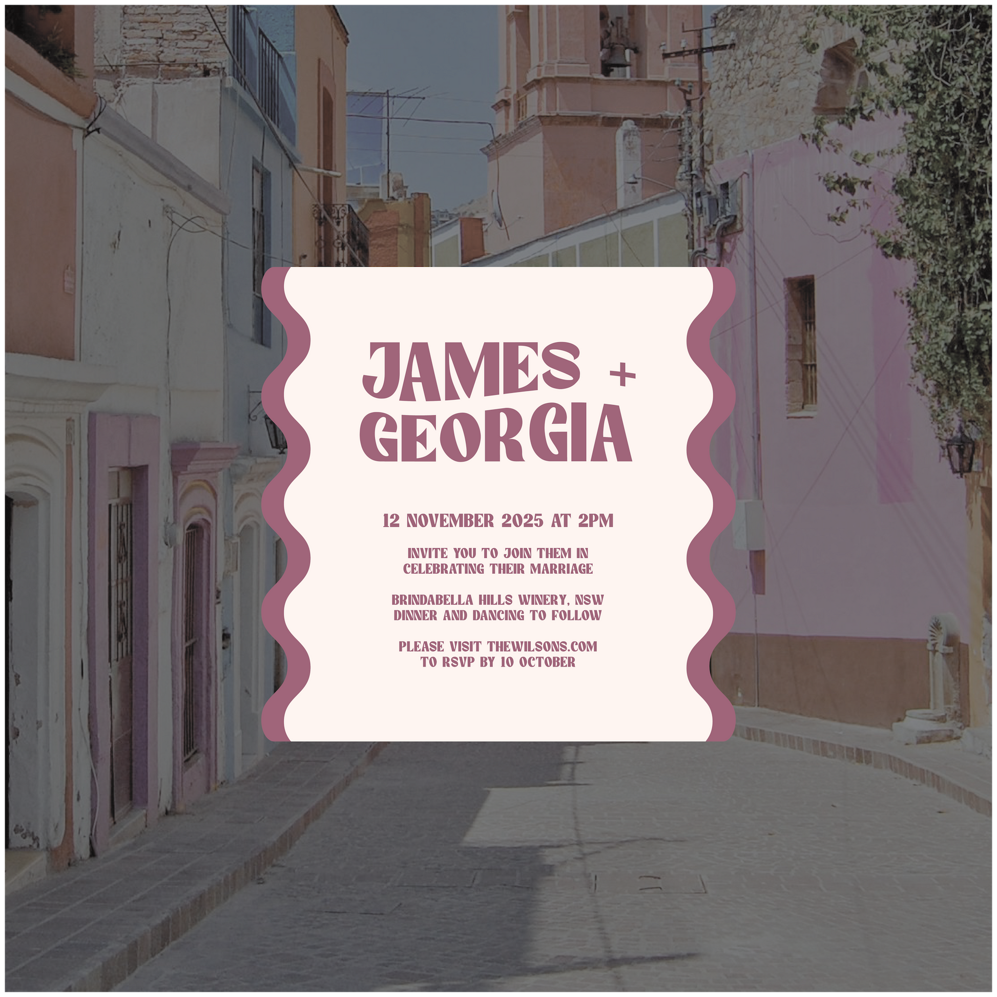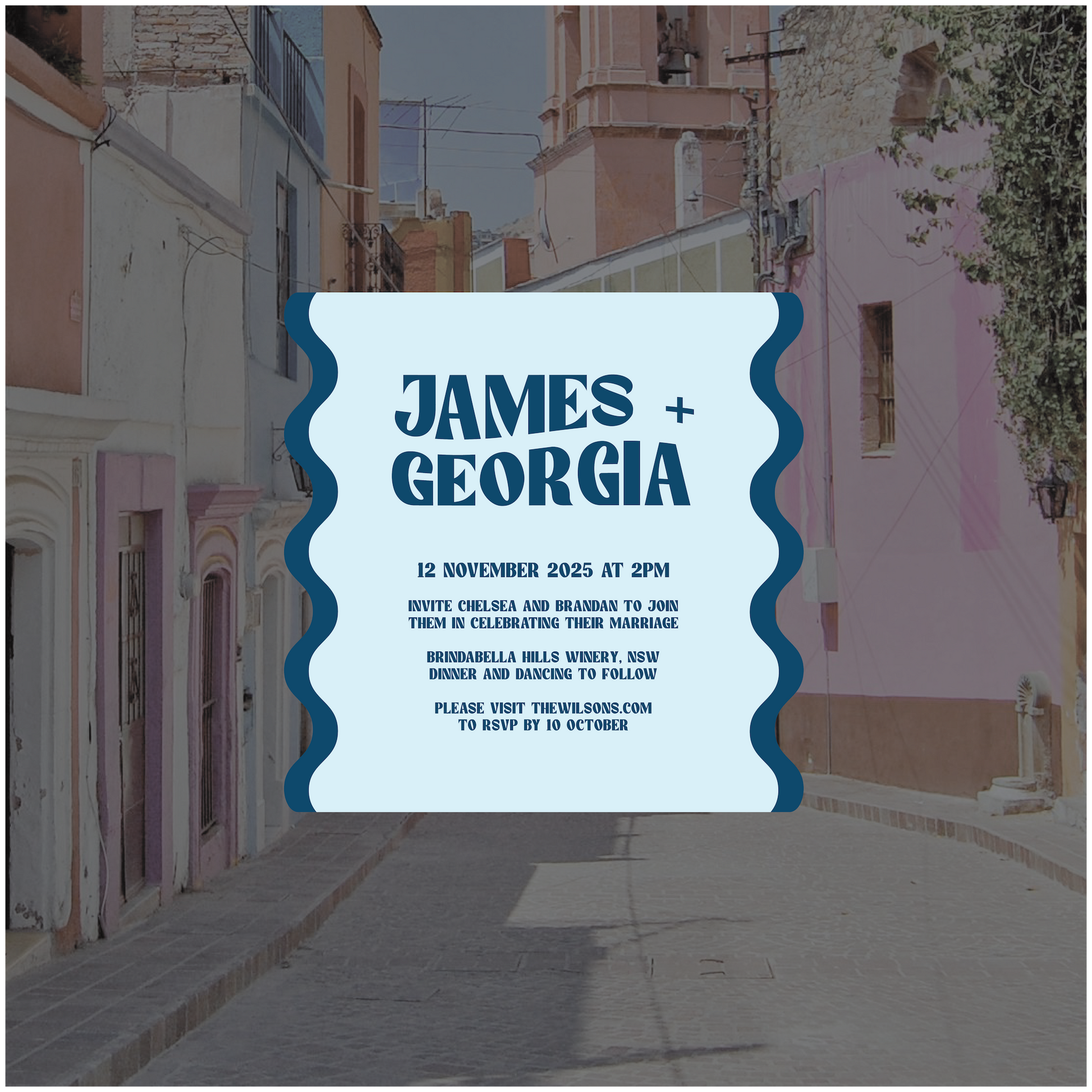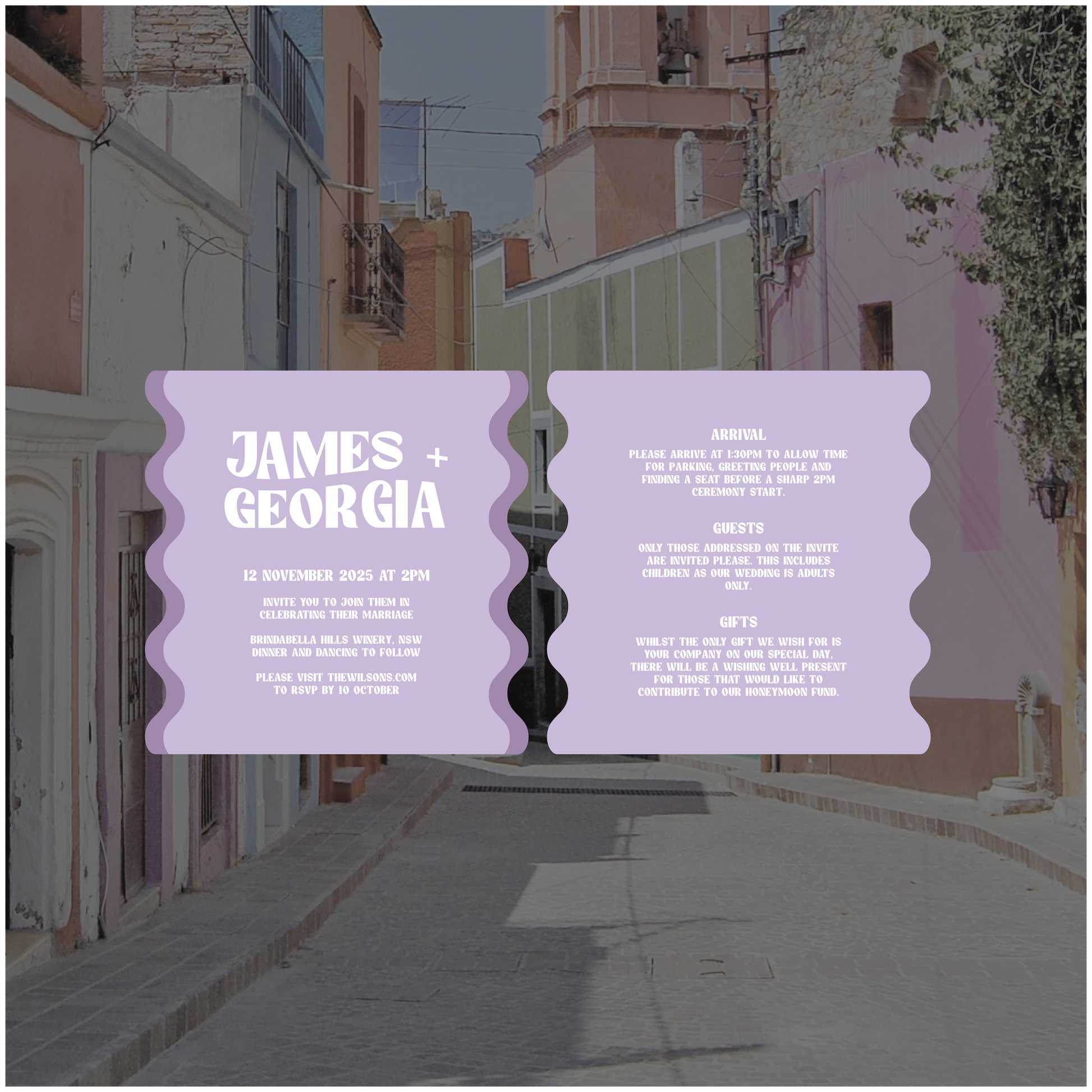 • 140 x 140 mm flat wave card invite. Single sided unless the double sided option is selected. This design only comes in this wave shape.
