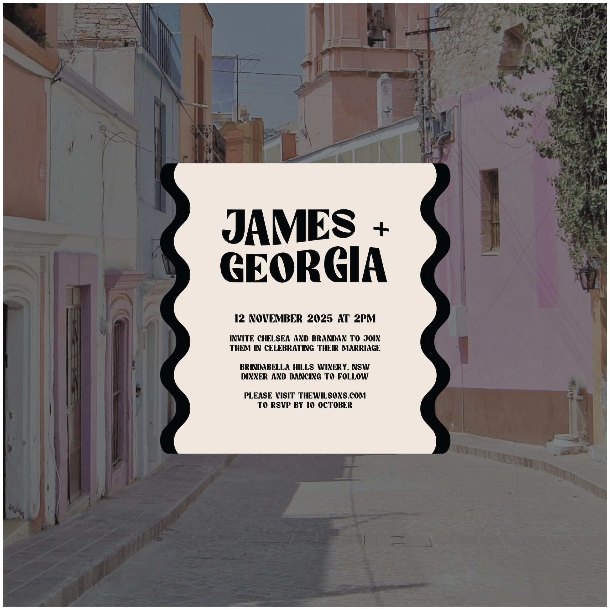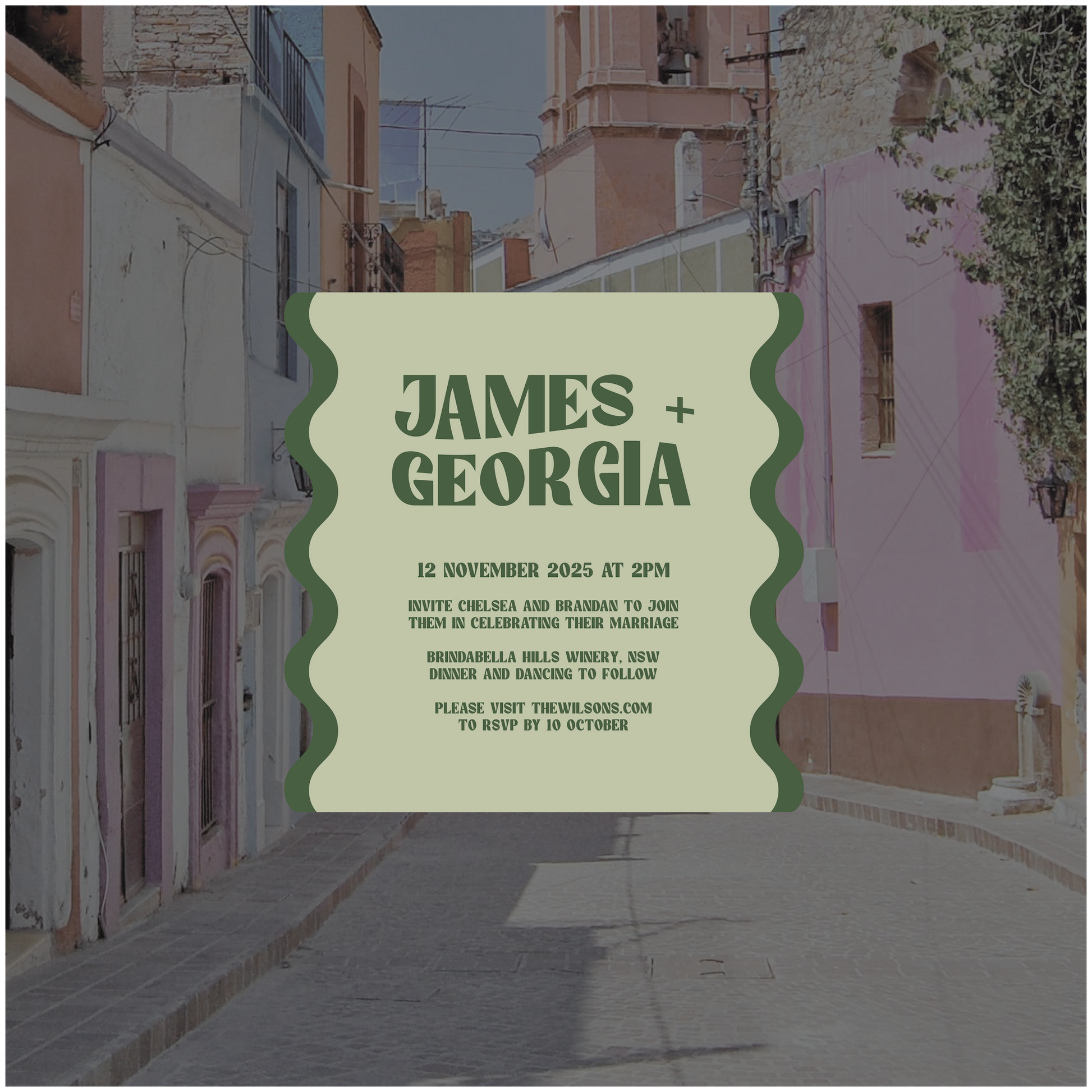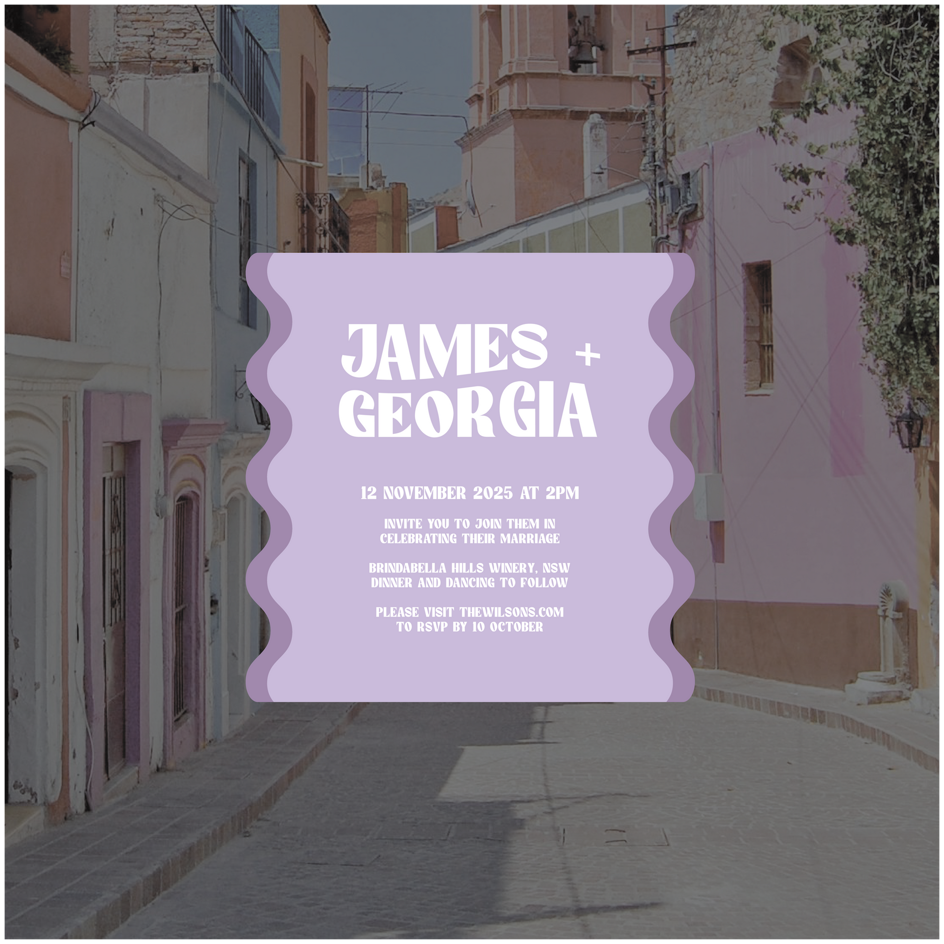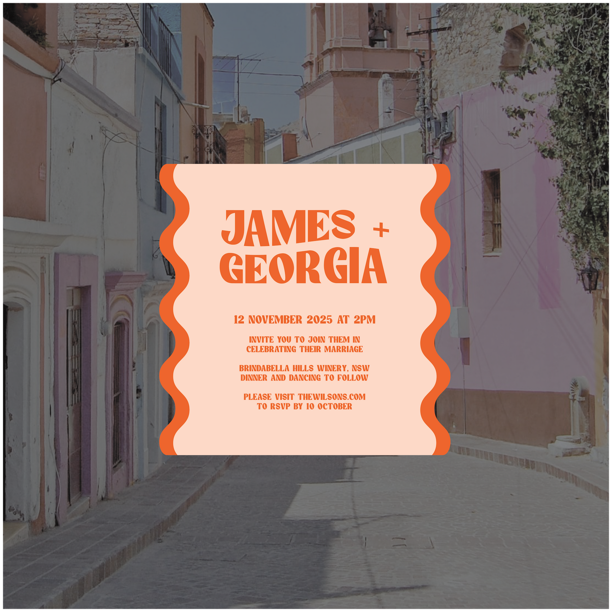 • 140 x 140 mm flat wave card invite. Single sided unless the double sided option is selected. This design only comes in this wave shape.