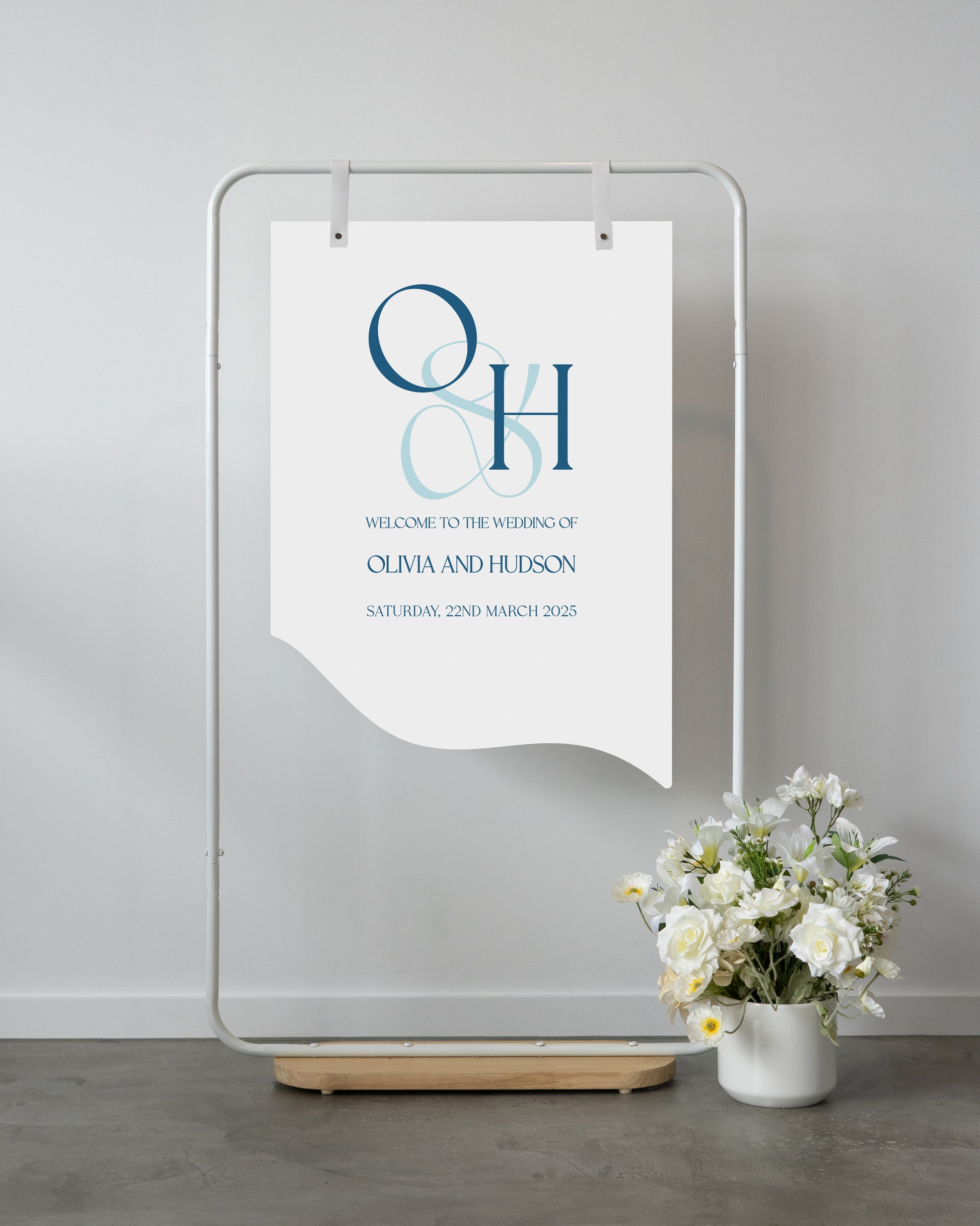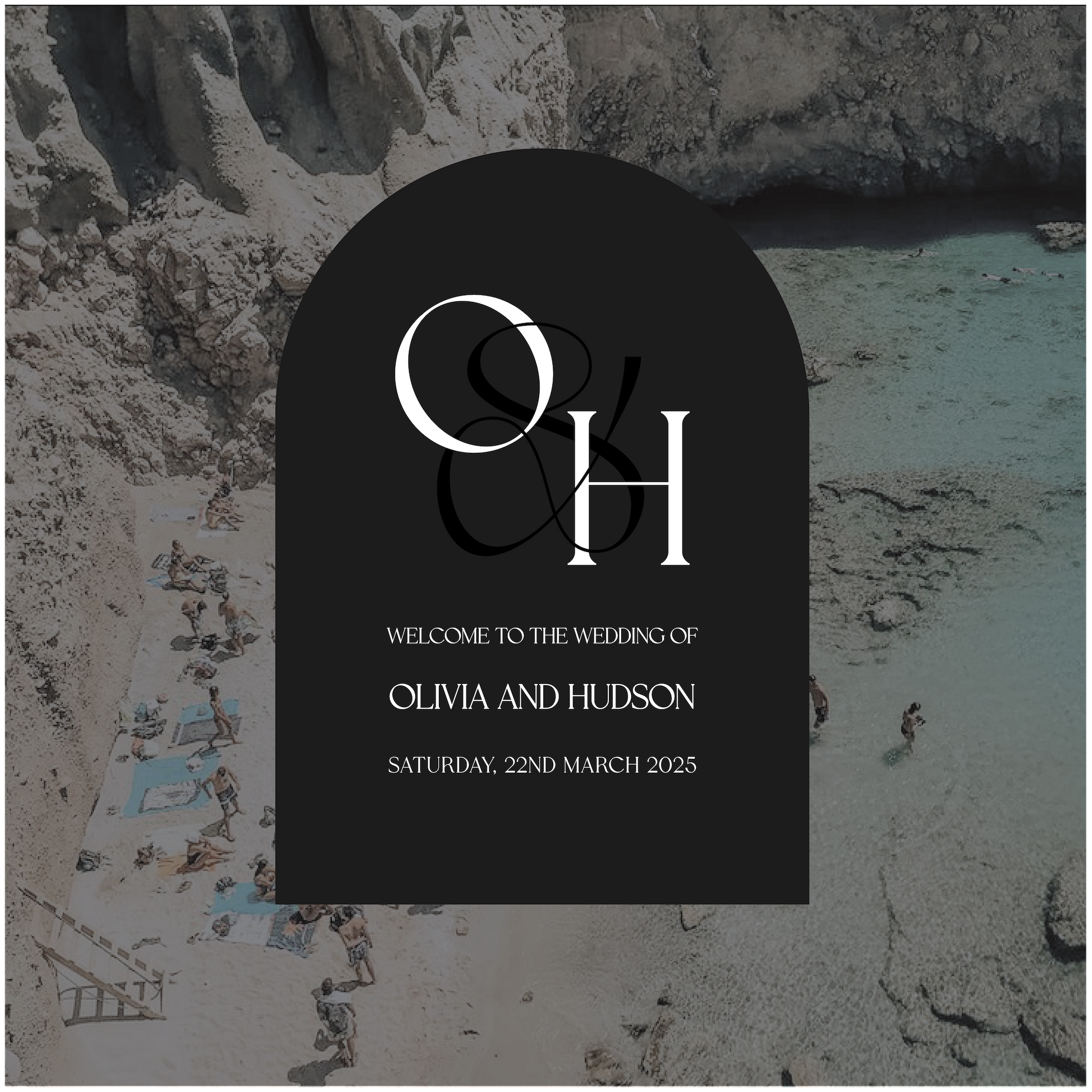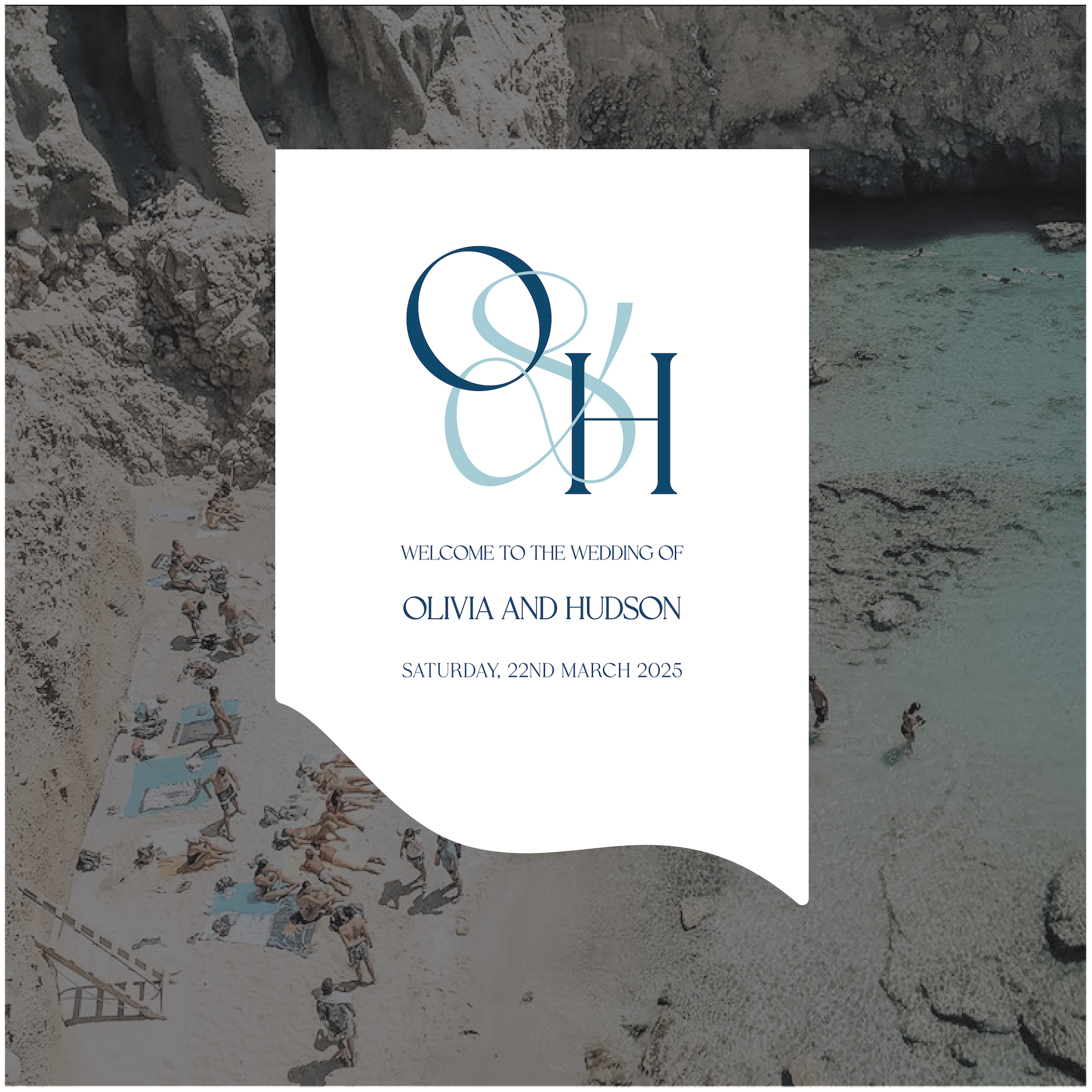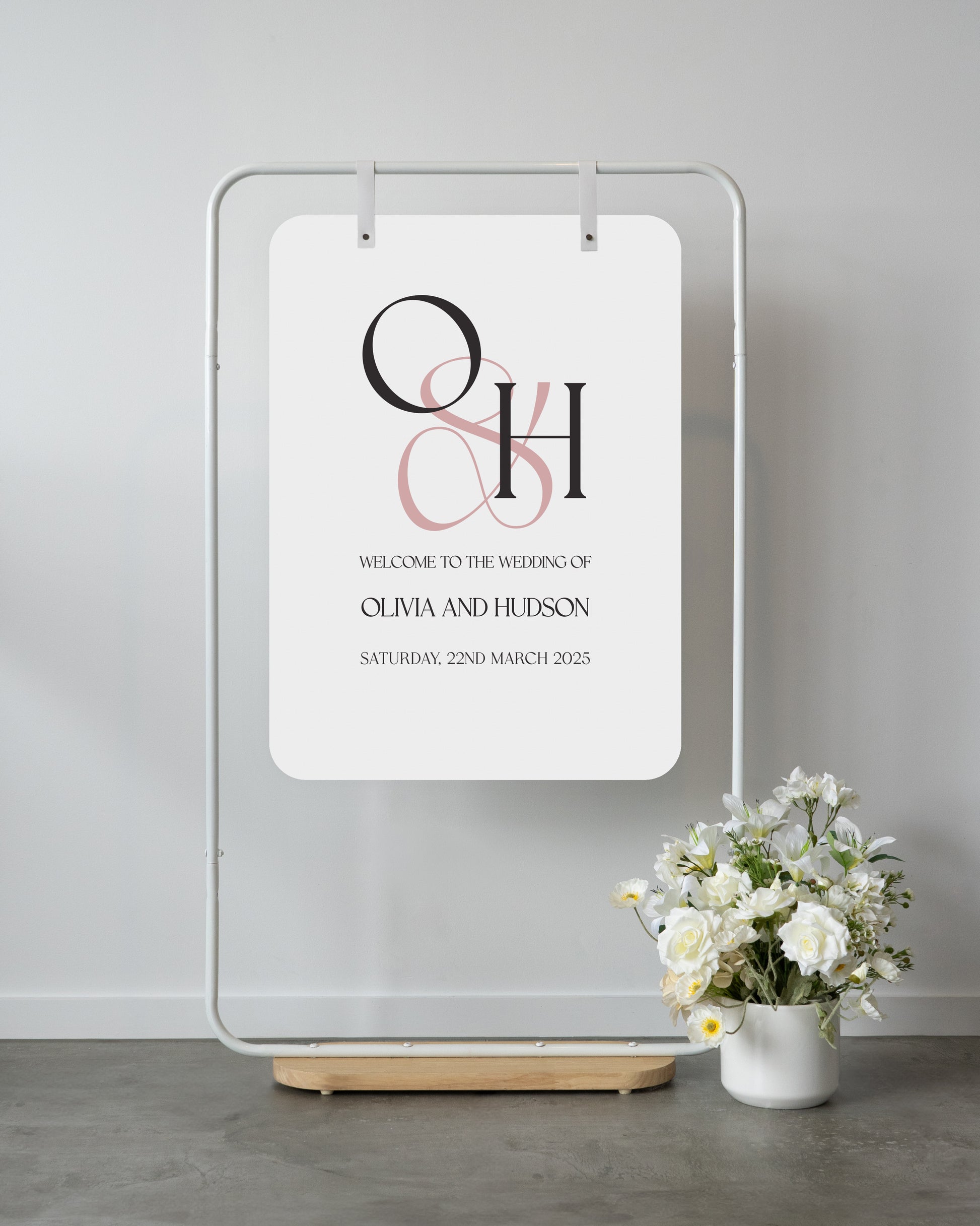 Part of the Greece Collection, this wedding welcome sign is modern yet will stand the test of time with flowing text elements and a feature & symbol.