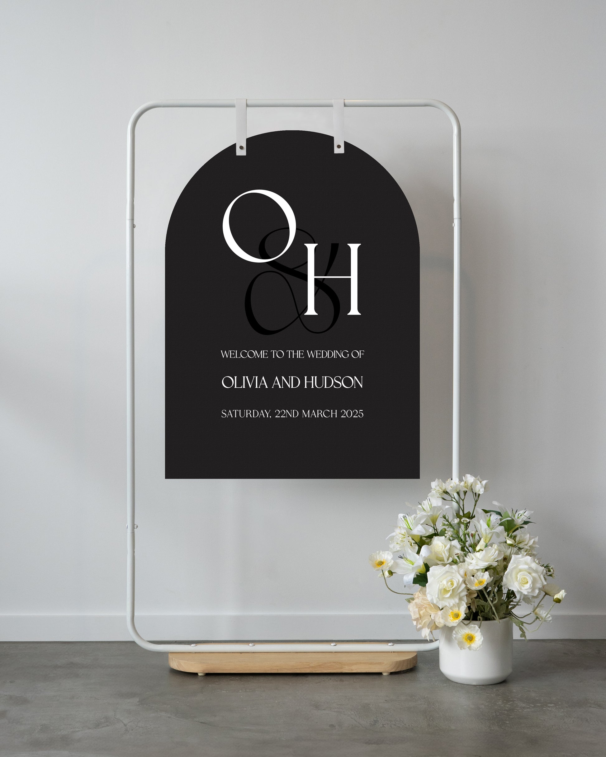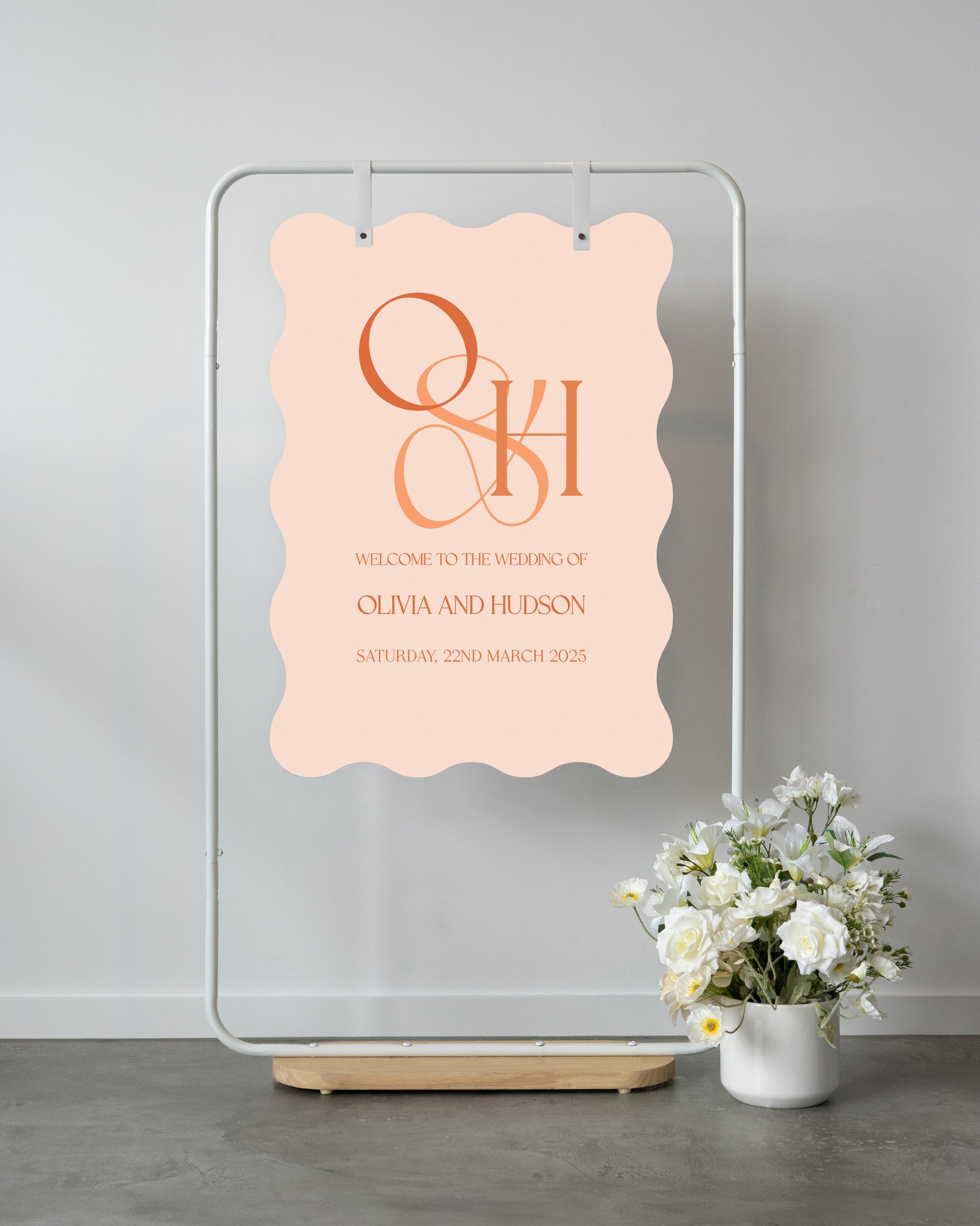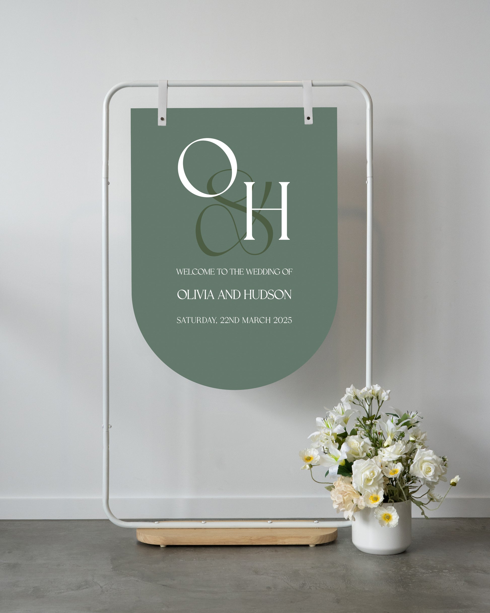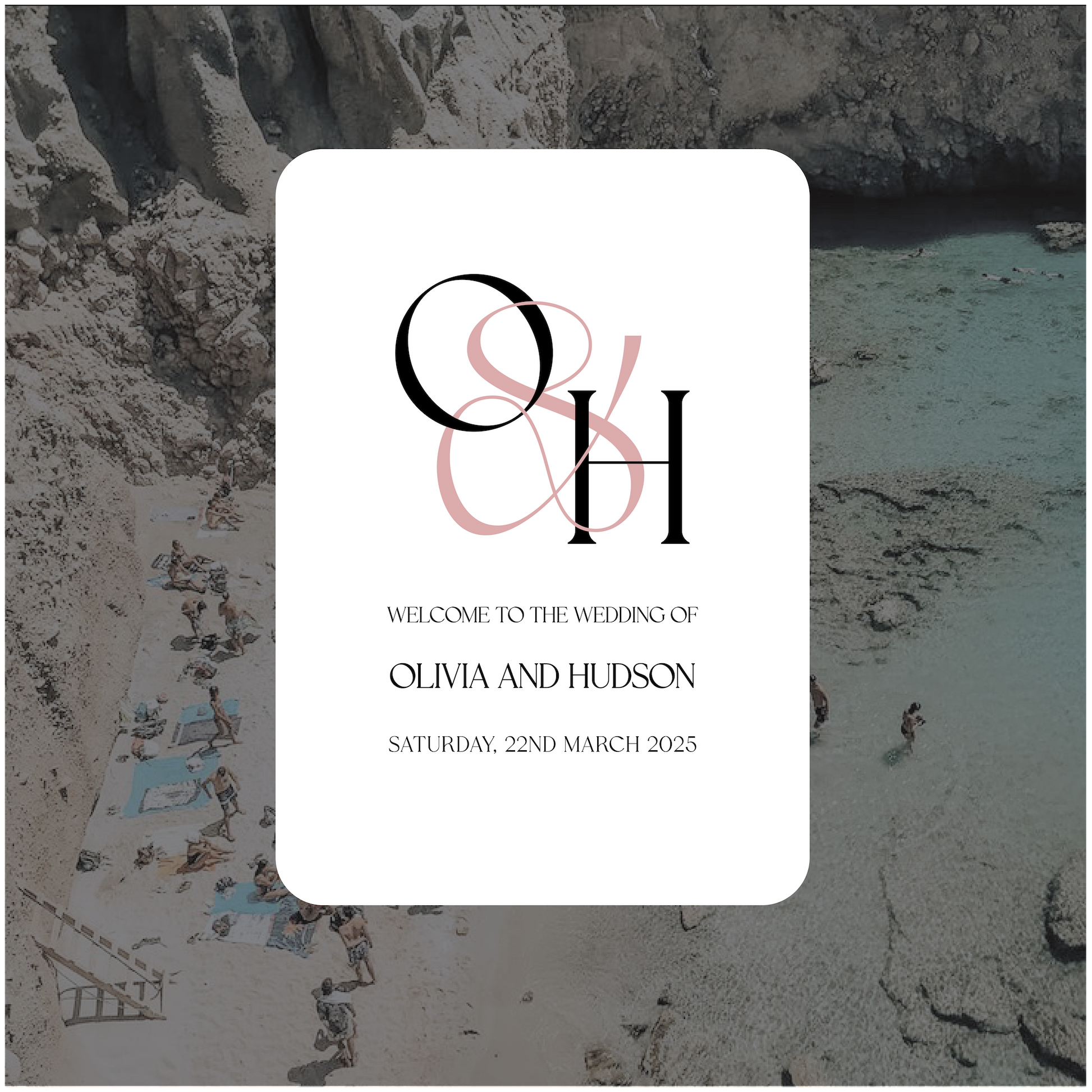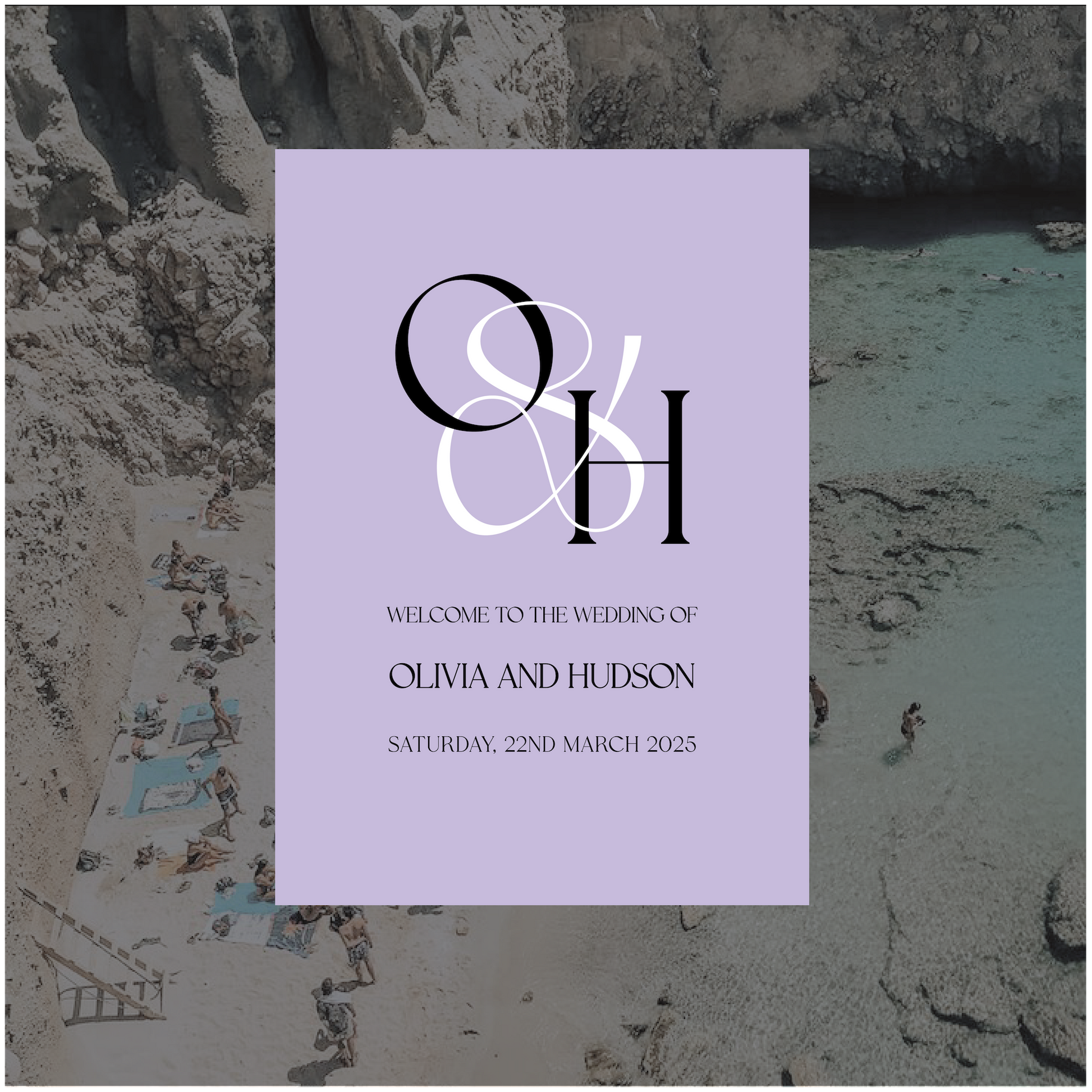 Part of the Greece Collection, this wedding welcome sign is modern yet will stand the test of time with flowing text elements and a feature & symbol.