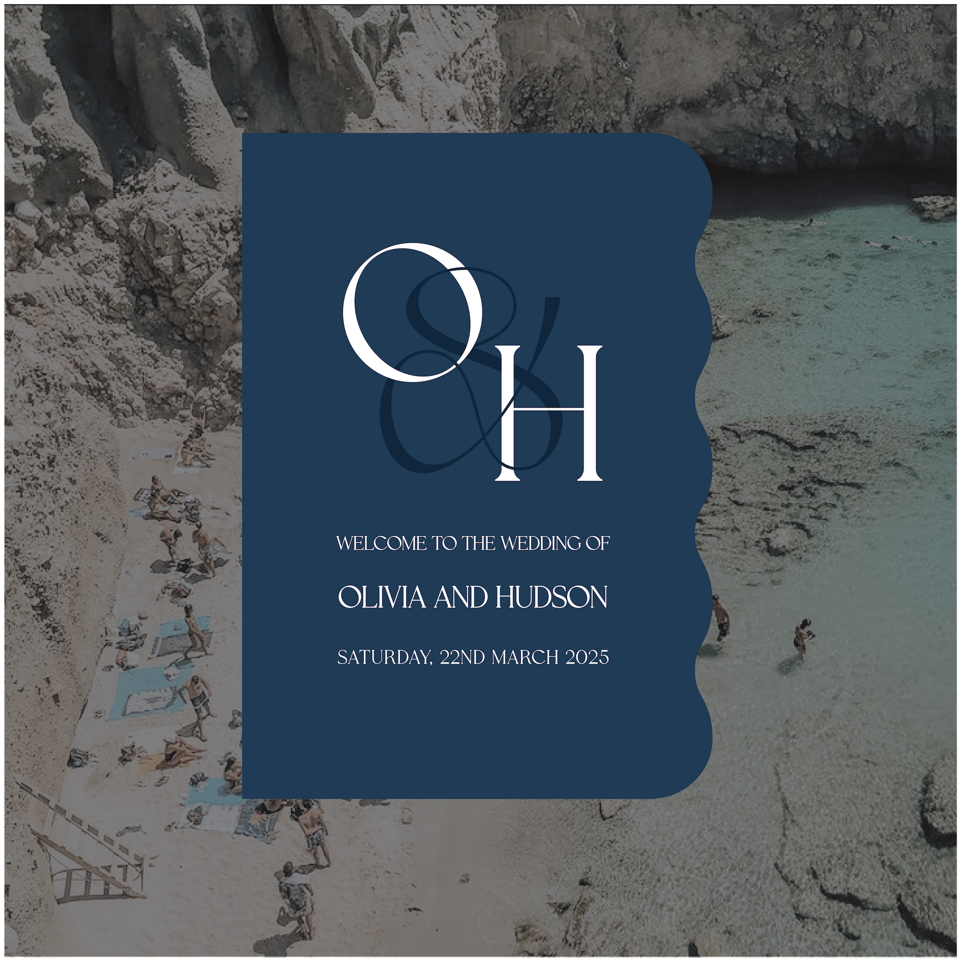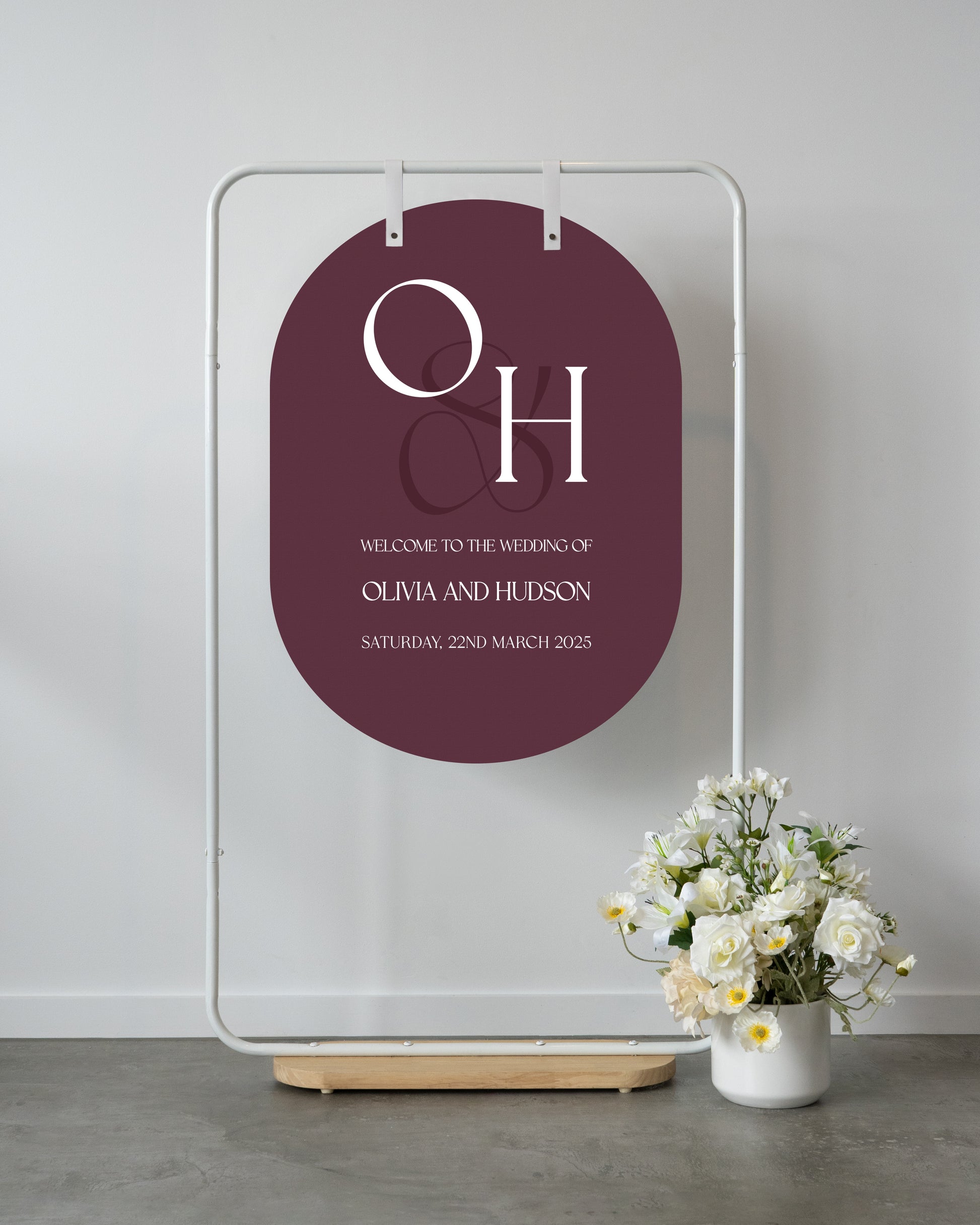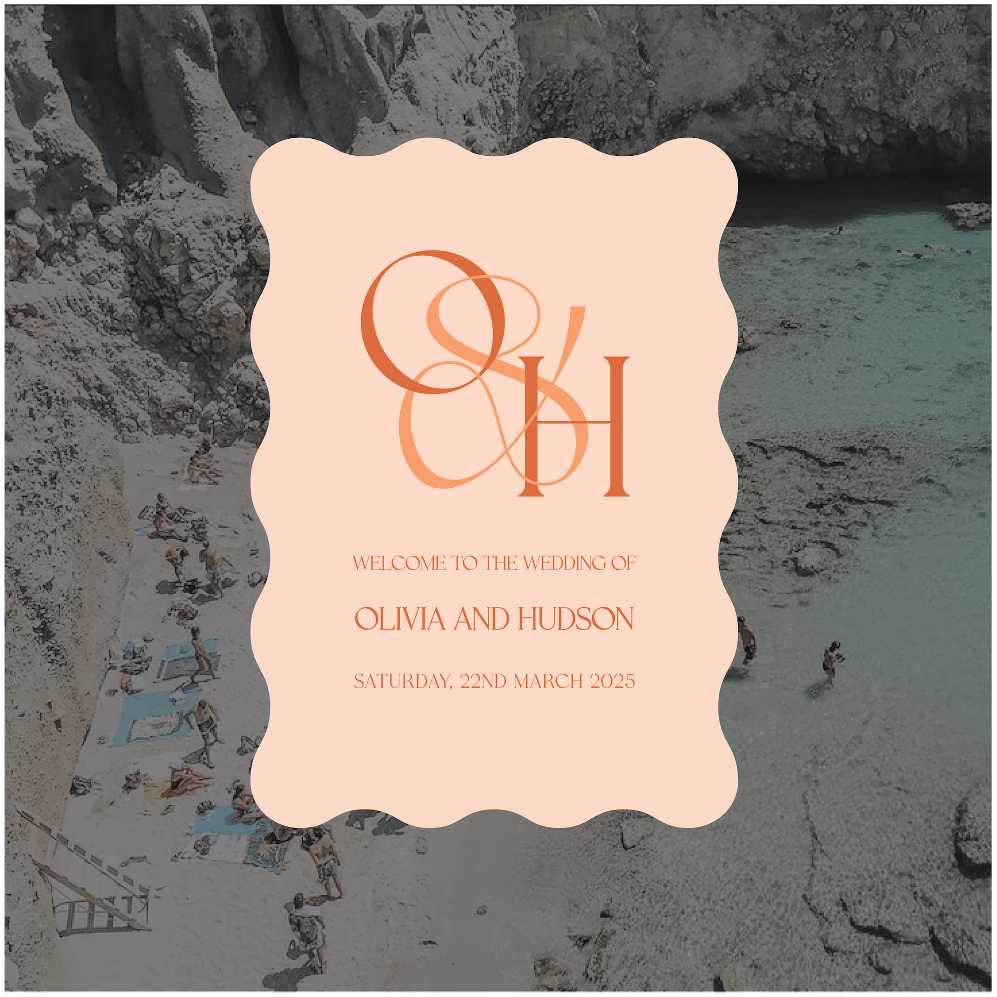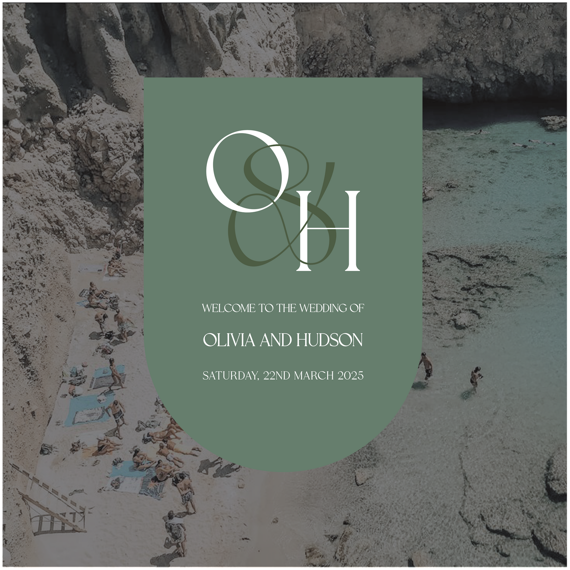 Part of the Greece Collection, this wedding welcome sign is modern yet will stand the test of time with flowing text elements and a feature & symbol.