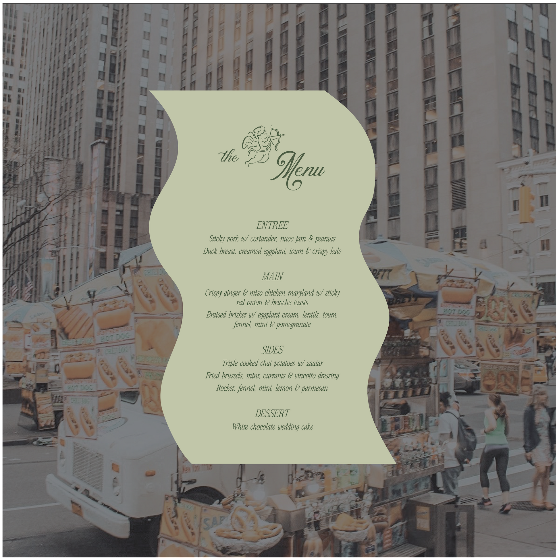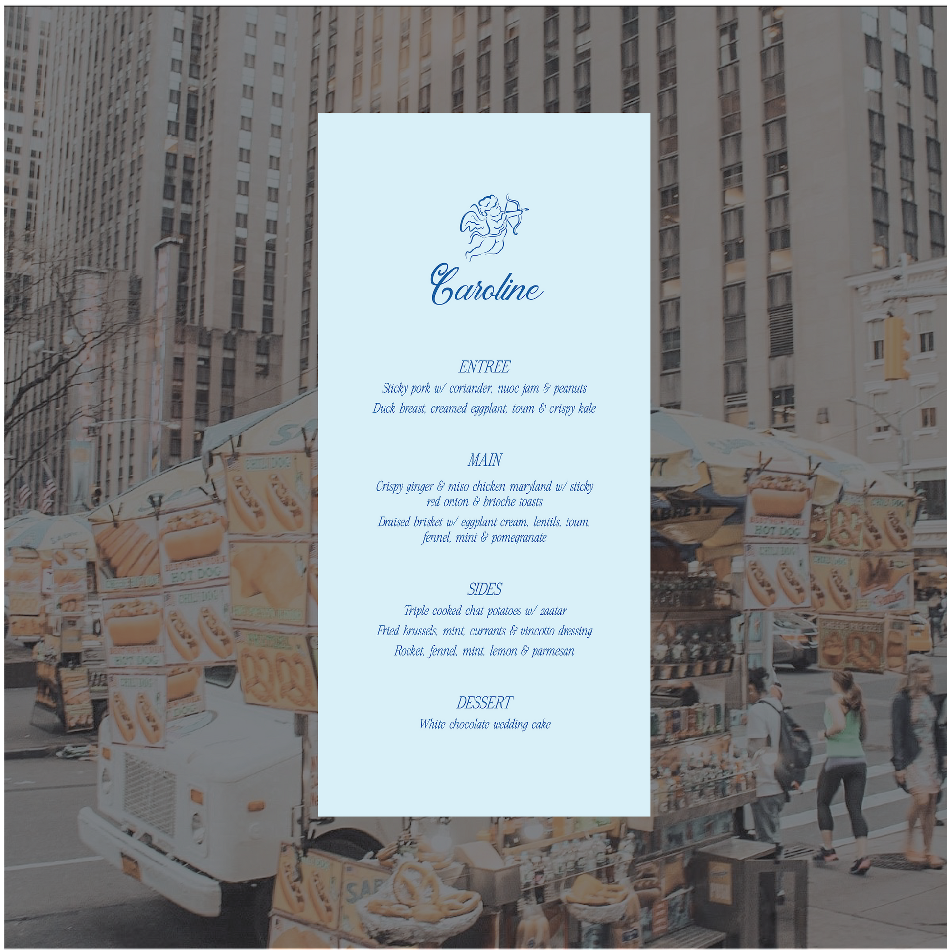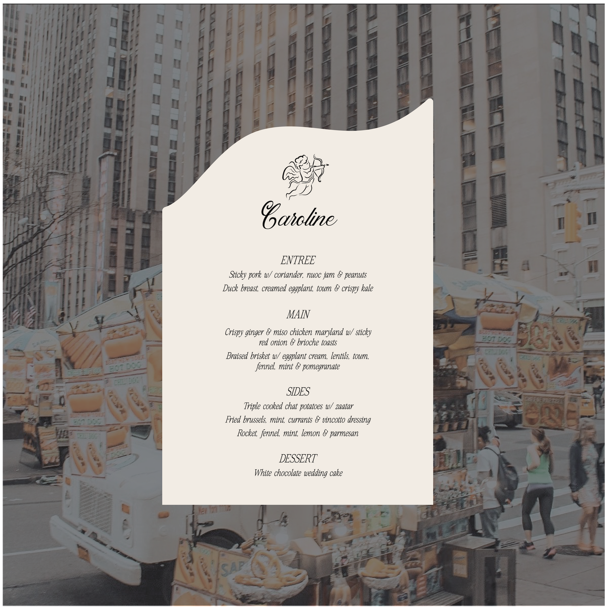 • We always recommend ordering extra menus for those 'maybe' guests, keepsakes and photography details on the day.
