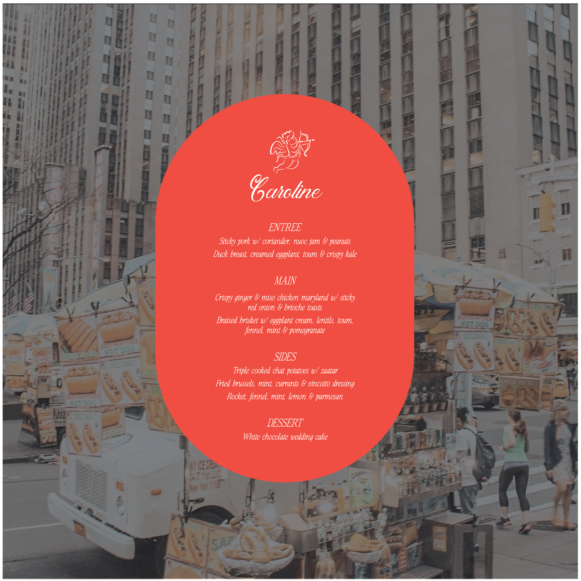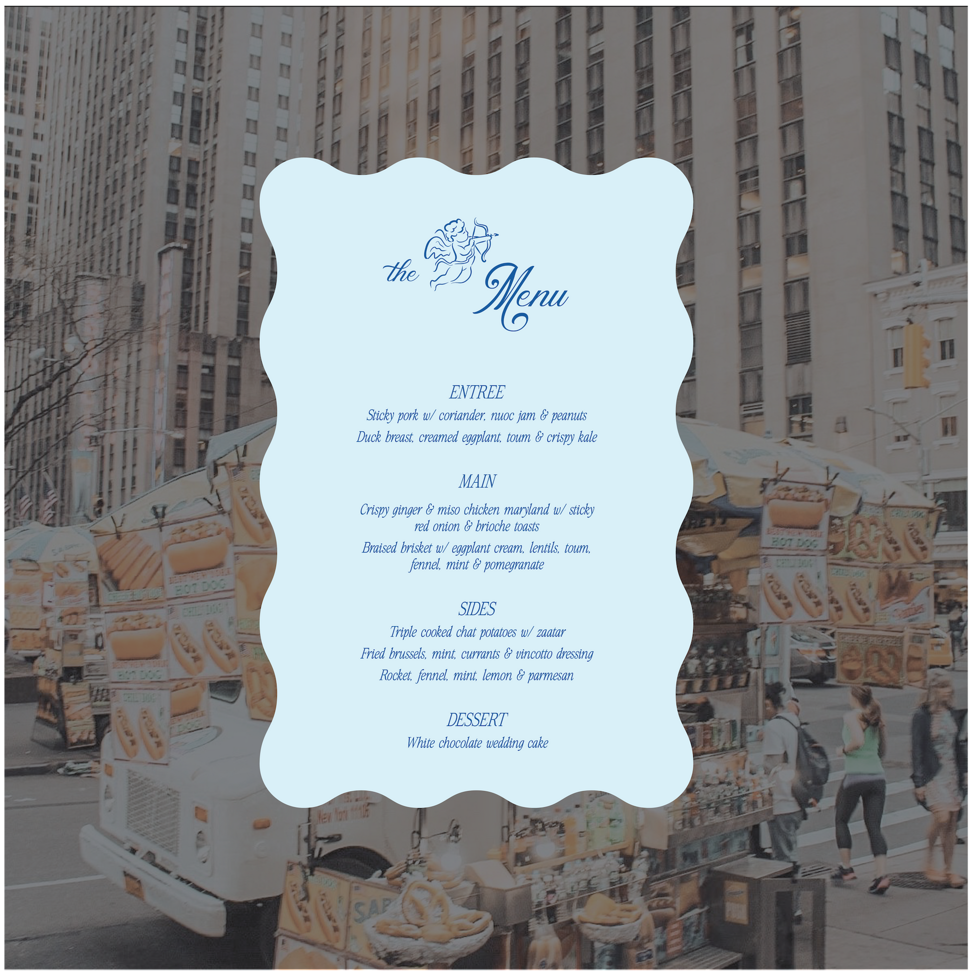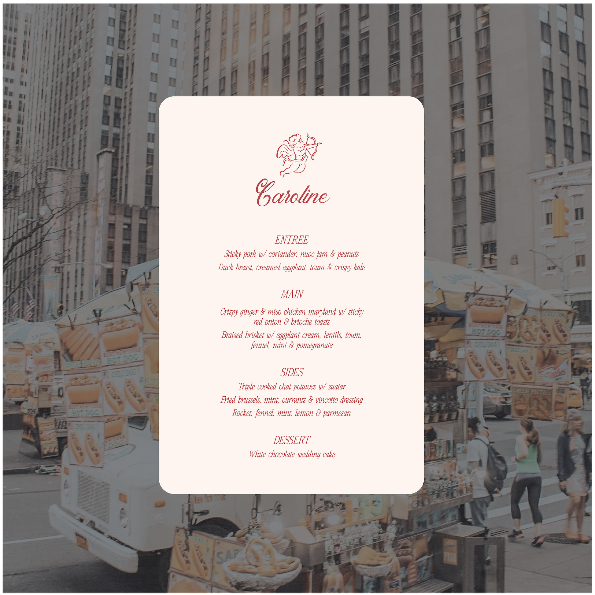 • We always recommend ordering extra menus for those 'maybe' guests, keepsakes and photography details on the day.