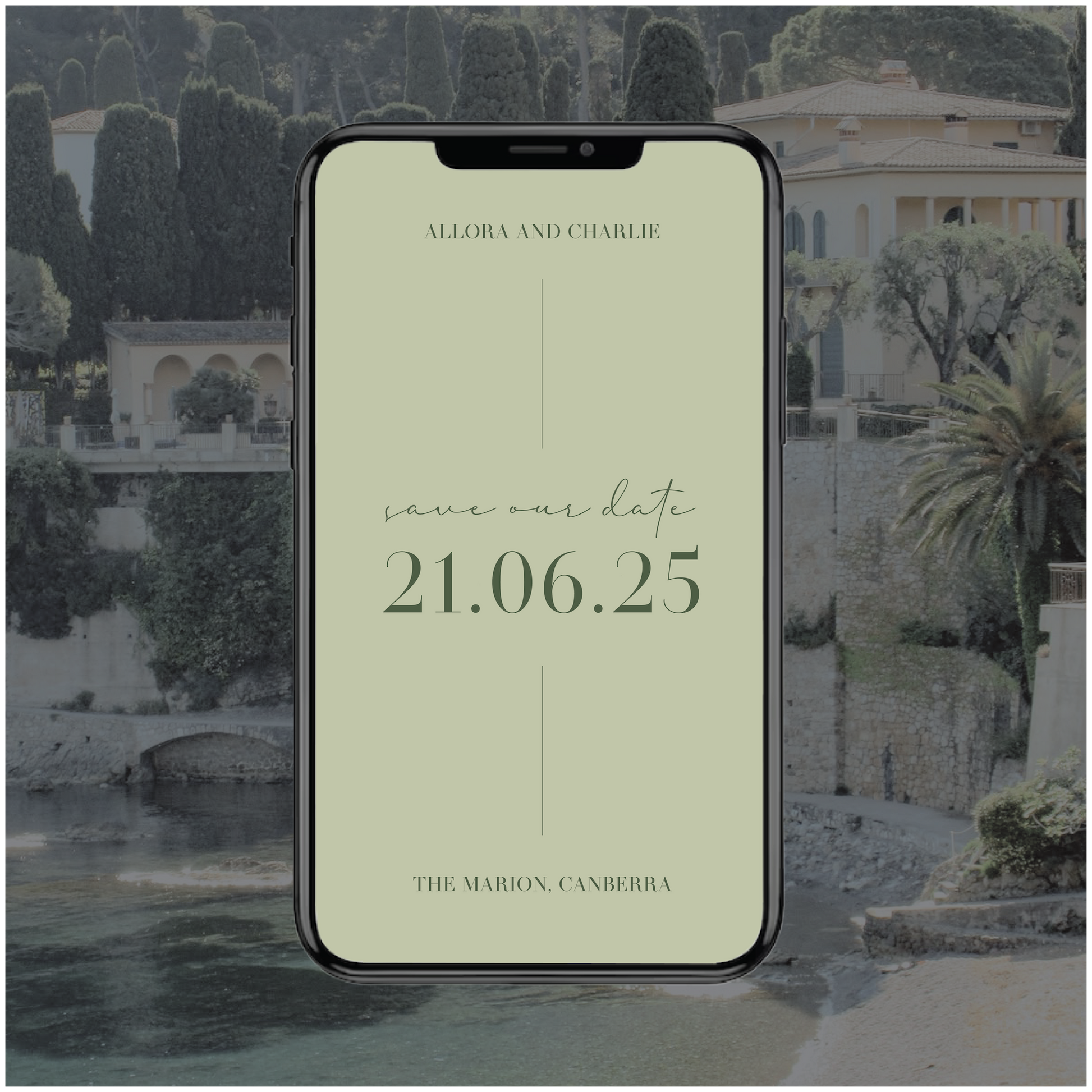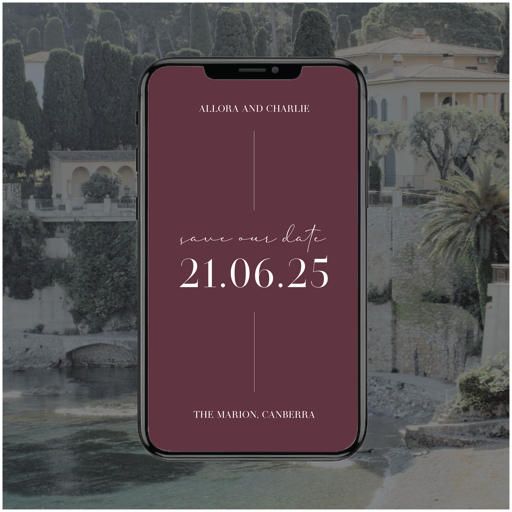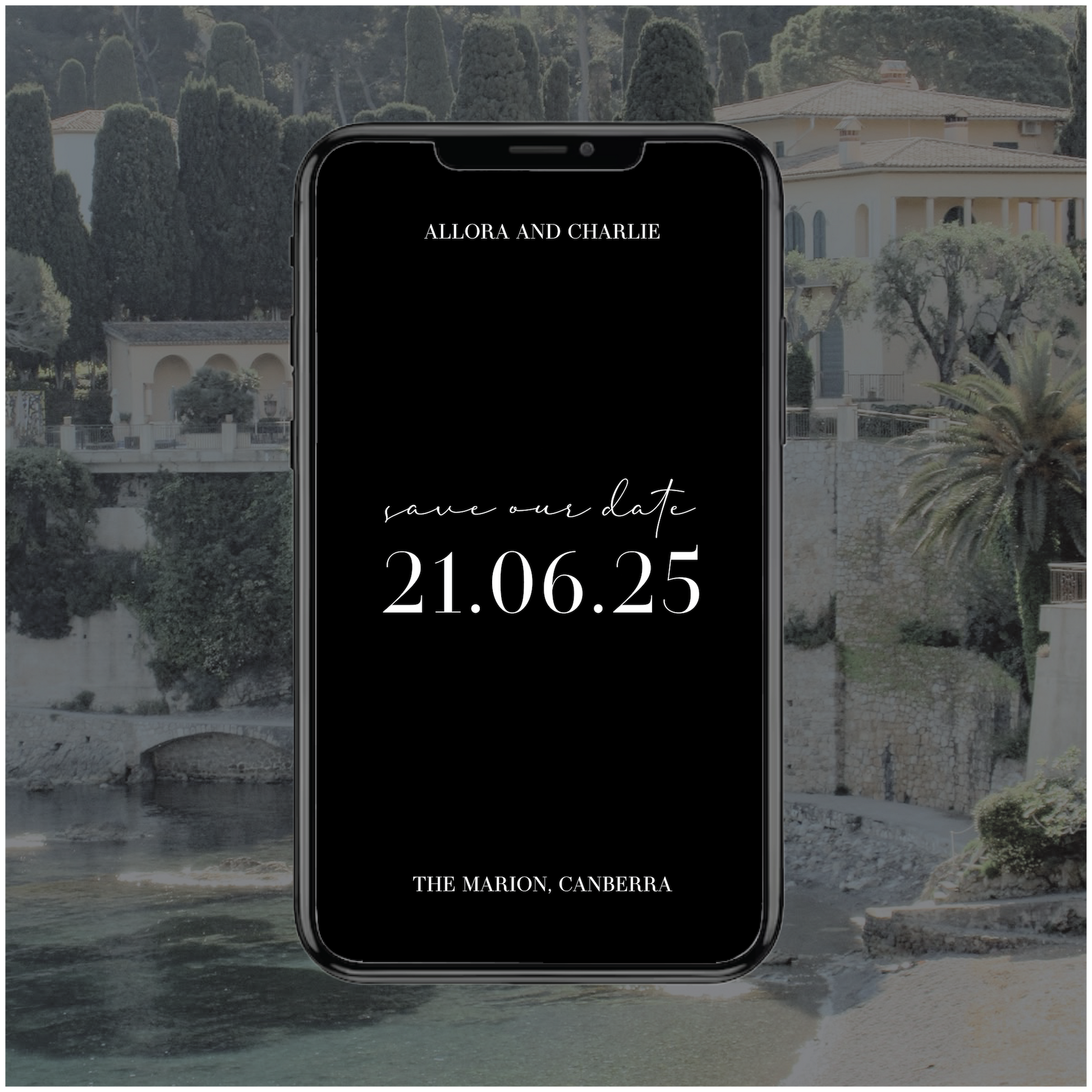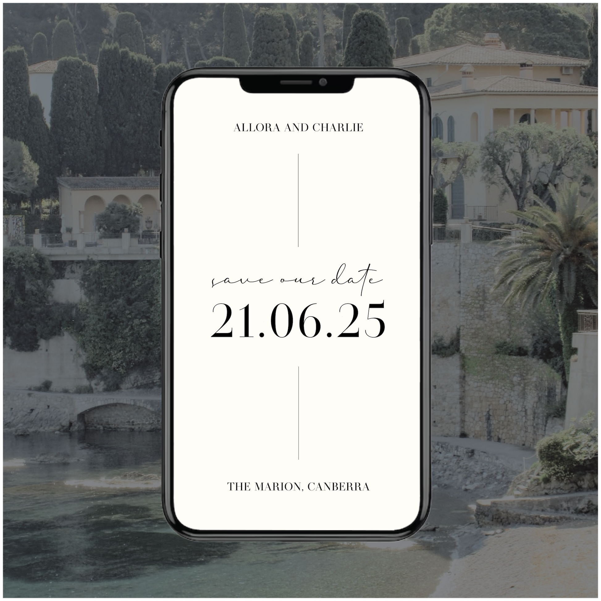Part of the France Collection, this digital save the date wedding invite is classic with a little bit of chic editorial edge.