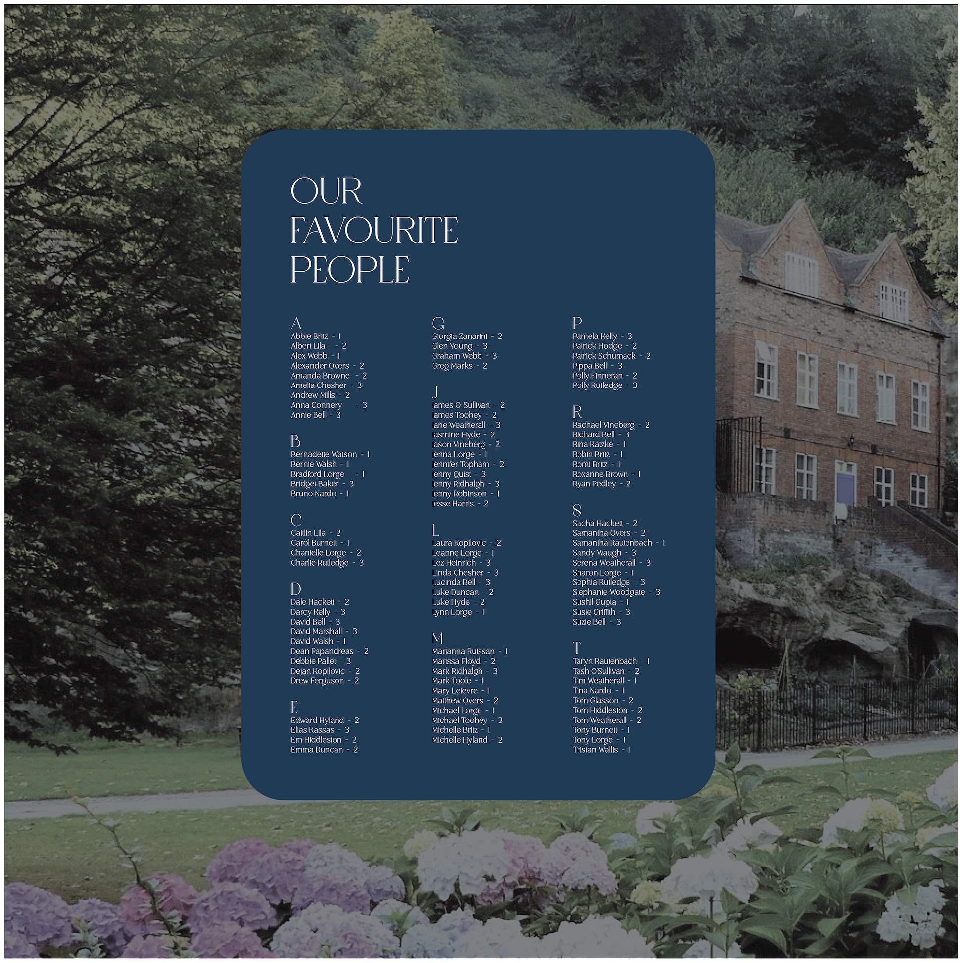 Part of the United Kingdom Collection, this wedding seating chart is a timeless classic with a subtle modern twist.