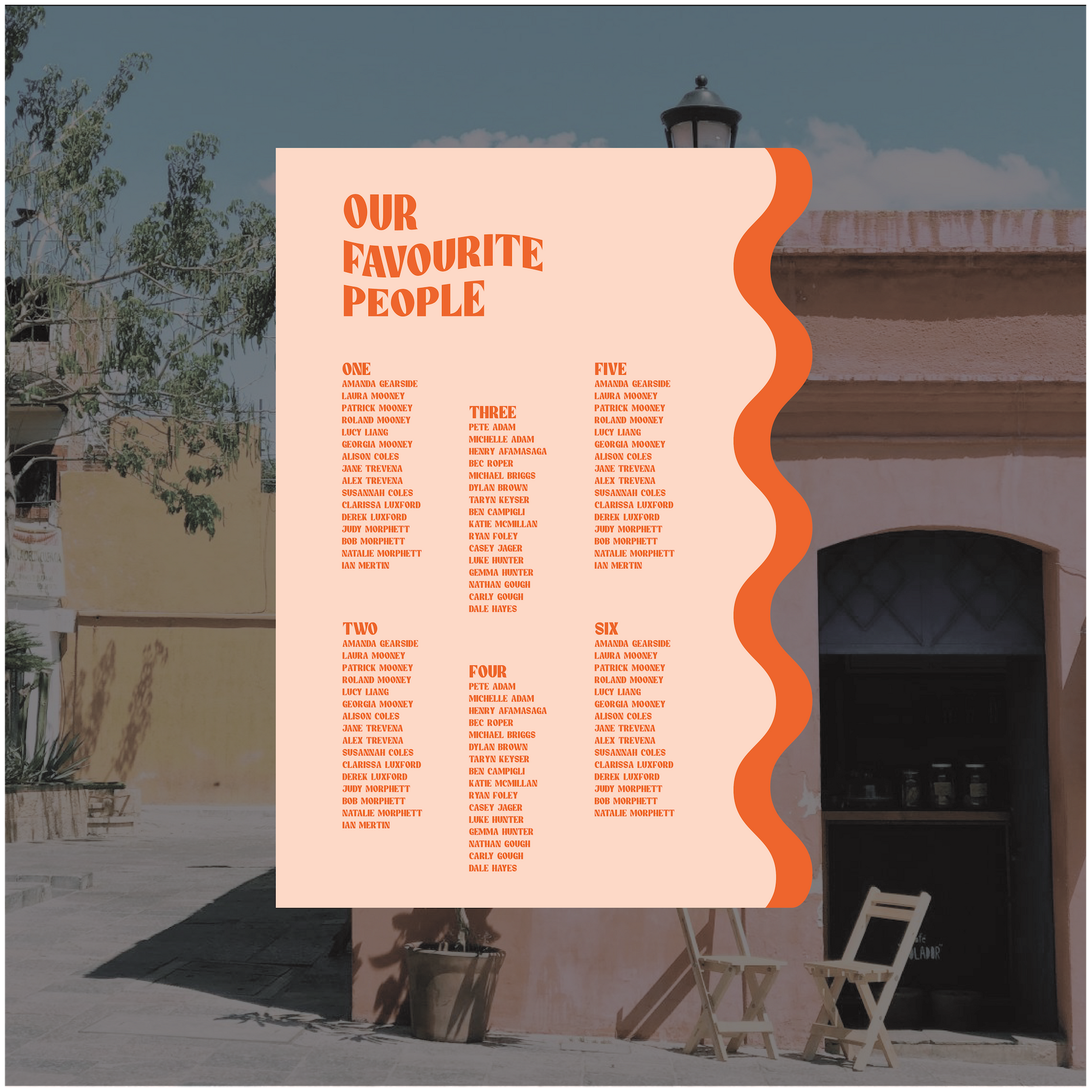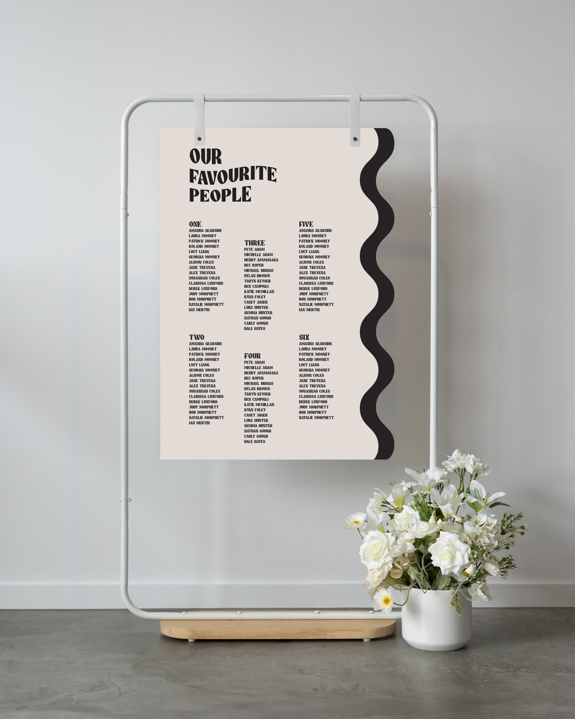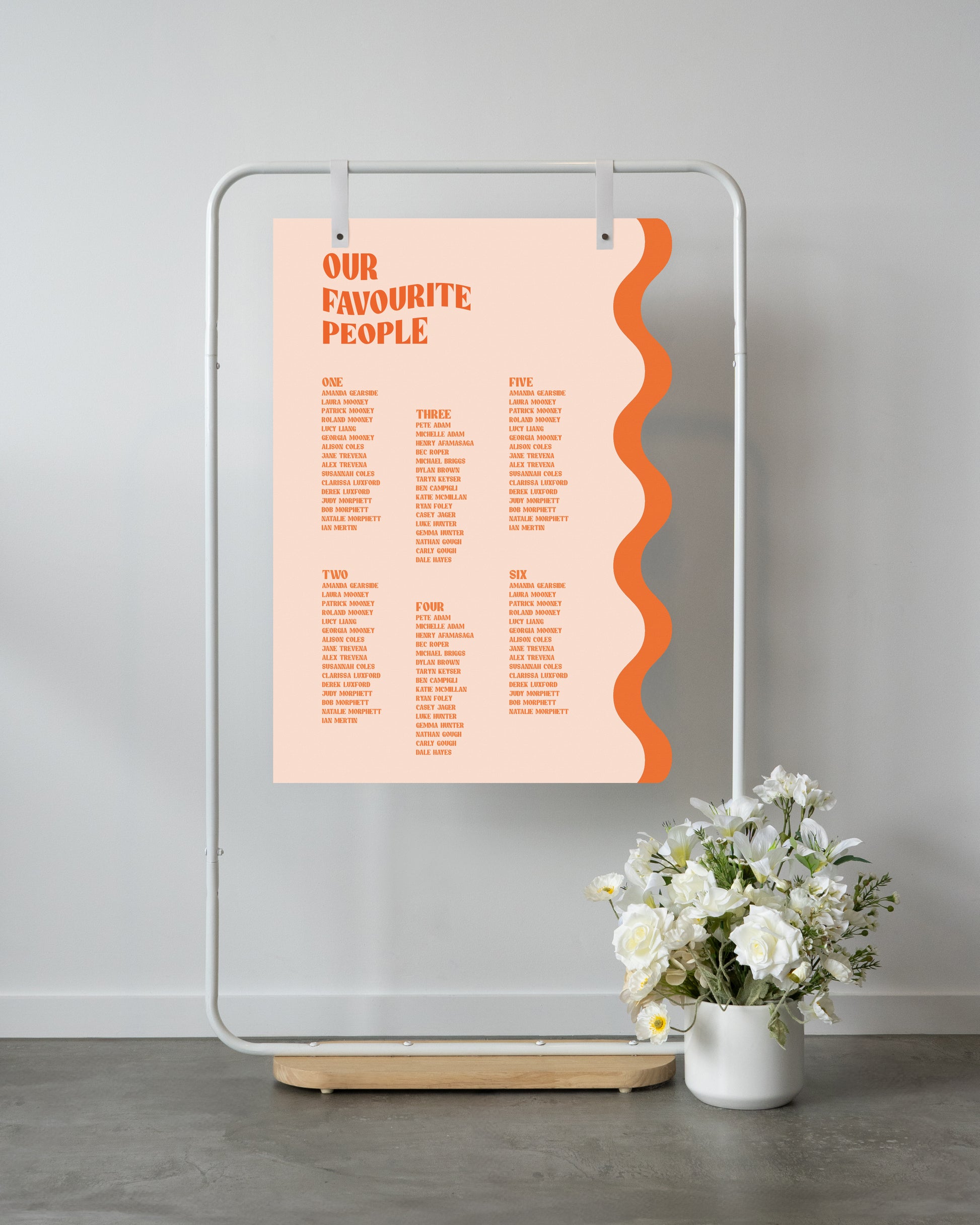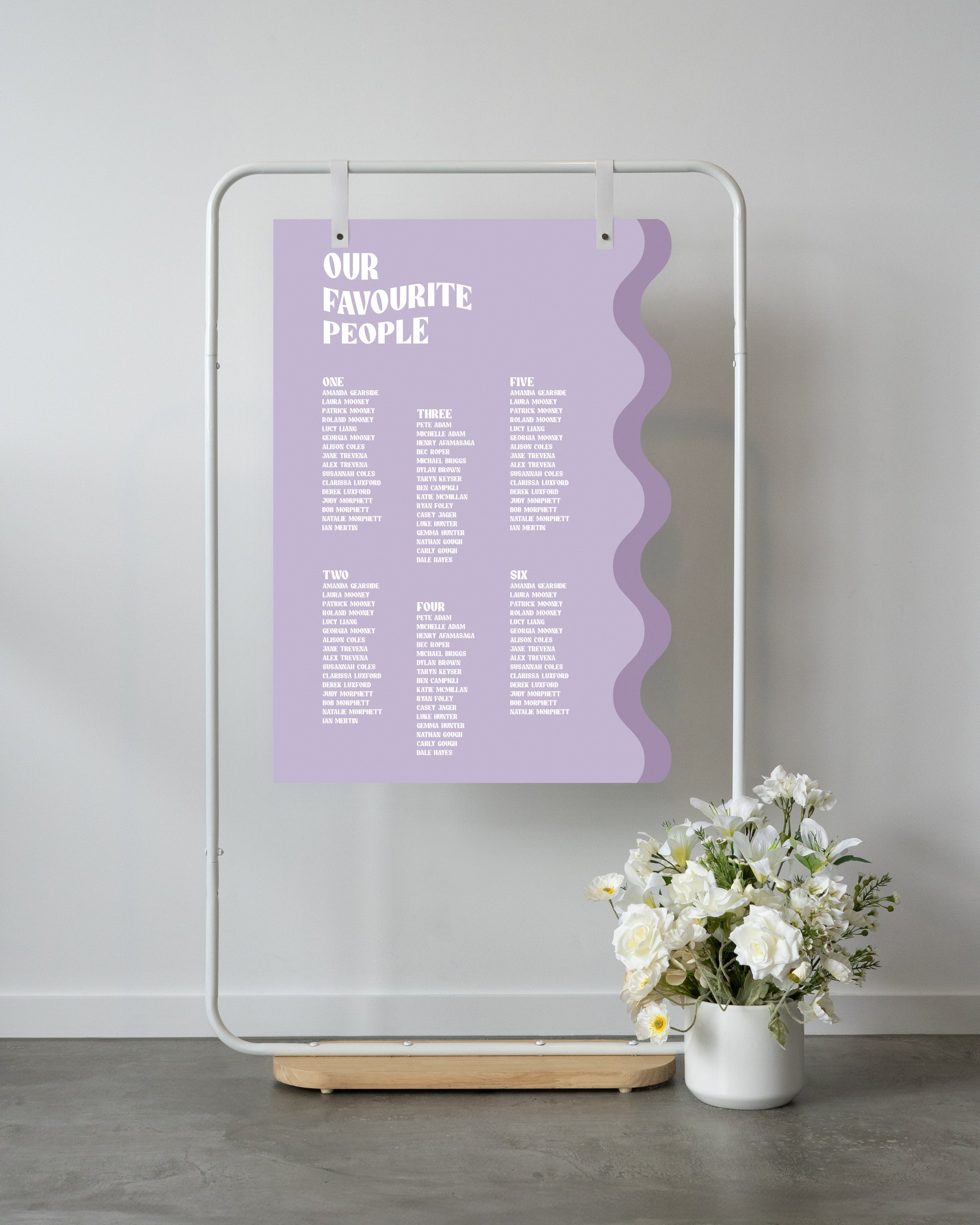 For all seating charts we require you to use our excel template for your guests names and table allocation. This can either be emailed to us after placing the order or within the timeframes provided.