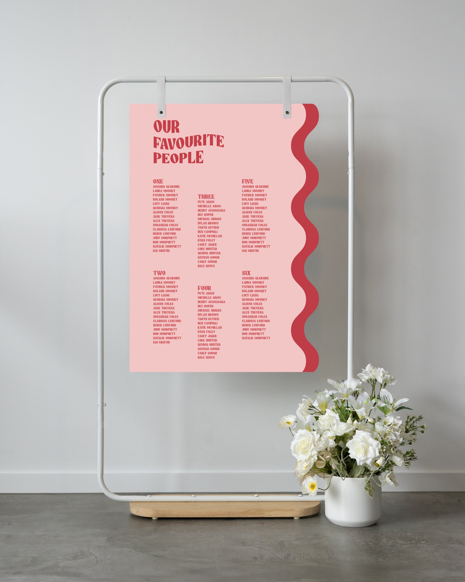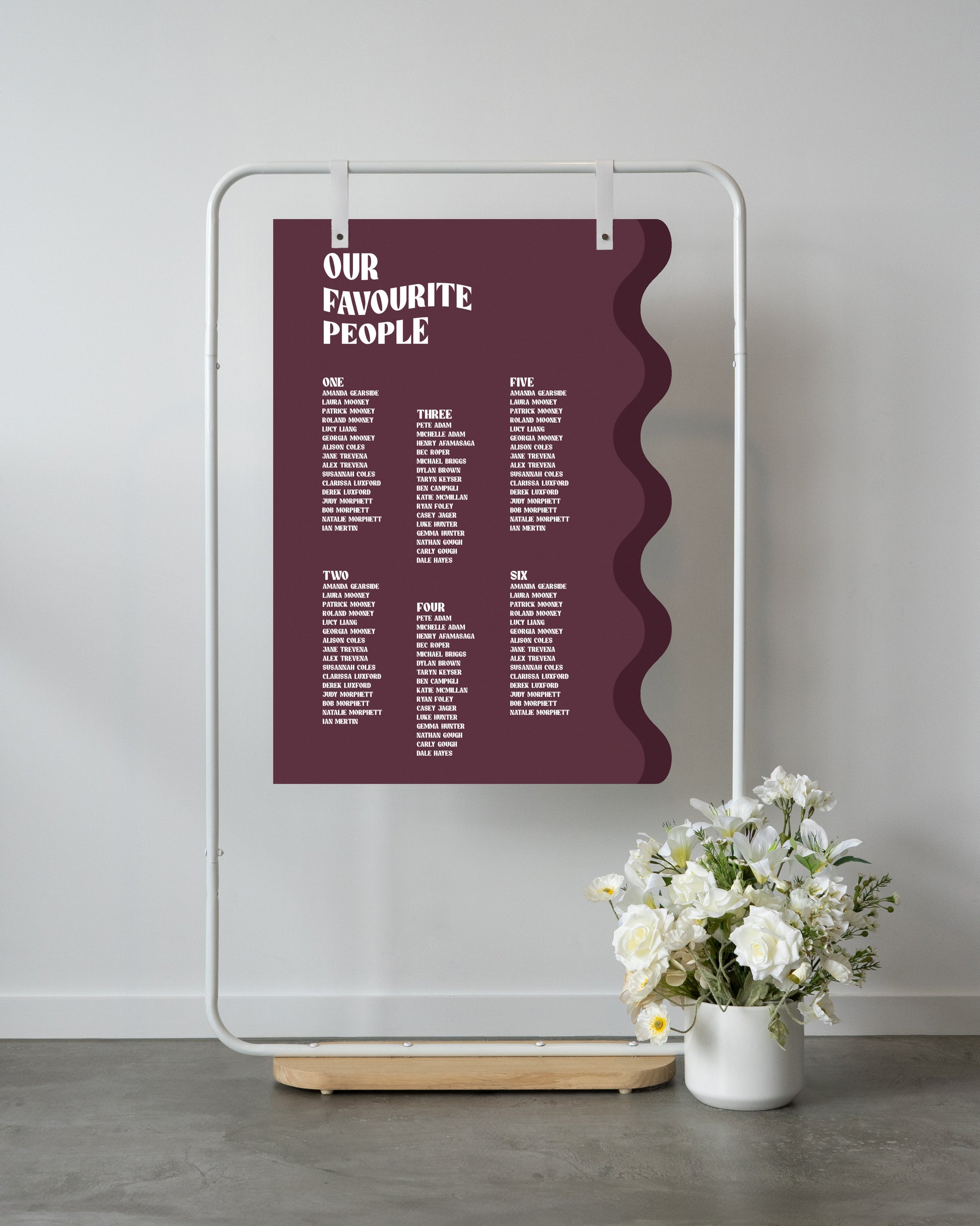 If you have over this number of guests and order a sign too small, a design fee may occur to re-work the design to fit the names otherwise an upgrade fee to a larger size to accomodate the guest list may occur.