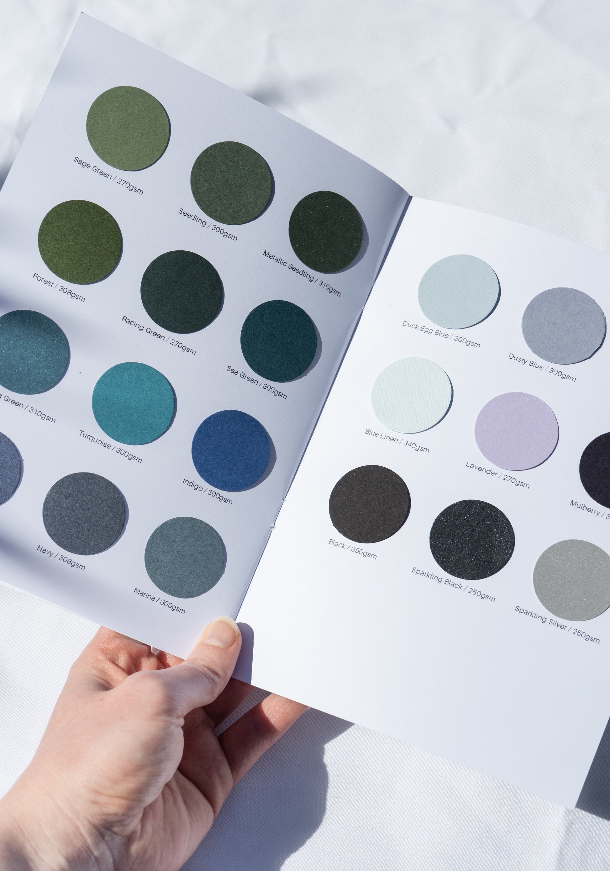 • This is a large curated selection of card colours, if you can’t find a colour you like, please contact us and we can see what we can source.