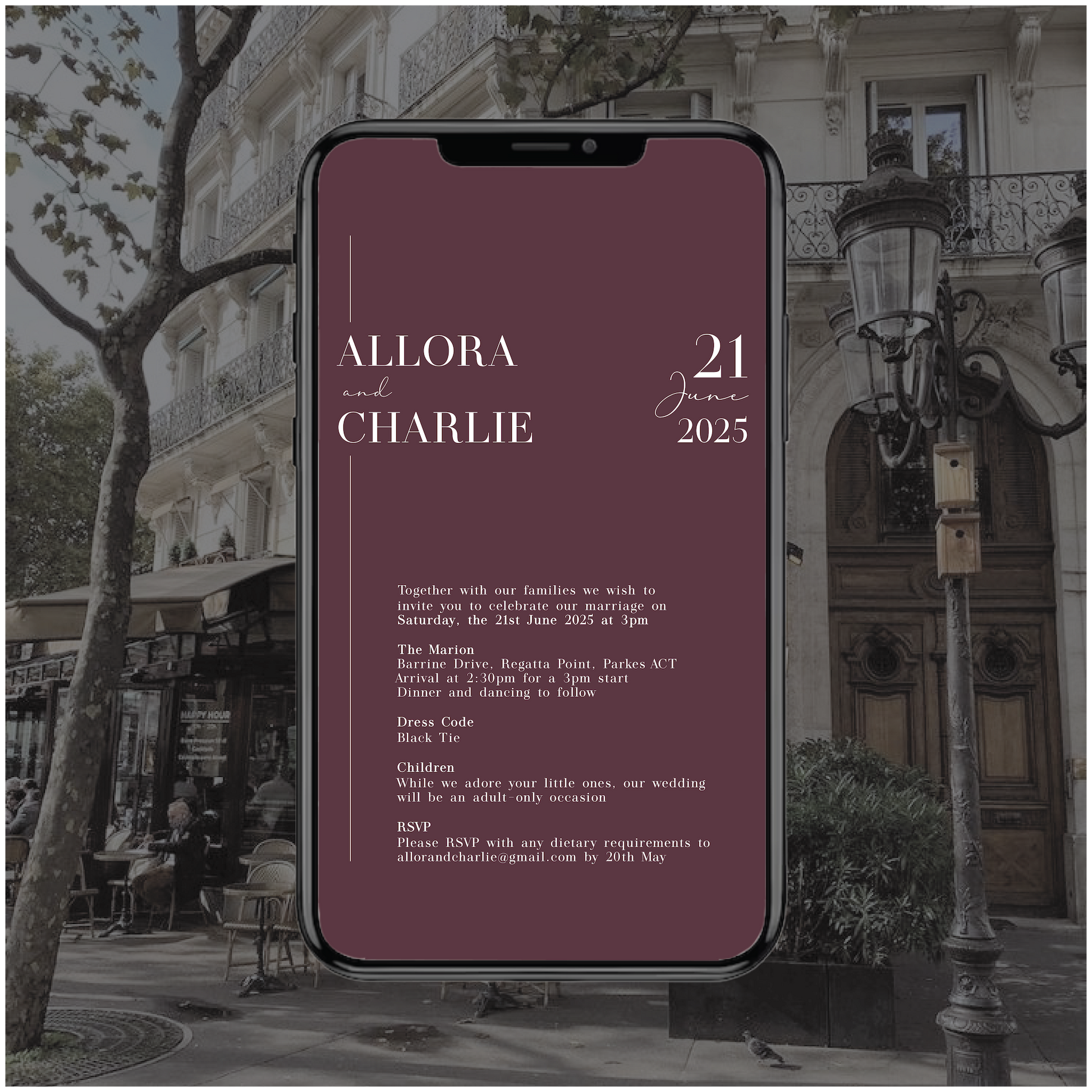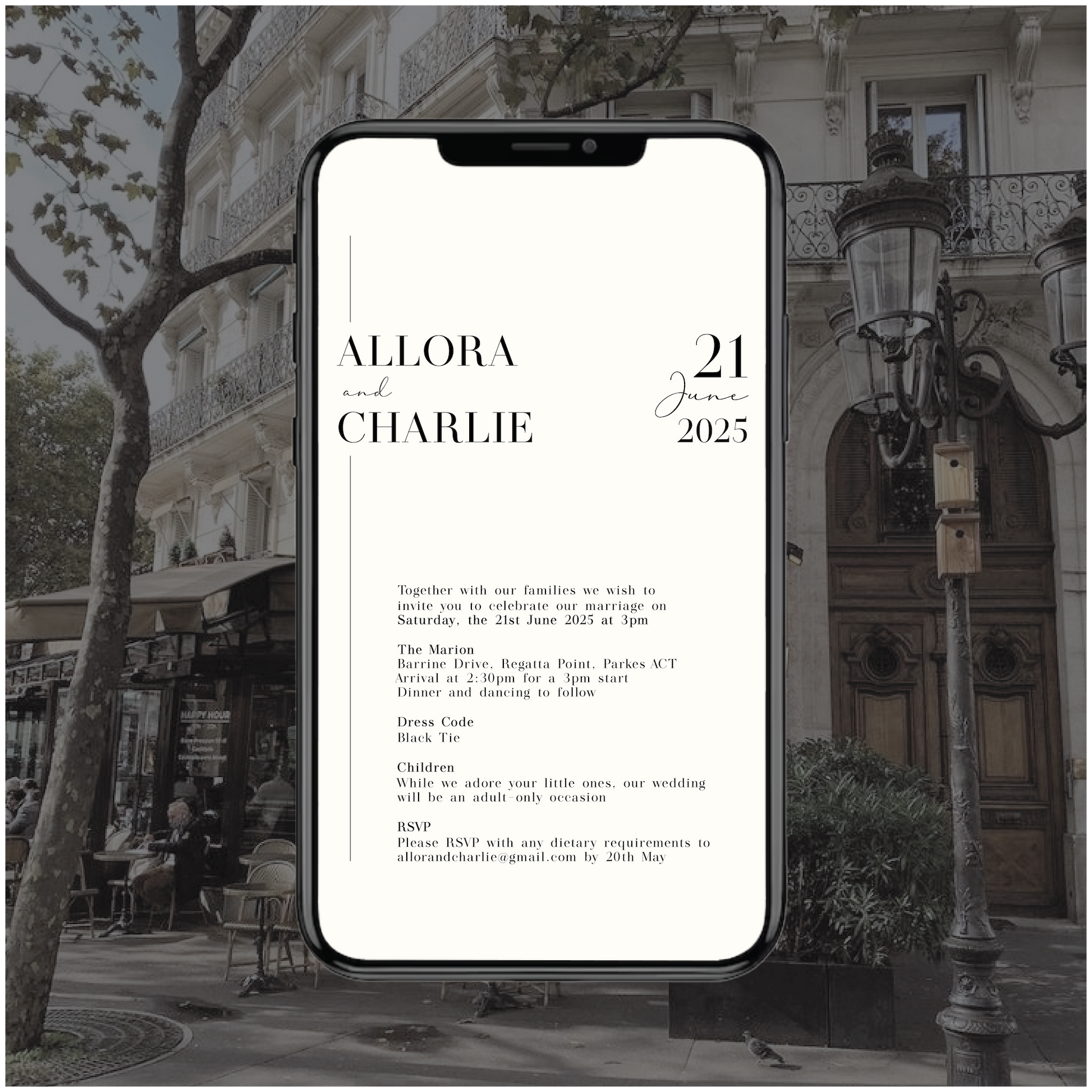 Part of the France Collection, this digital wedding invite is classic with a little bit of chic editorial edge.